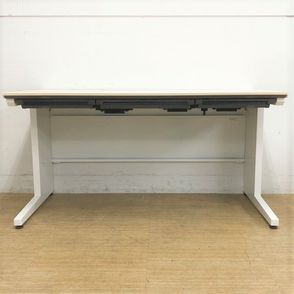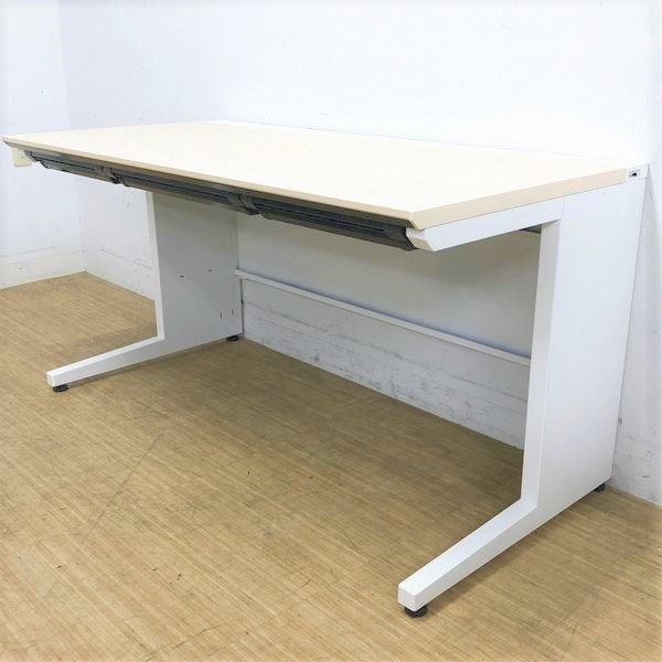 【在庫入替セール】【上長デスクの定番W1400平机!配線カバーも充実の高品質デスク!】■コクヨ(KOKUYO)製 iSシリーズ 引き出し付き(右側の引き出し無し) 平机 ■ホワイト×ナチュラル天板【T9】