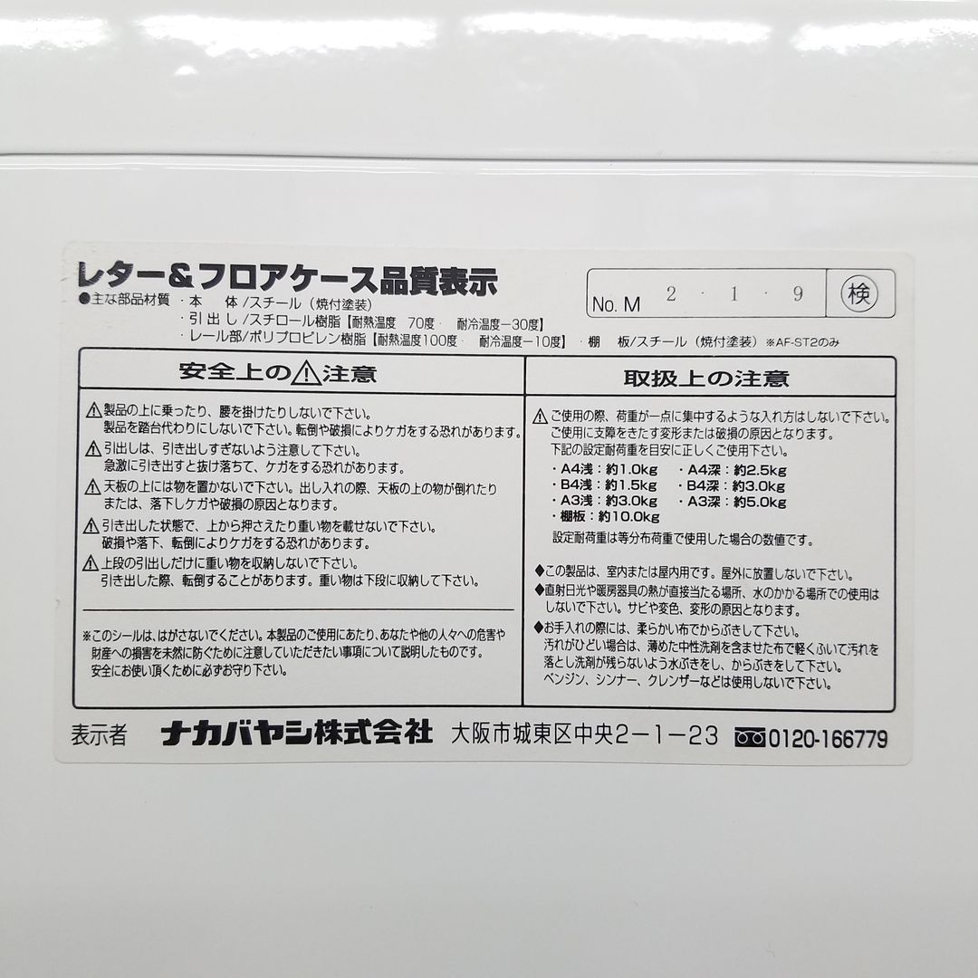 - 一部不具合ありそ引出の開閉不可、施錠不可、棚板無しといったの書庫の本来の効用を果たすための機能以外の一部が使用不可(例、扉、引出の開閉がしづらいなどがある。 )