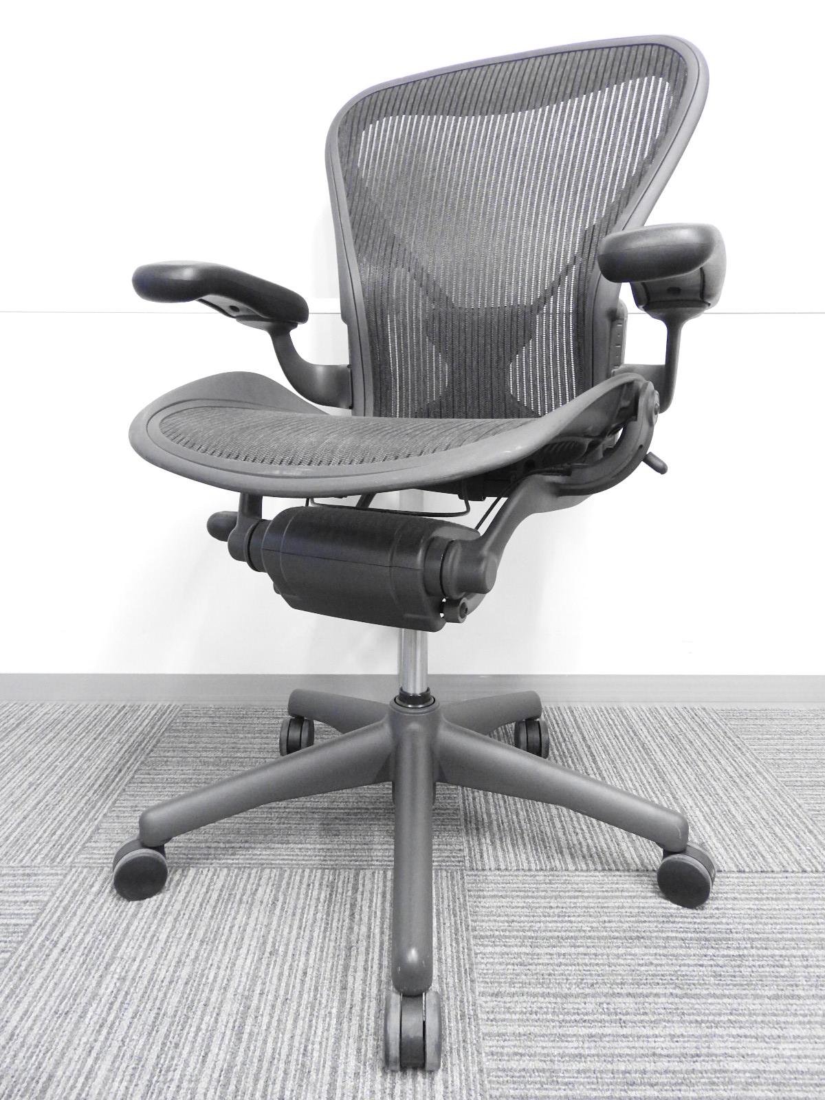 【★状態イマイチのためお安く!】■ハーマンミラー製 アーロンチェア Bサイズ 固定肘 ※キズあり・ランバーサポート無・昇降ガス圧弱めのためお安く!【訳あり特価品】