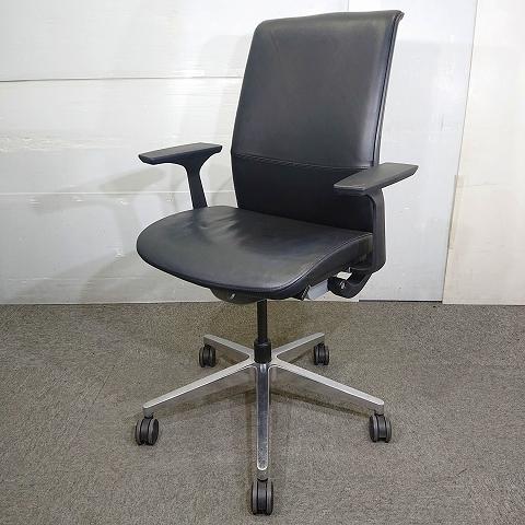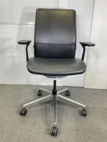 【1脚限定在庫入替セール!】重厚感漂う革張り仕様! 会議室にいかがでしょう スチールケース製 Think シンクチェア【固定肘】【中古】- 東大阪店