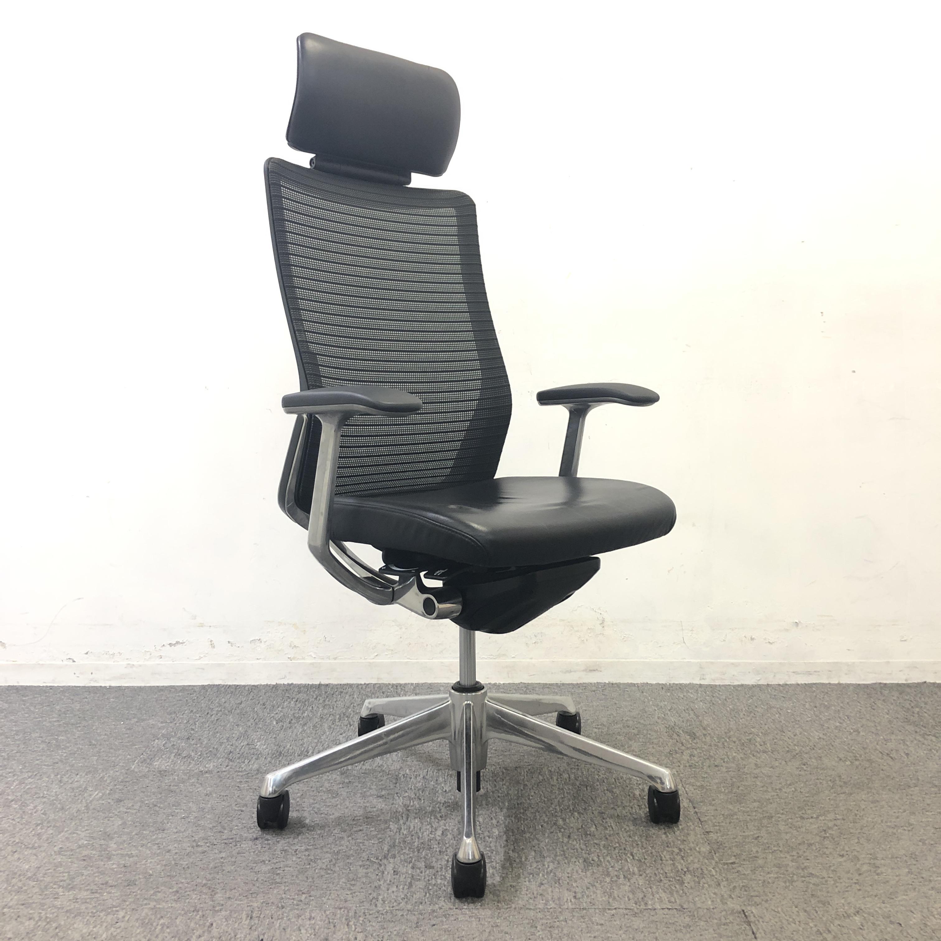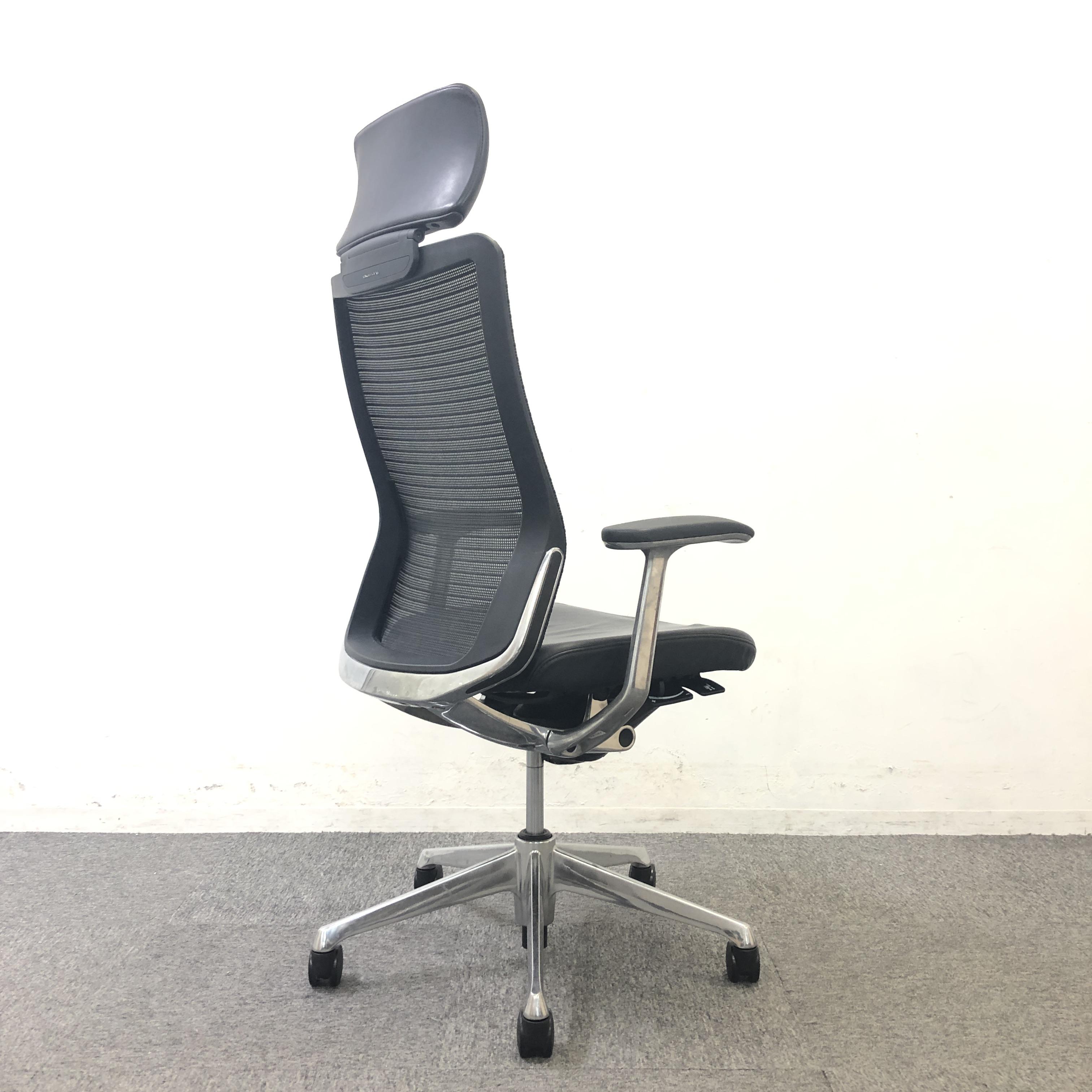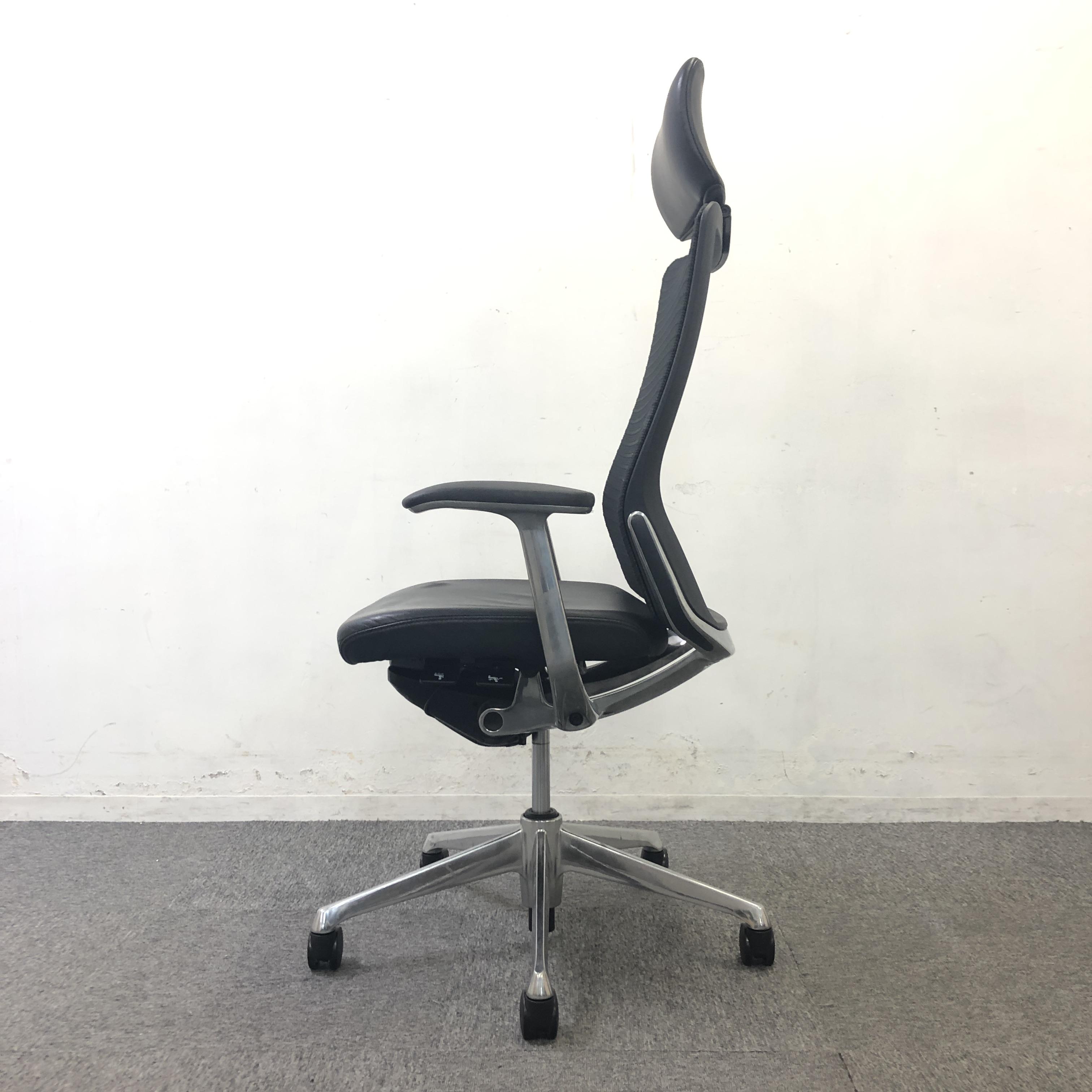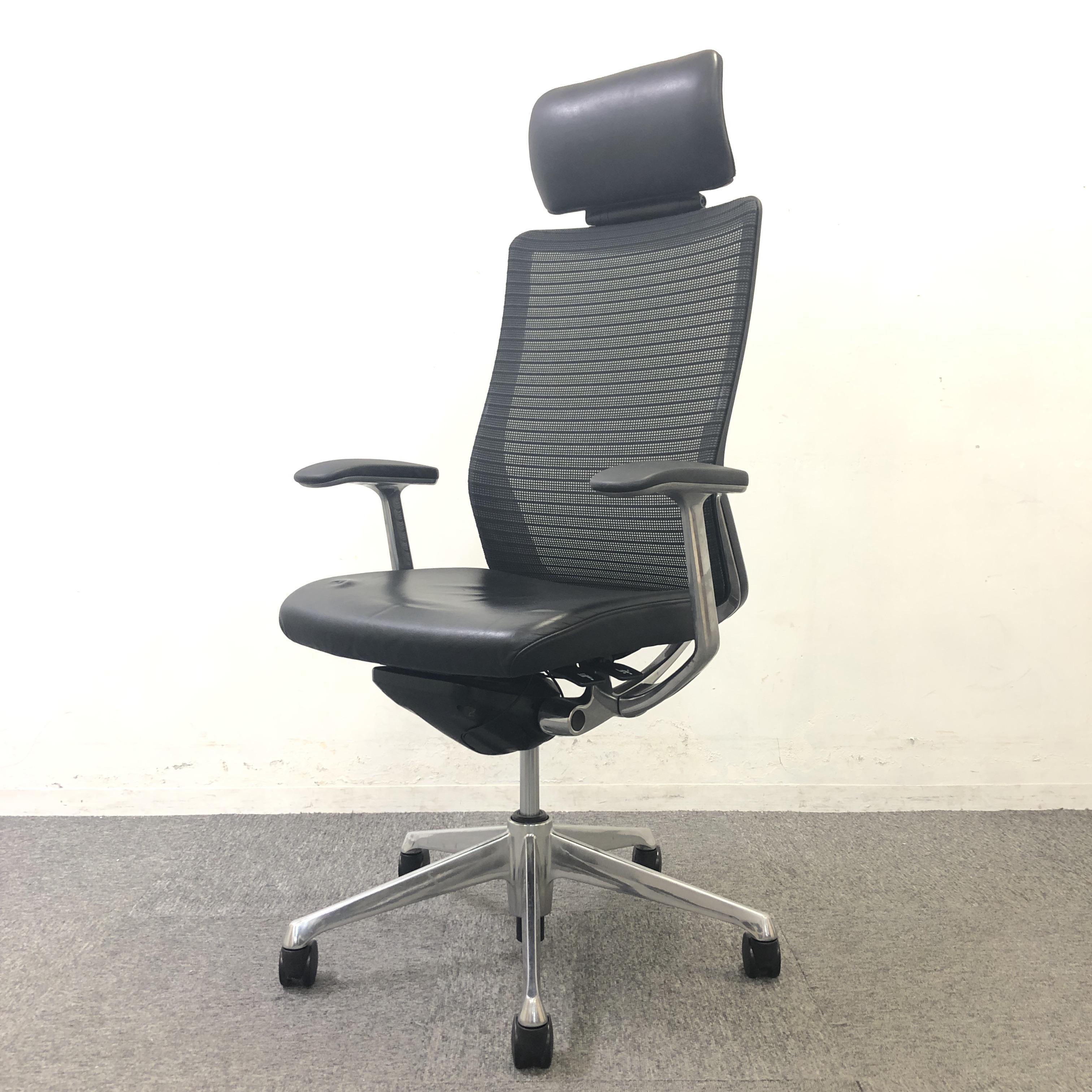 【革製のヘッドレスト付きが2脚入荷!】オカムラ コーラル ブラック エクストラハイバック デザインアーム ポリッシュフレーム 【定価30万超の高級チェア!】- 大阪・堺店
