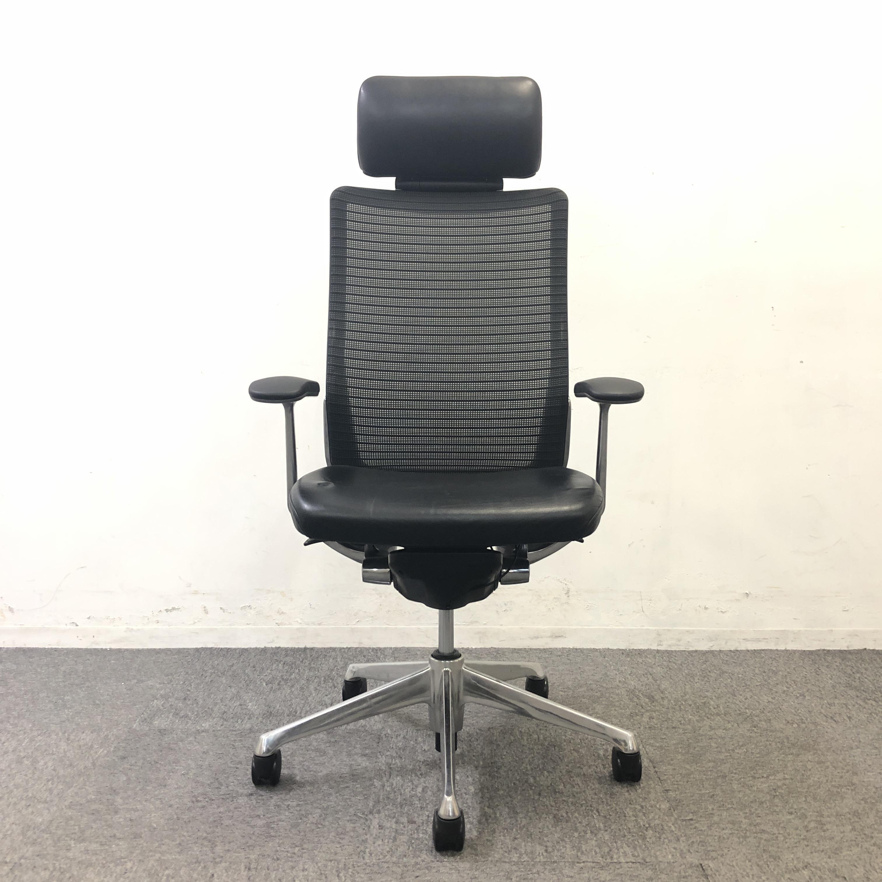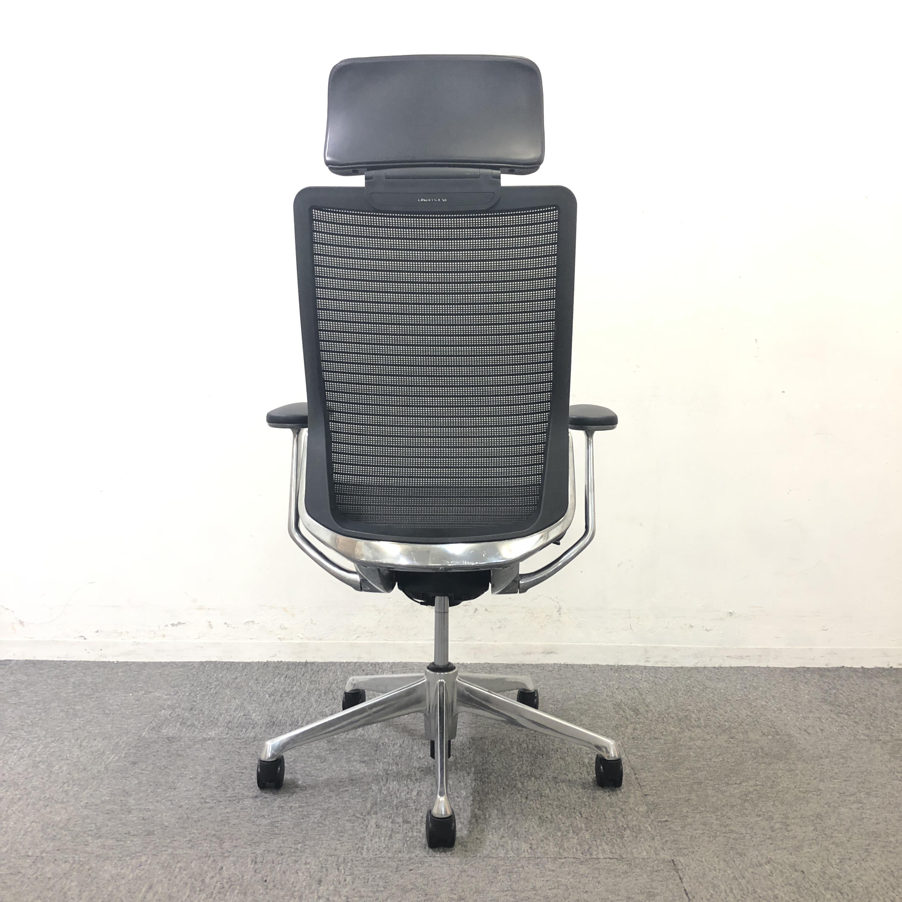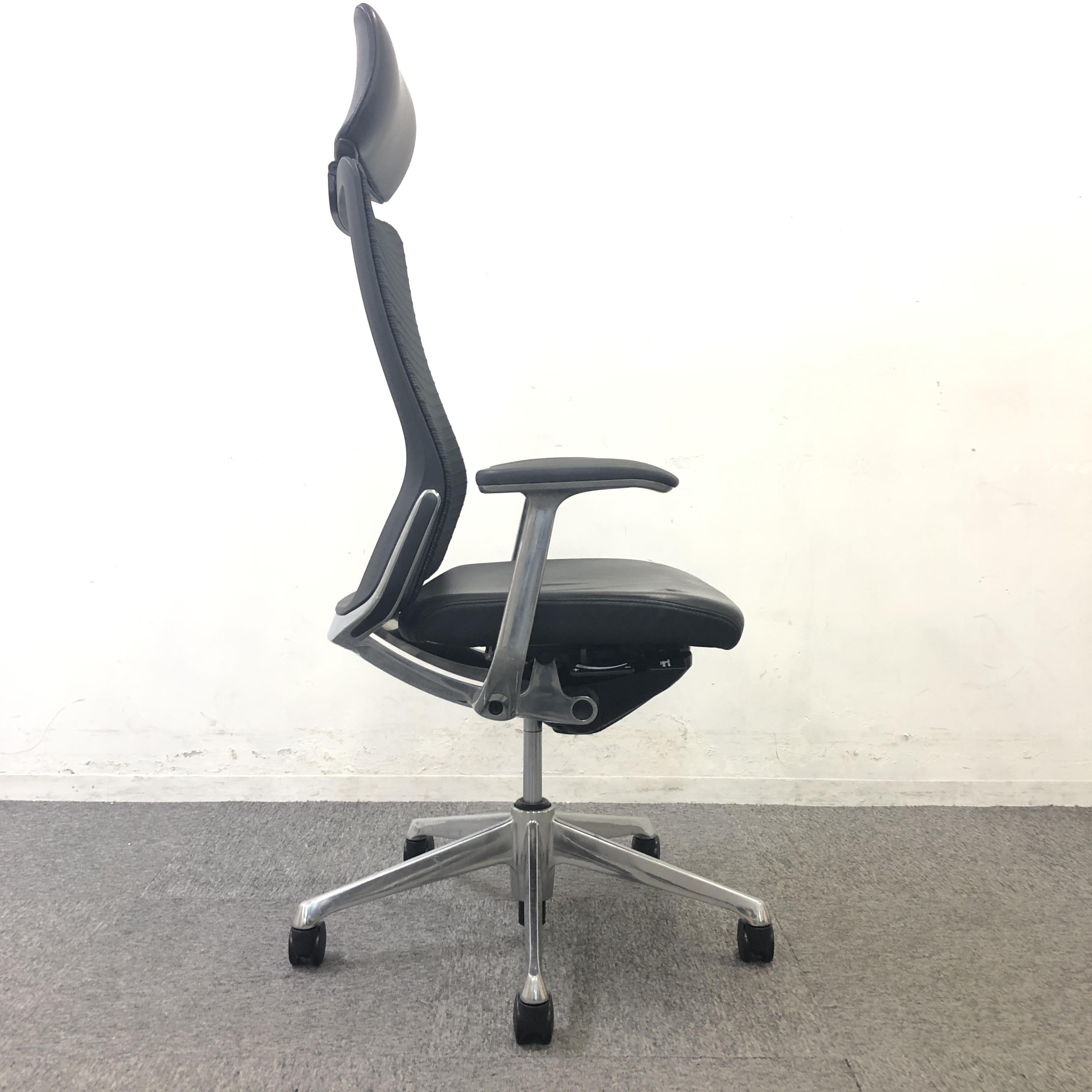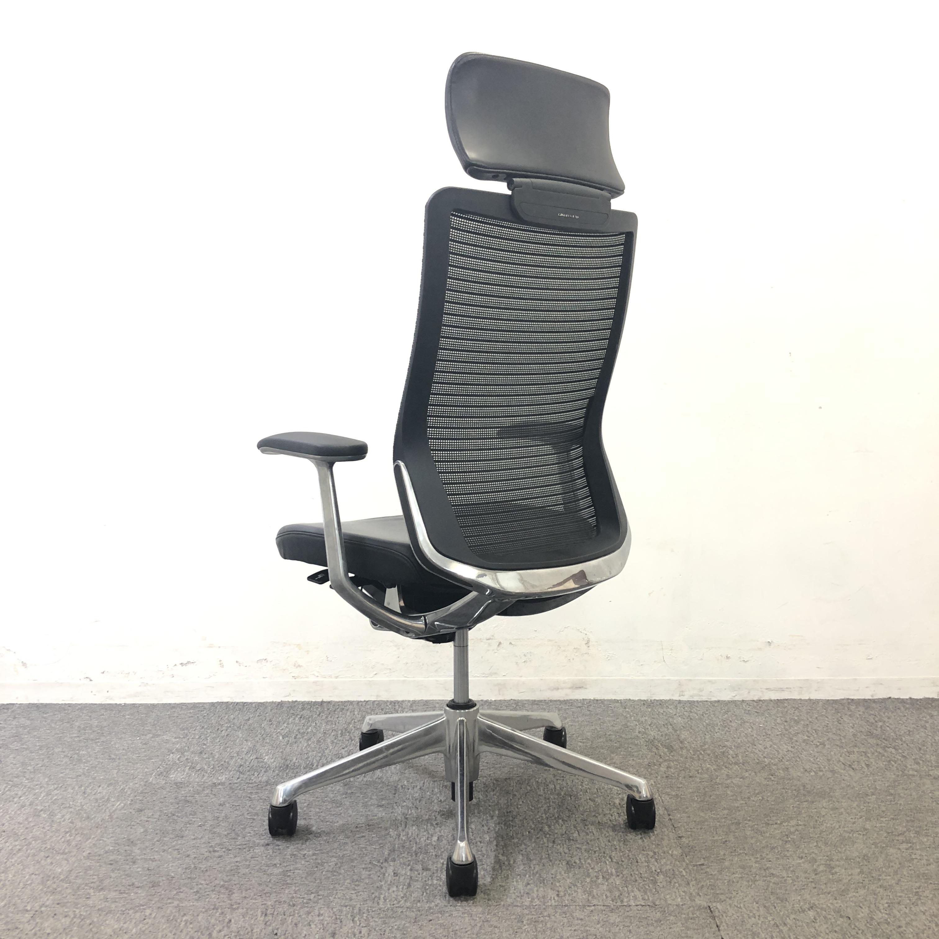 【革製のヘッドレスト付きが2脚入荷!】オカムラ コーラル ブラック エクストラハイバック デザインアーム ポリッシュフレーム 【定価30万超の高級チェア!】- 大阪・堺店