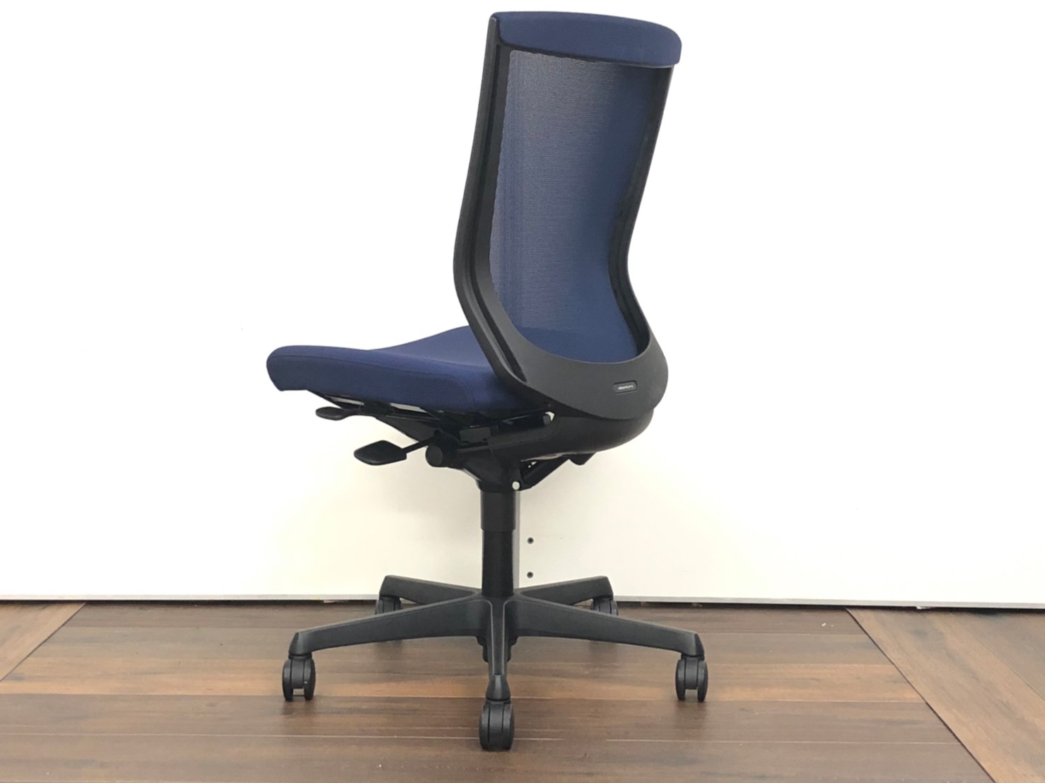 【A00962920】【デスクワークの負担を軽減!】■オカムラ製 エスクードメッシュチェア ブルー ■背中のメッシュが快適にフィット感!【在庫入替セール】