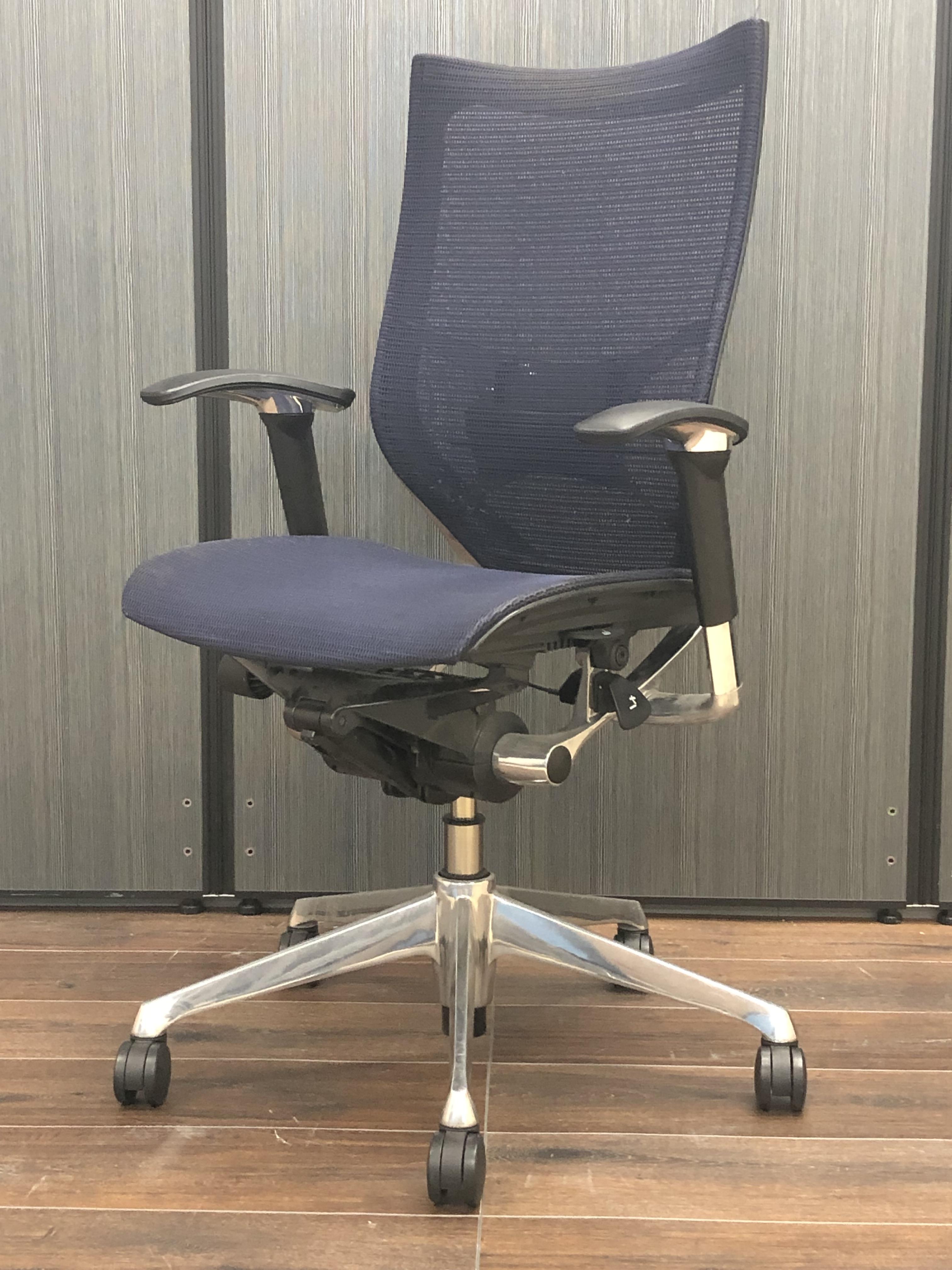 【在庫セール品】【定価約20万円】【人間工学に基づいた快適設計で身体にやさしくフィット!】■オカムラ(okamura)製 バロンチェア 肘付ハイバック 可動肘付 ■メッシュ ■ダークブルー 【ベストなポジションが得られる先進設計!】