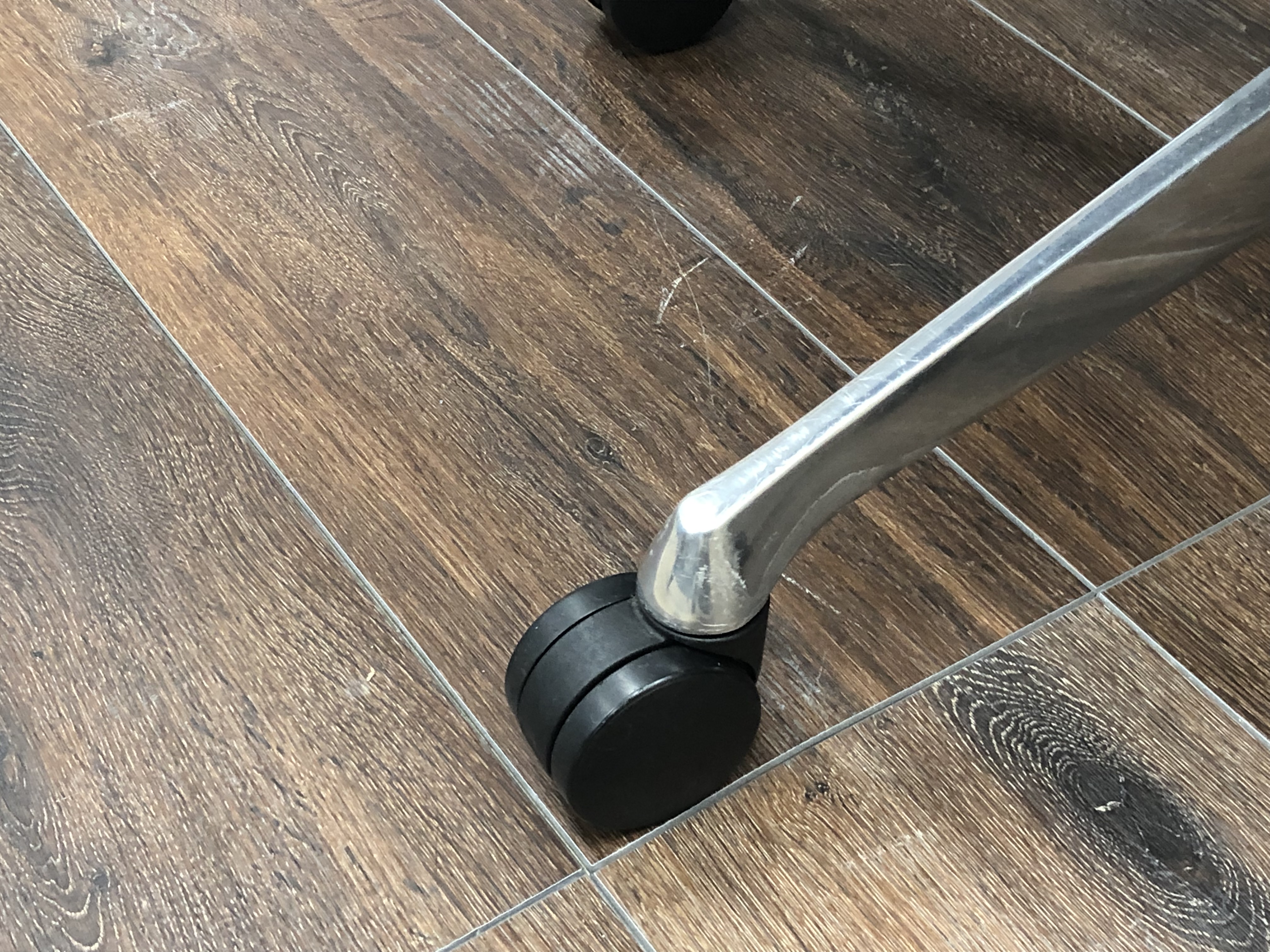 座面下のクッションも摩耗していて、フレーム部分にもキズが散見されます。