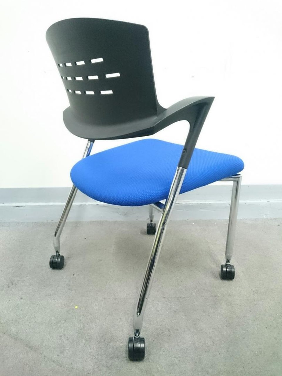 【厚みのあるクッションが快適!】■イトーキ製 カクタスシリーズ スタッキングチェア ブルー 【キャスター付/会議用チェア】※4脚1セットからの販売となります。- 品川・三田店