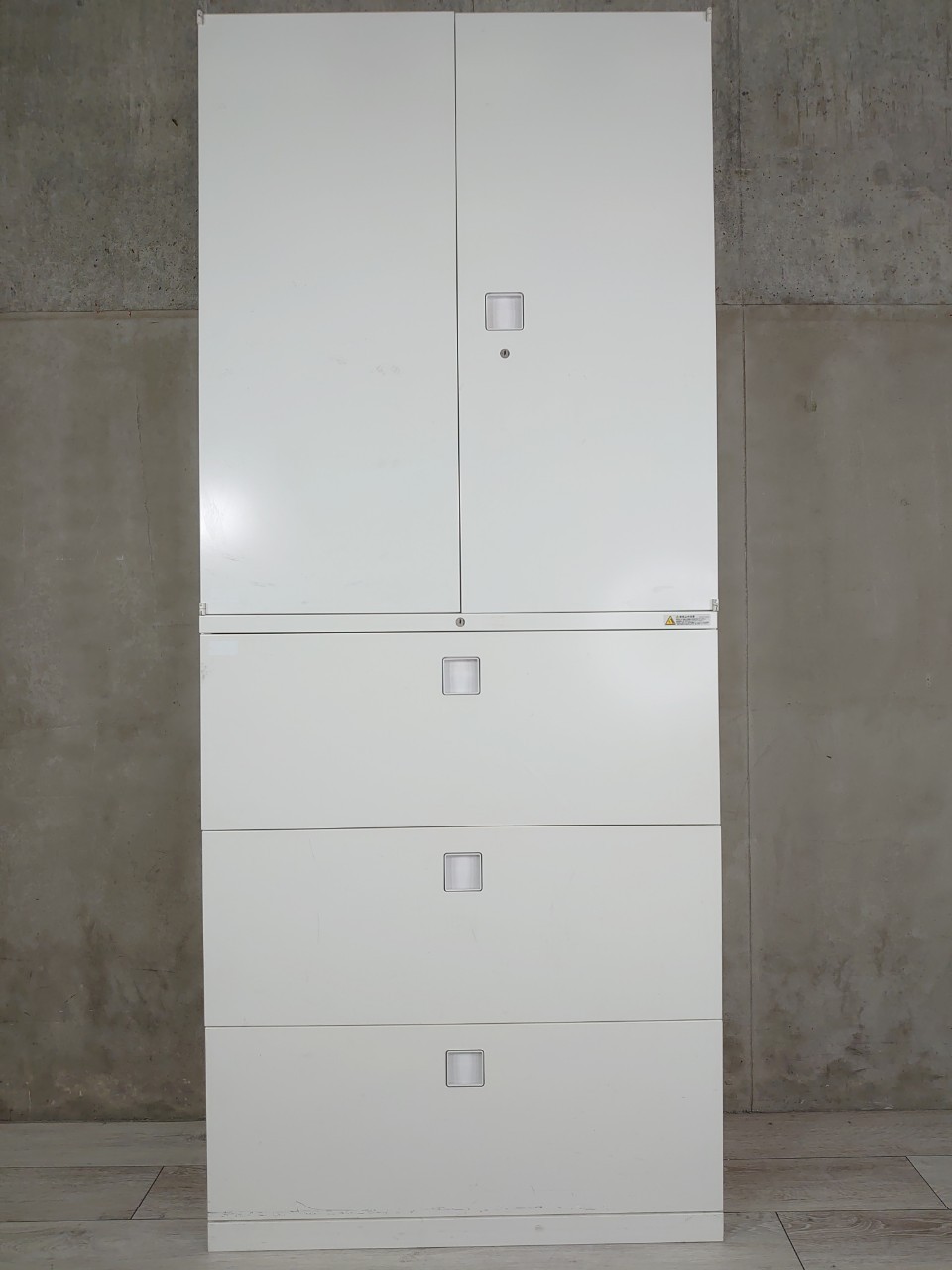 【オフィスの書類をスッキリ整理!大人気レクトラインの上下書庫セット!】■オカムラ(okamura)製 レクトラインシリーズ 両開き+3段ラテラル 書庫セット H2150㎜ ■シリンダー錠 ■ホワイト