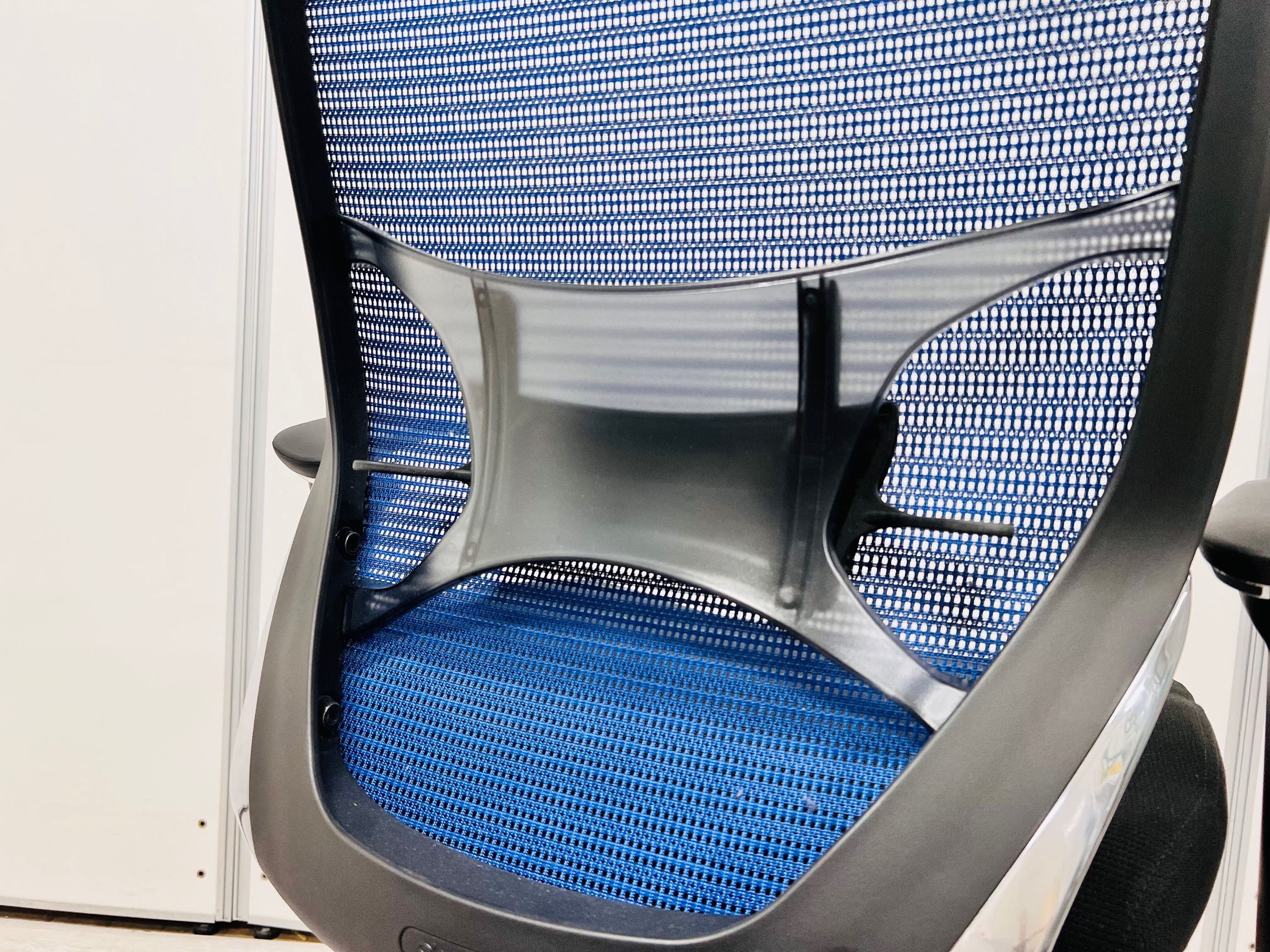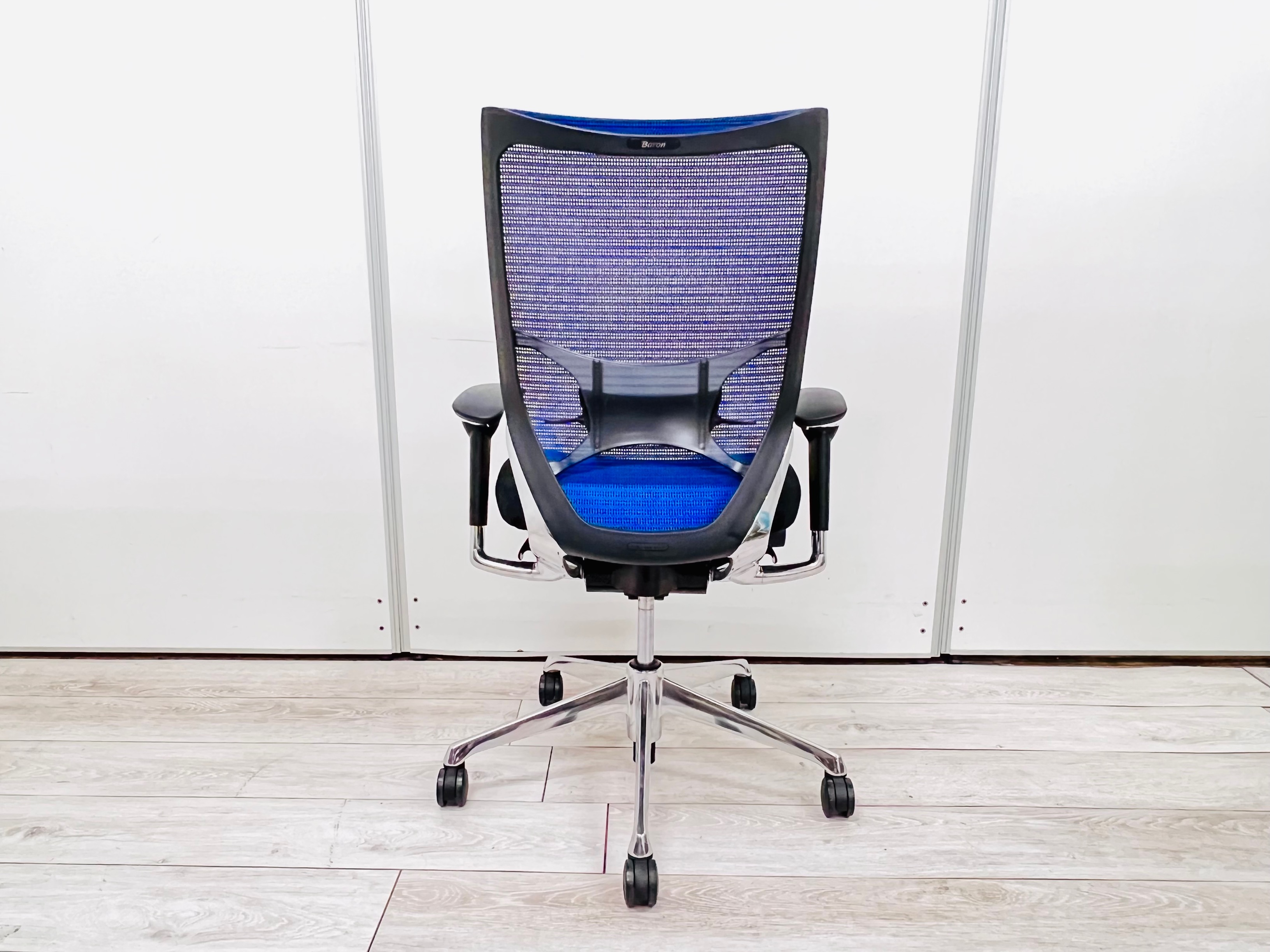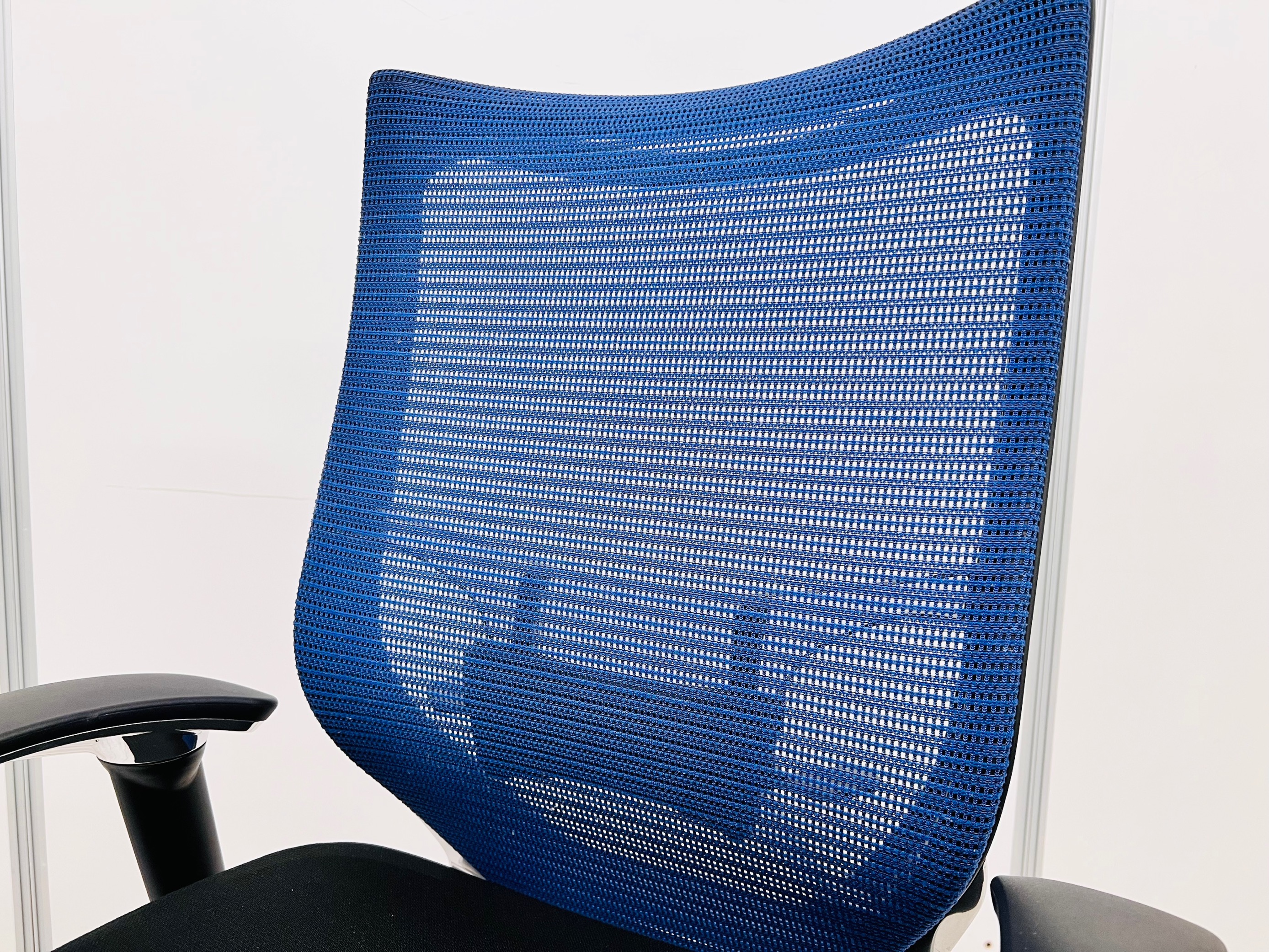 【オフィスの執務室、会議室におすすめ!】■オカムラ(okamura)製 バロン(Baron)チェア 肘付き ハイバック 背面メッシュ ■可動肘 ■ダークブルー × ホワイトシェル【硬めの座面が大人気!国産メッシュチェアの代表格!】【状態良好品!】