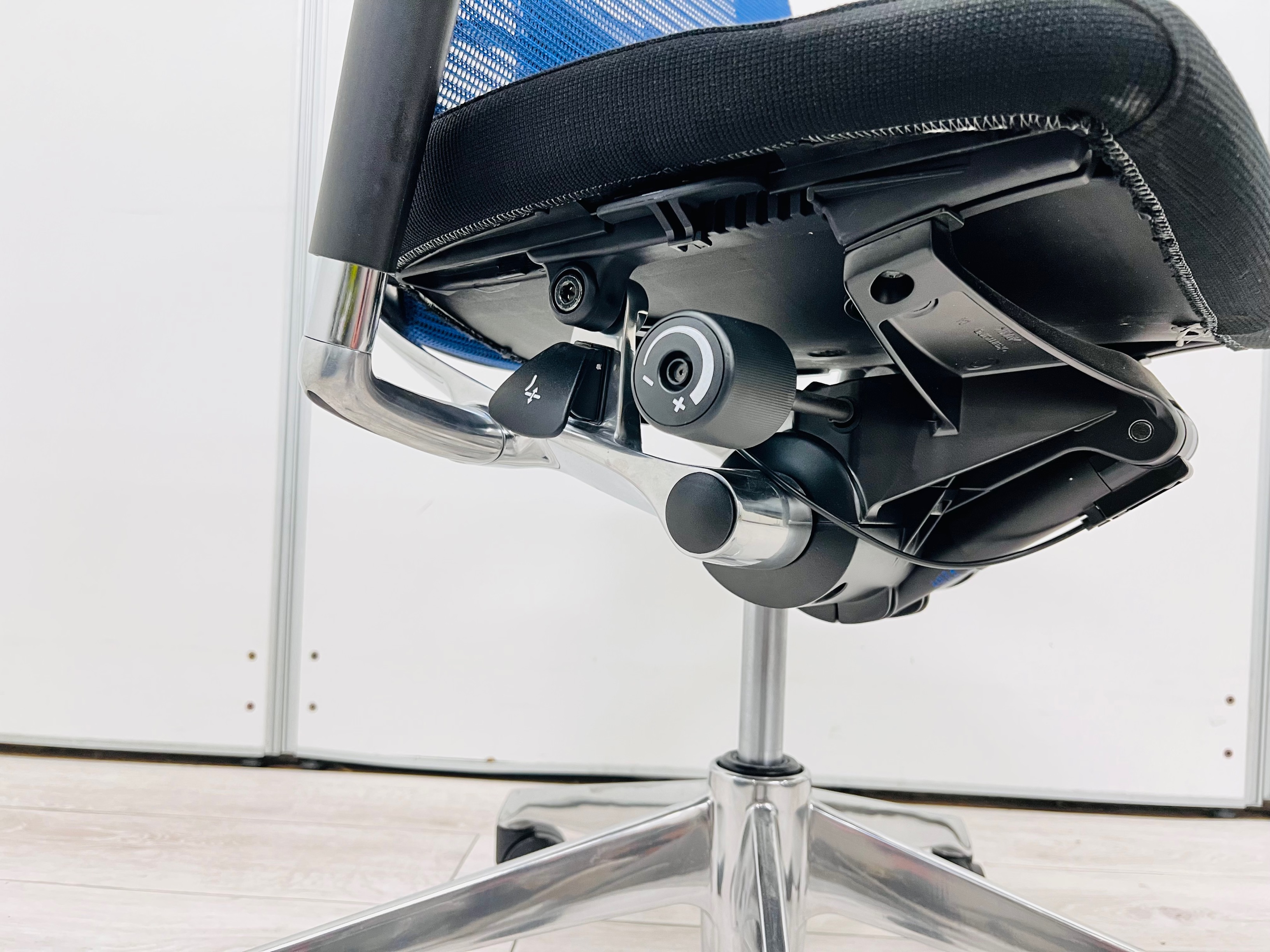 珍しい色合いのバロン入荷! 背面ブルー×座面ブラックのツートンカラーです! ■オカムラ/バロン/ブルー×ブラック- 池袋店