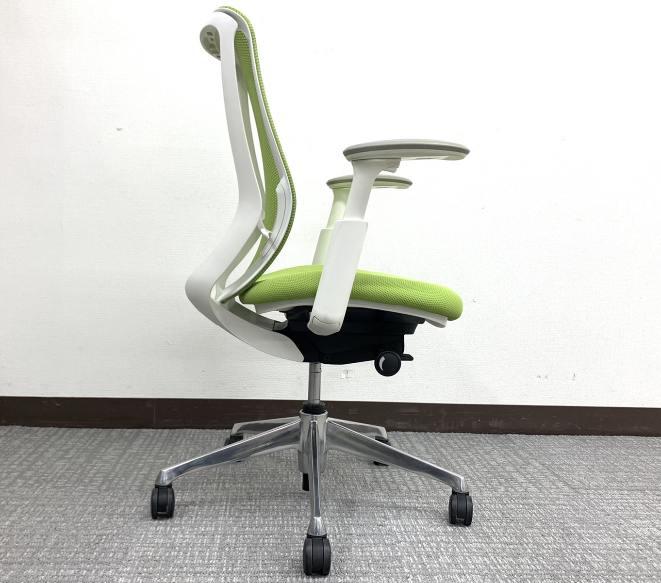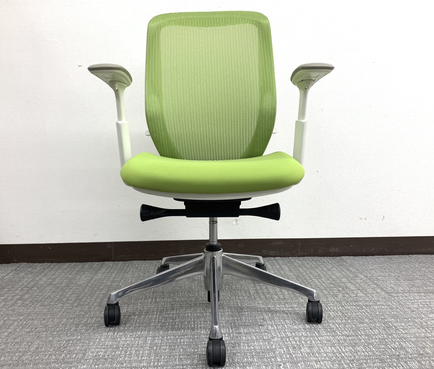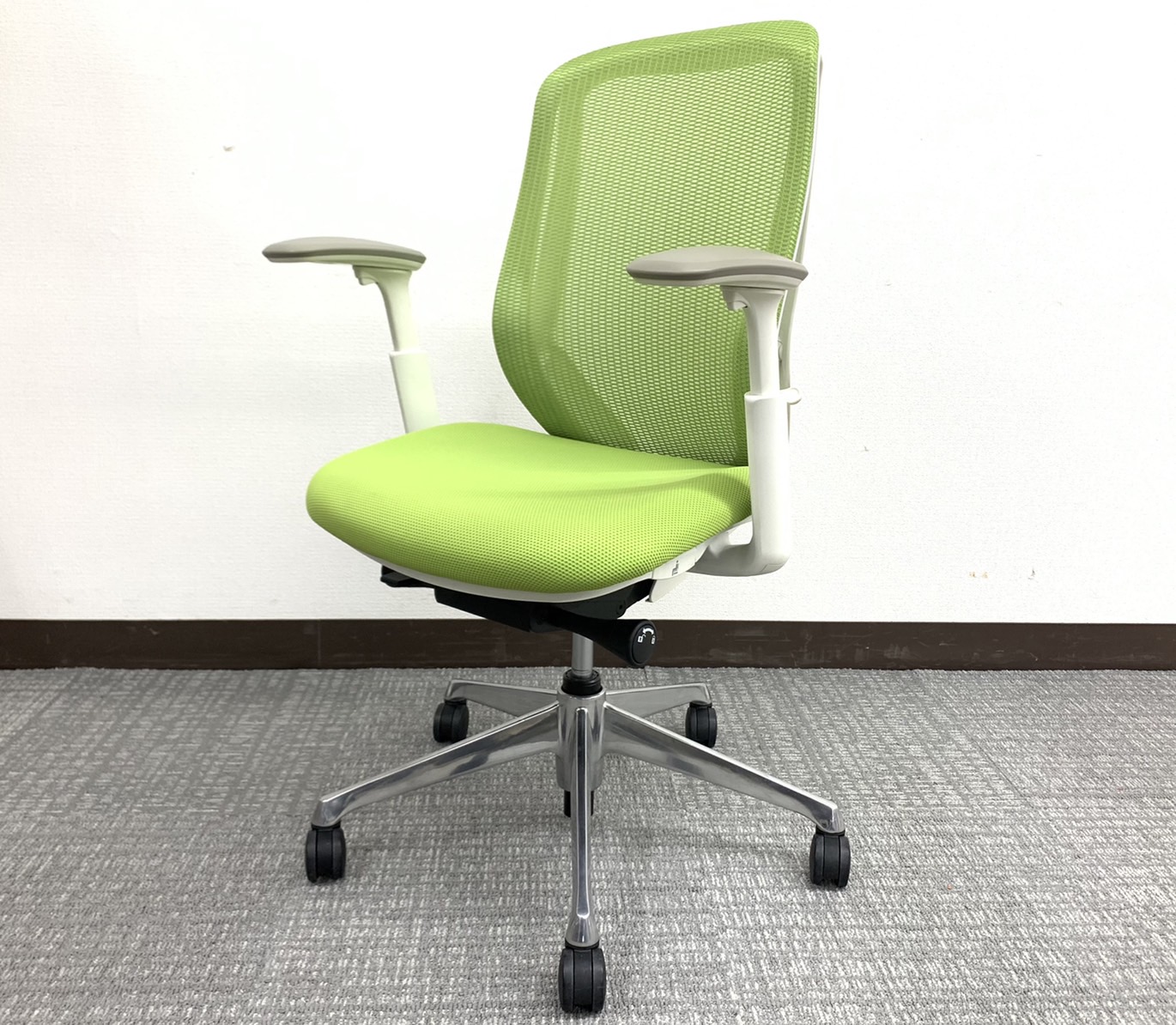 【人気のシルフィー(Sylphy)】フレッシュなグリーン色 可動肘掛け仕様【ホワイトフレーム・シルバー脚】- 品川・三田店