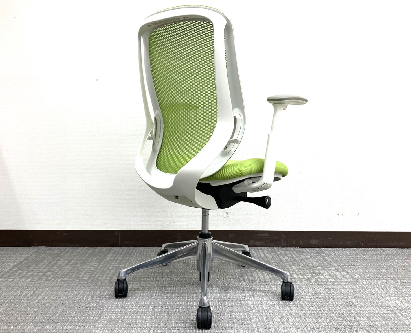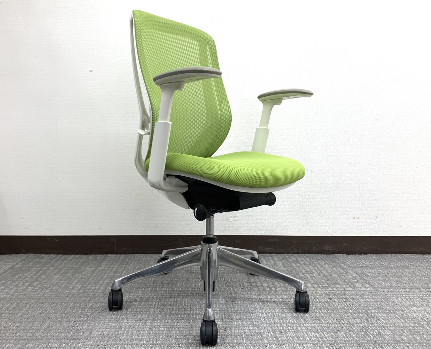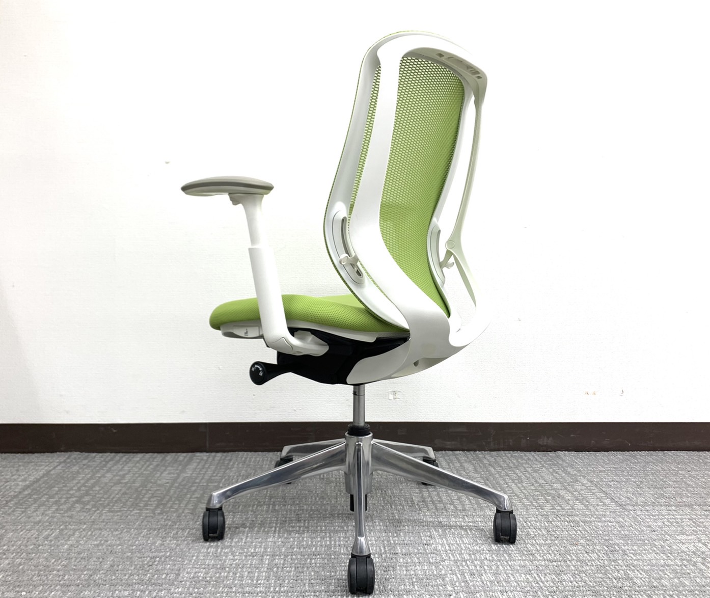 【人気のシルフィー(Sylphy)】フレッシュなグリーン色 可動肘掛け仕様【ホワイトフレーム・シルバー脚】- 品川・三田店