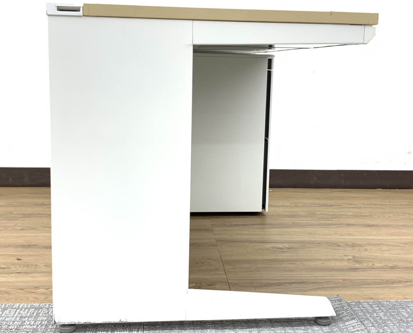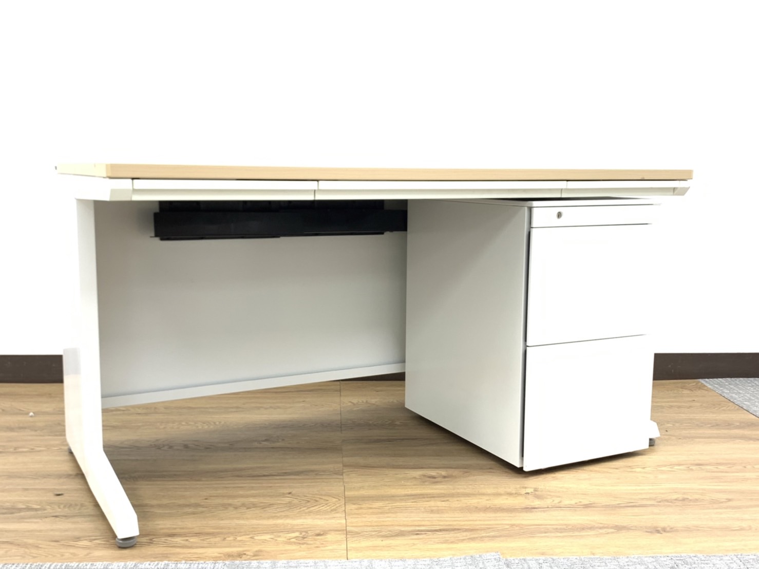 【11/10・4台入荷予定】【ゆとりのあるワークスペースで作業効率アップ!】■オカムラ(okamura)製 アドバンス(ADVANCE)シリーズ 平机 引き出し無し W1400×D700×H720mm ■ホワイト / 天板:ナチュラル木目調