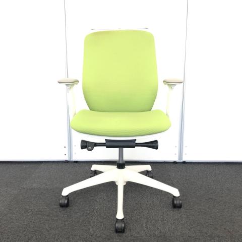【在庫入替セール品】【人気のシルフィチェアヘッドレスト付きが1脚限定入荷!】オカムラ シルフィ ライムグリーン エクストラハイバック ホワイトフレーム デザインアーム(固定肘) 前傾チルト機能付き