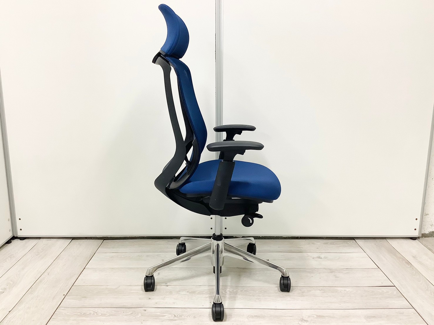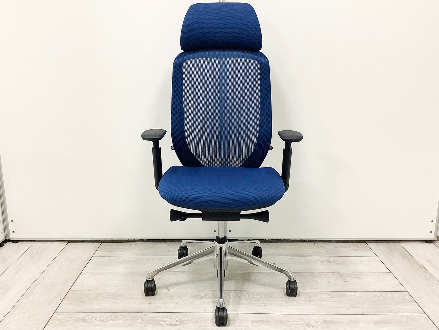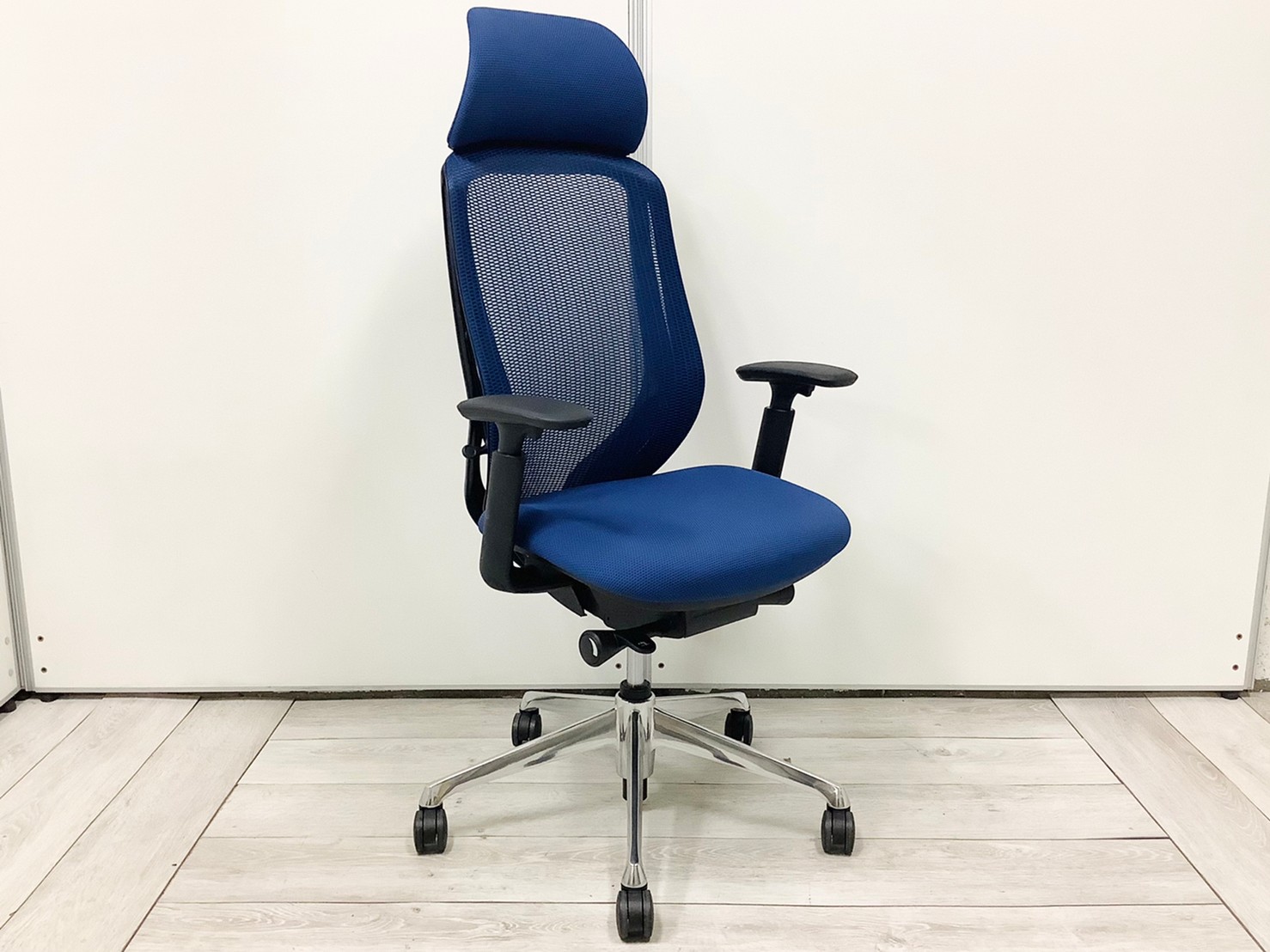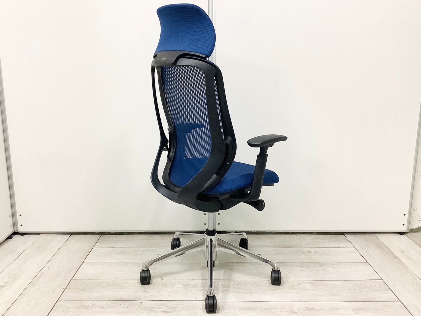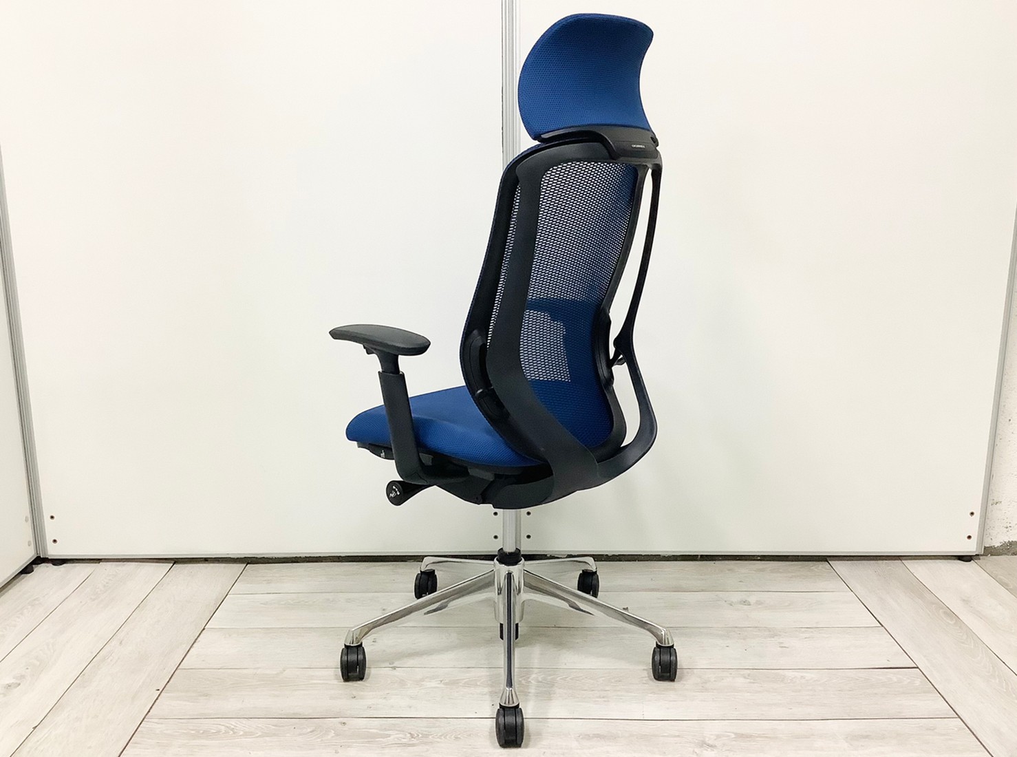 【前傾チルト機能付!大人気メッシュチェア!】■オカムラ(okamura)製 シルフィー(Sylphy) 肘付 ハイバック ■固定肘 ■ブルー ×ブラックシェル【2603】弊社使用欄【A01069136】