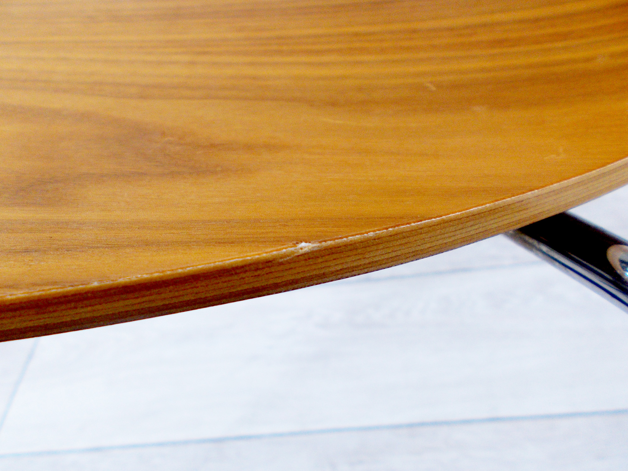 - かなり強い濃い黄ばみ・変色が商品全体にある。(例、座面・背もたれ、脚部等にある。)