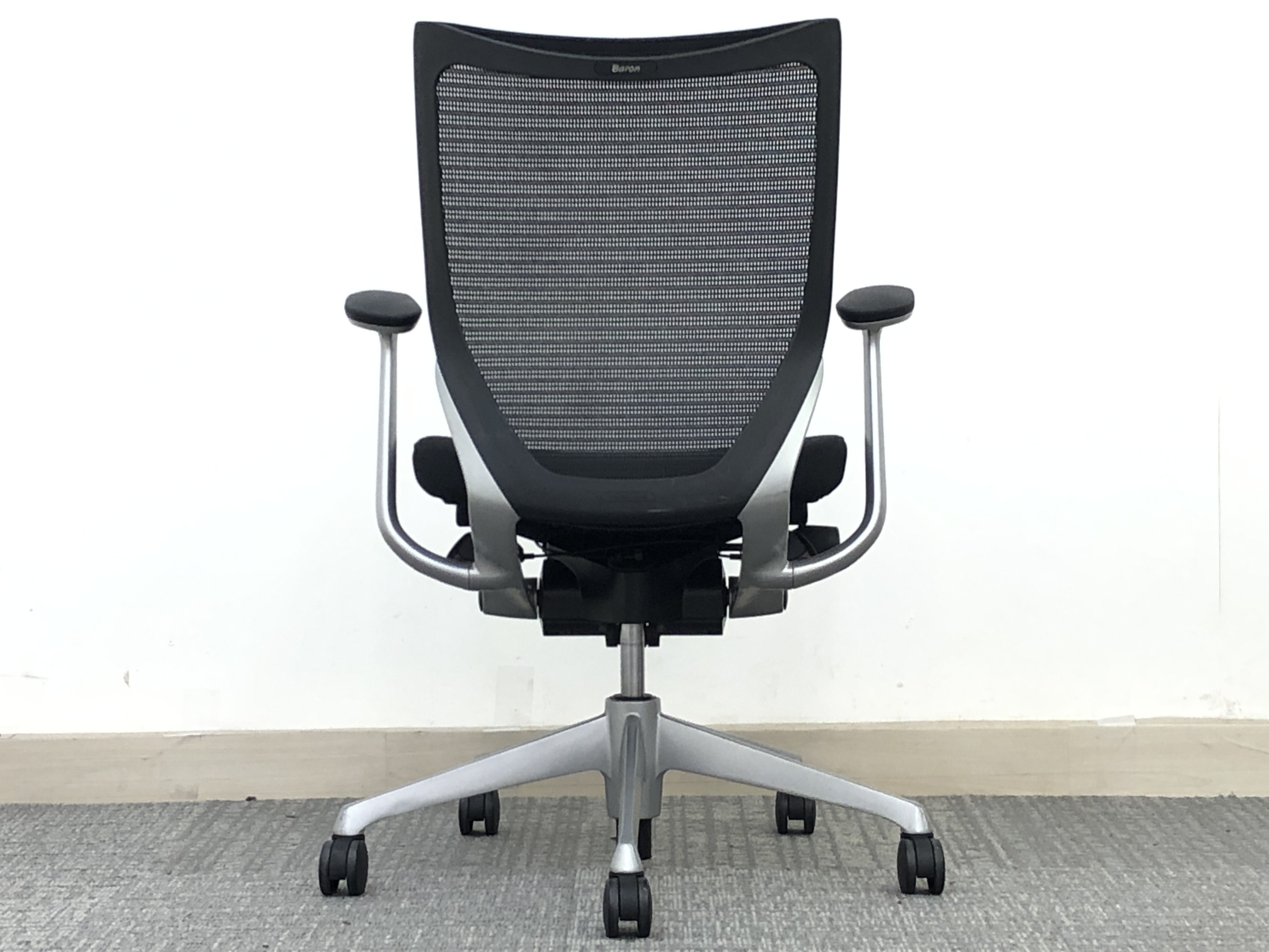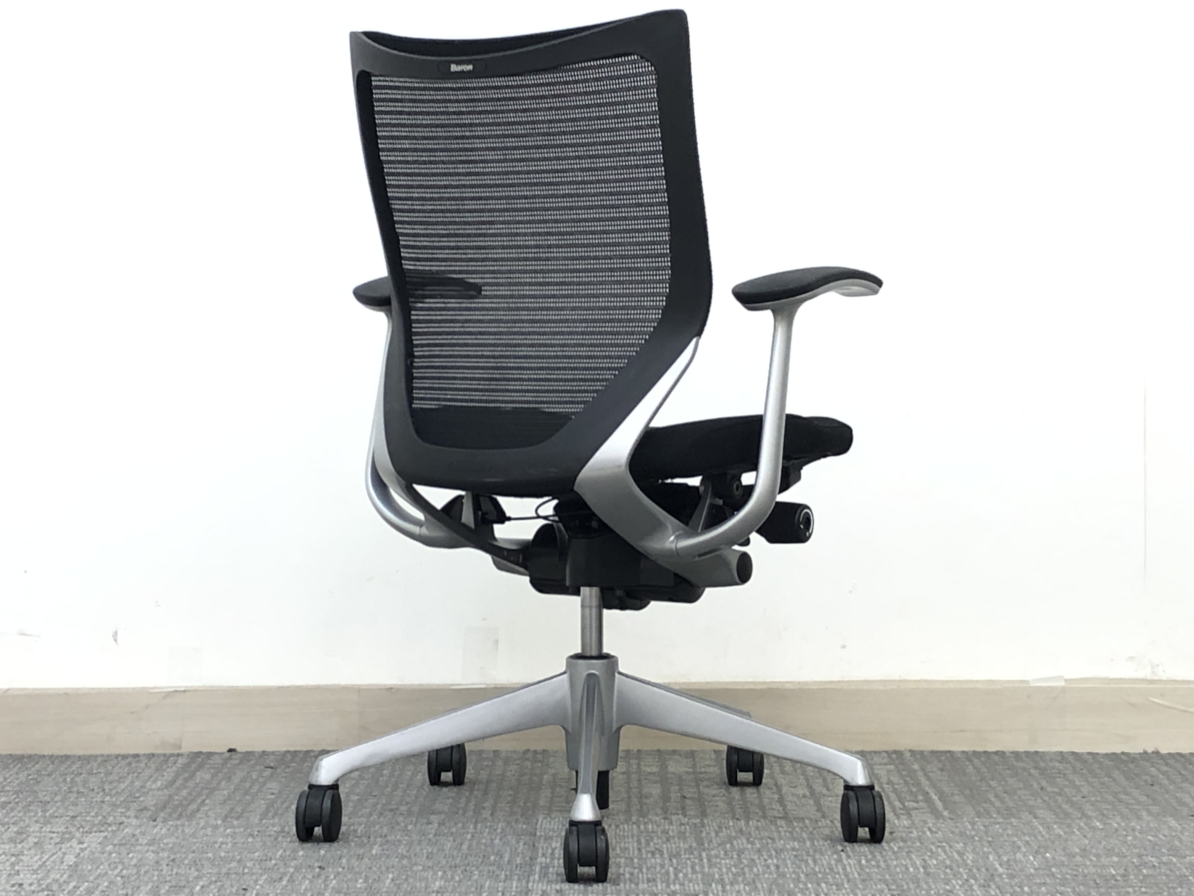 【定価約20万円以上】【長時間の着座でも疲れにくいサポート感!】■オカムラ製 バロンチェア 肘付ローバック ■ブラック ■固定肘 ■メッシュ背面 【ベストなポジションが得られる先進設計!】