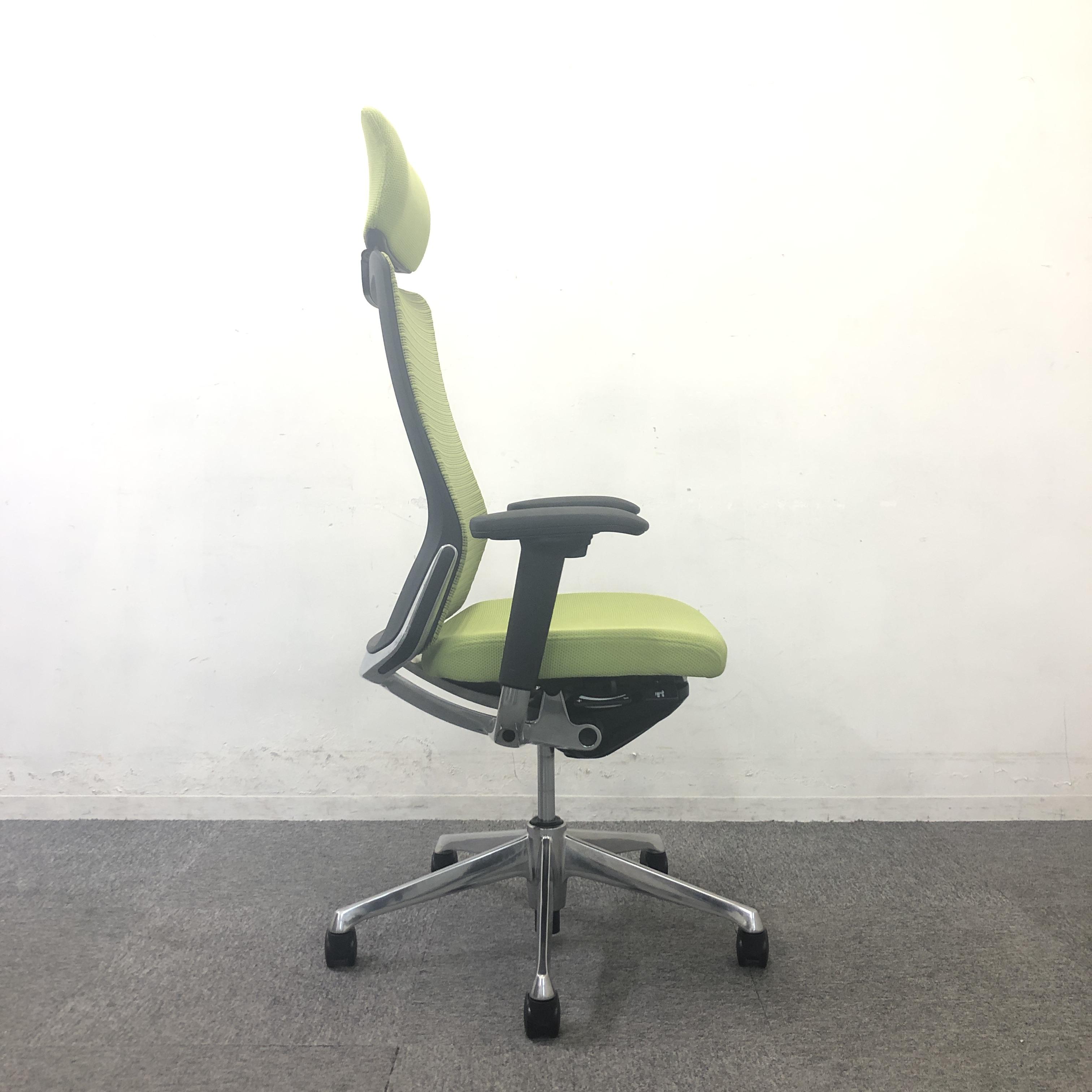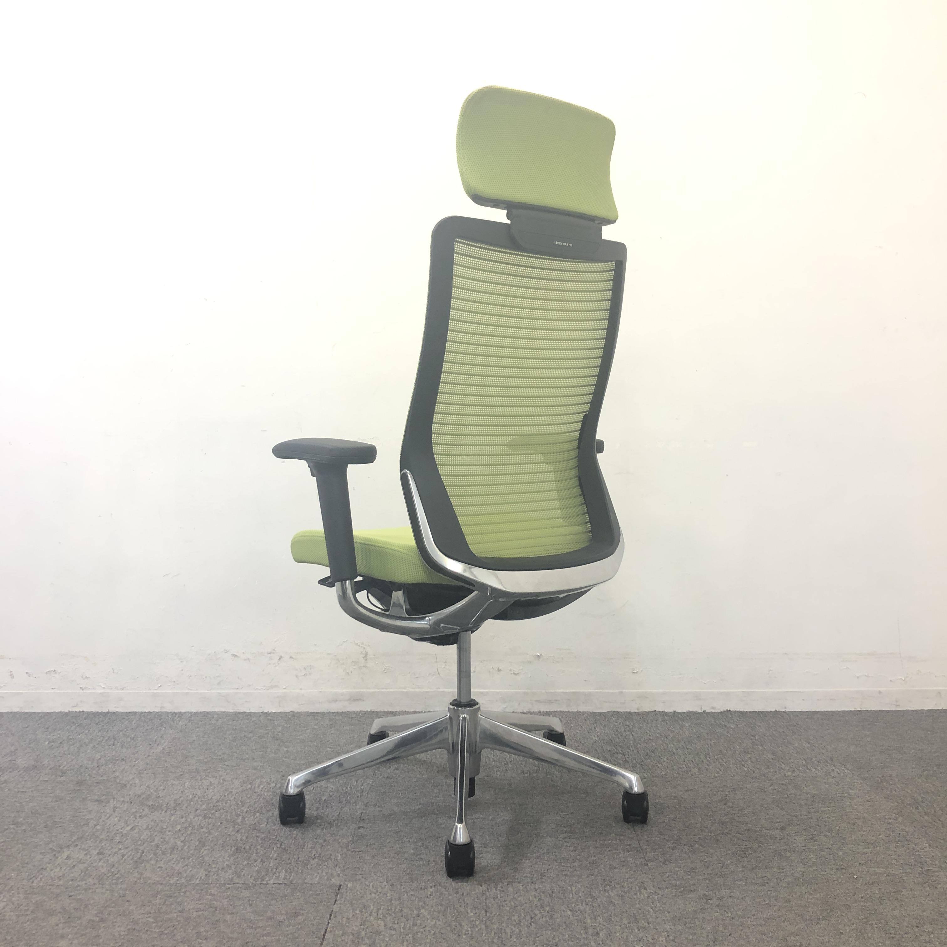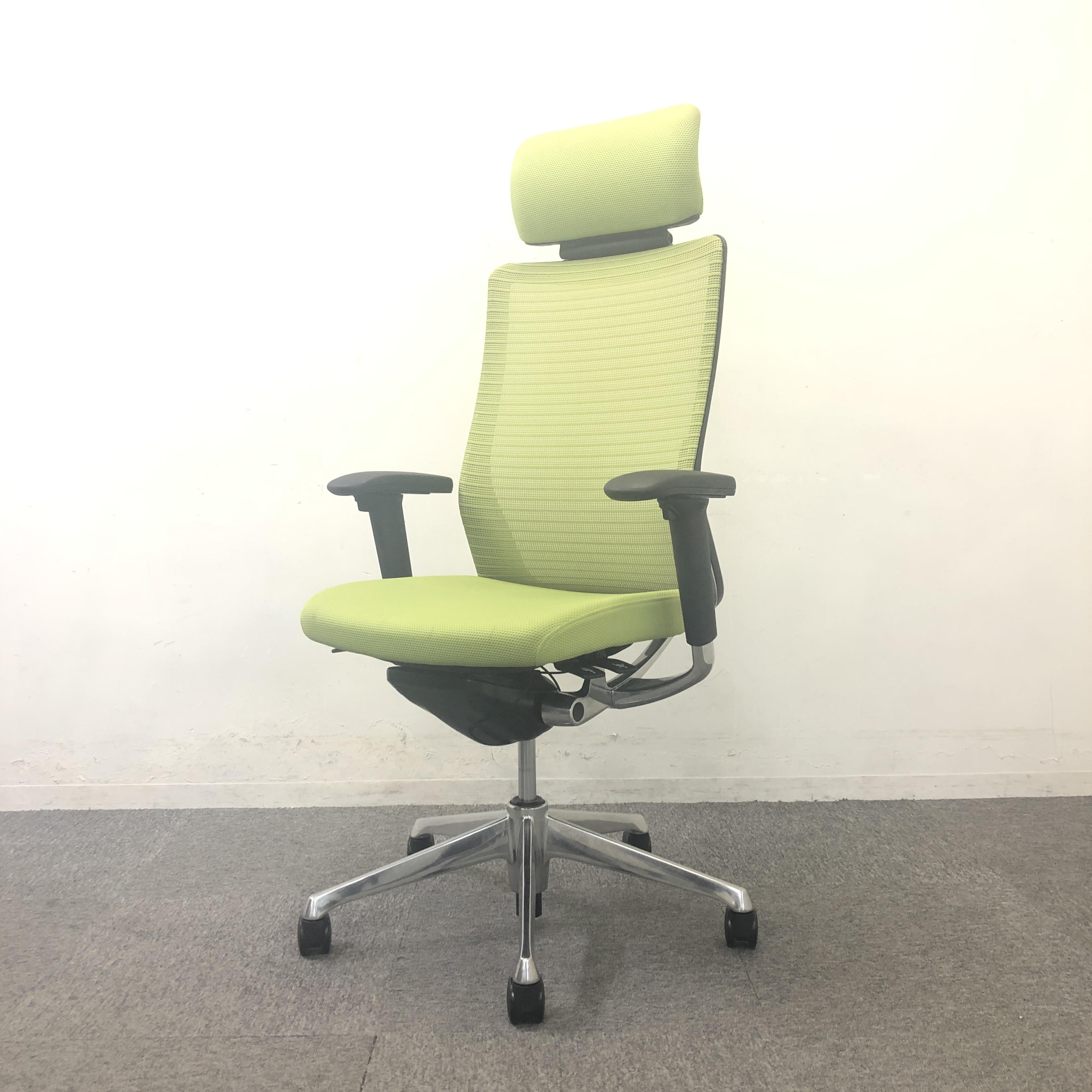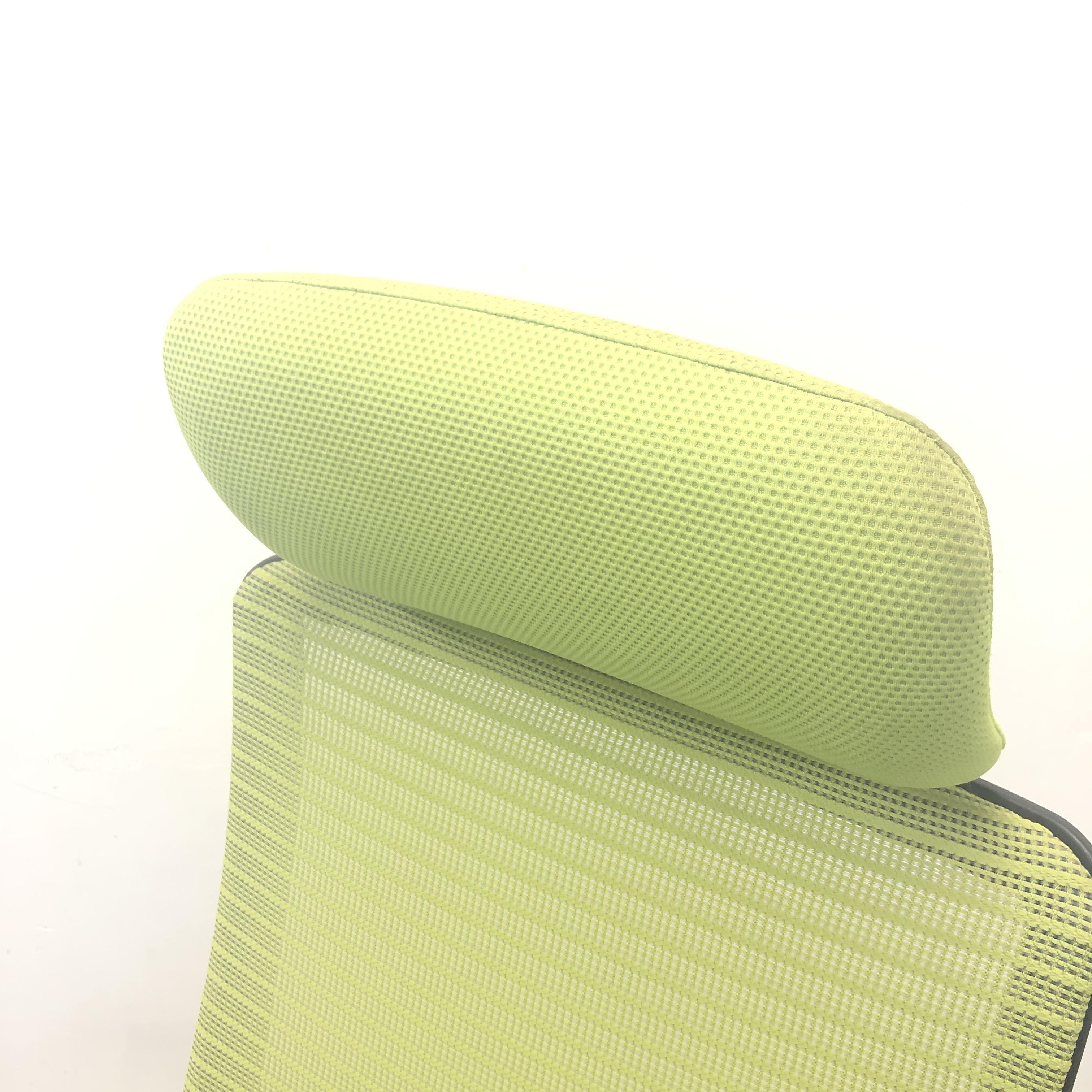 【3脚レア入荷!!】レアなヘッドレスト付!オカムラ コーラル メッシュ ヘッドレスト 可動肘 ライムグリーン- 大阪・堺店