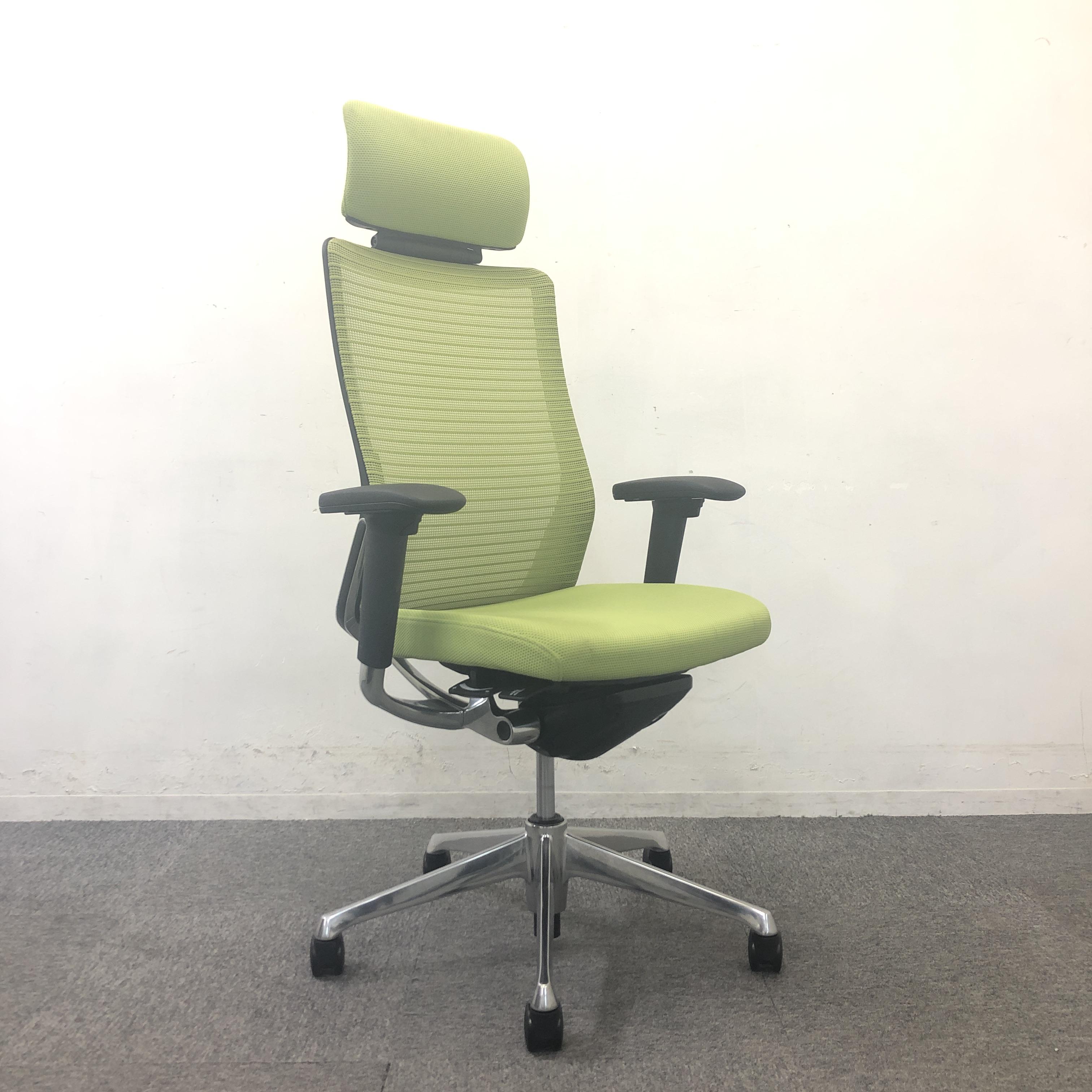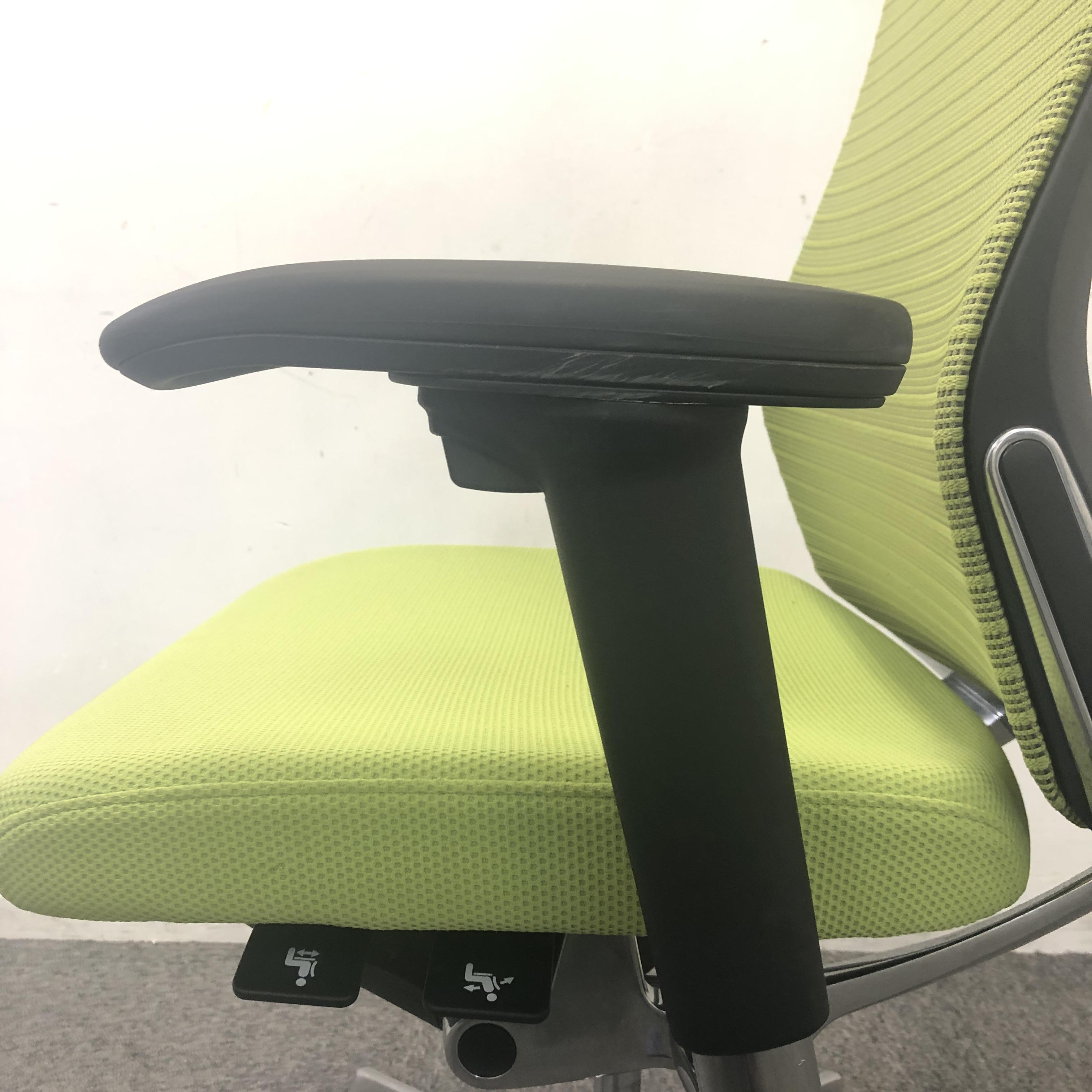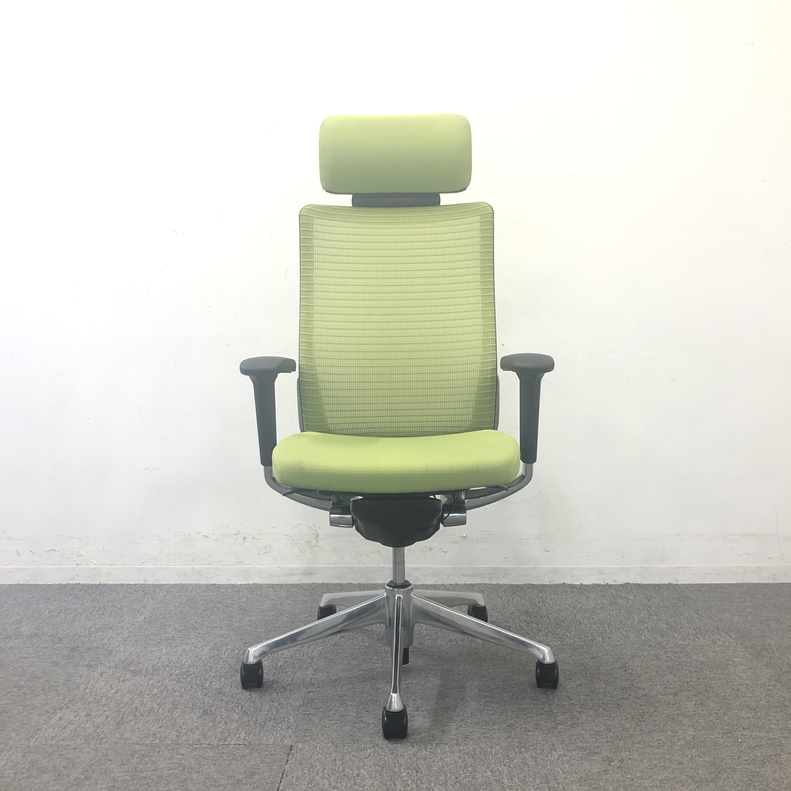 【3脚レア入荷!!】レアなヘッドレスト付!オカムラ コーラル メッシュ ヘッドレスト 可動肘 ライムグリーン- 大阪・堺店