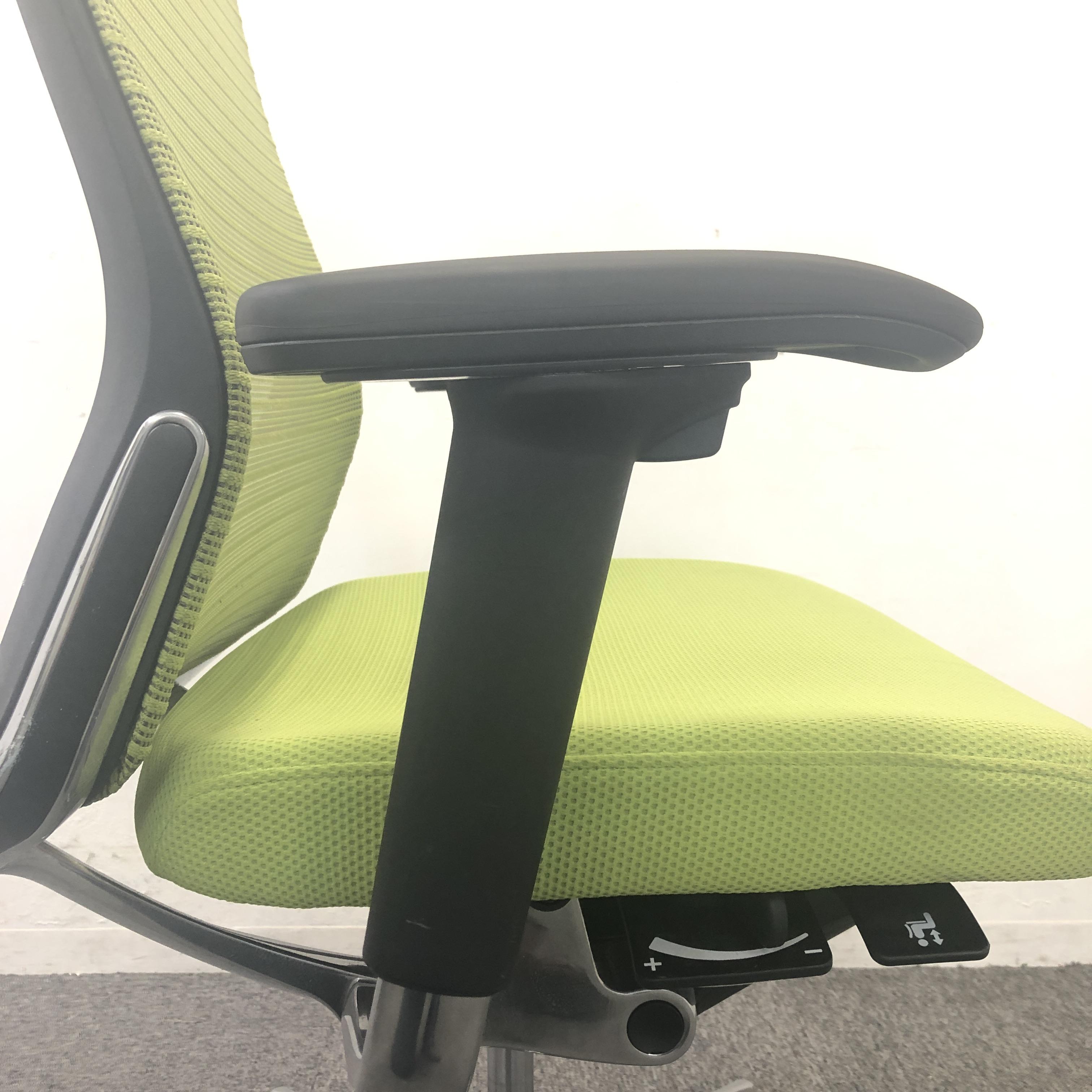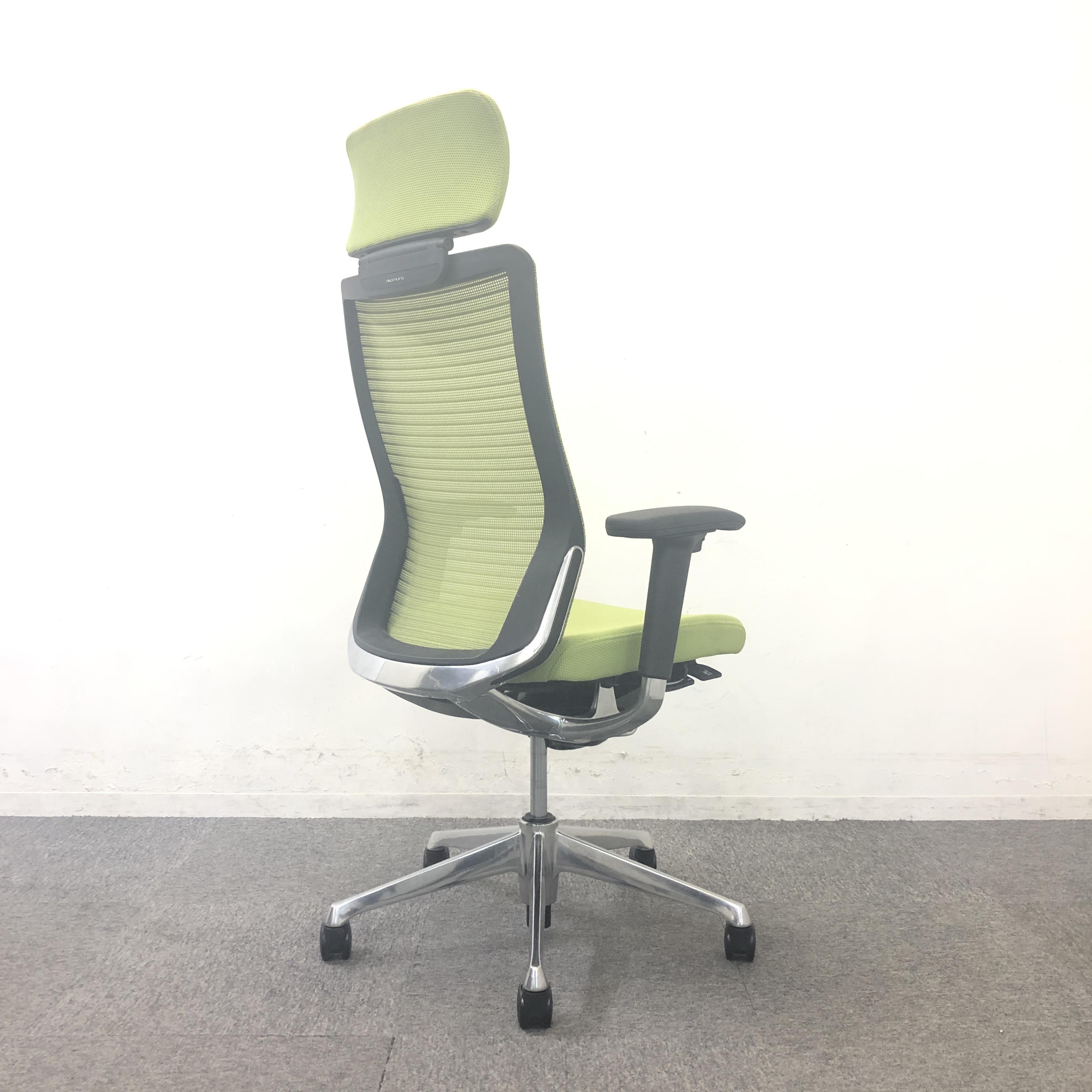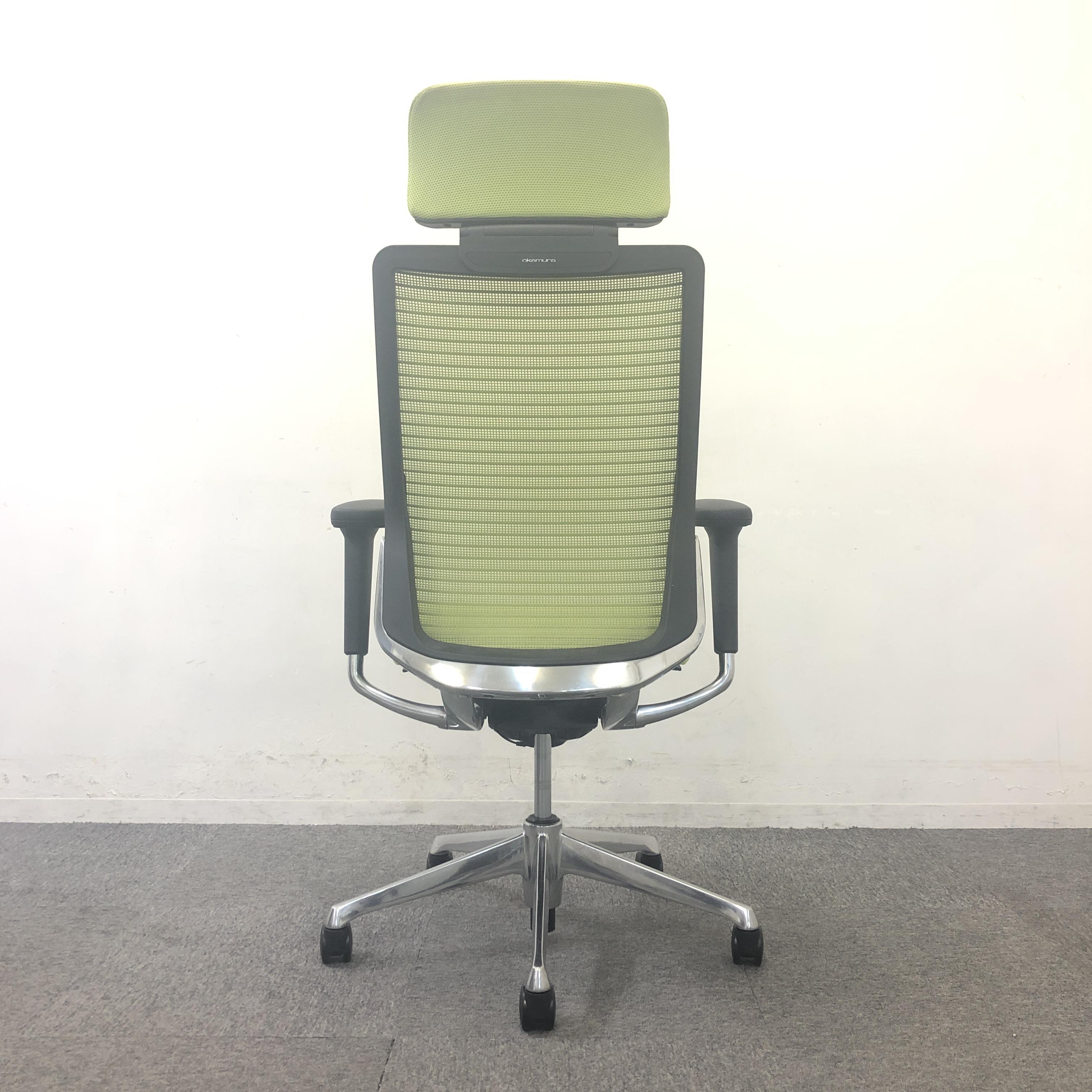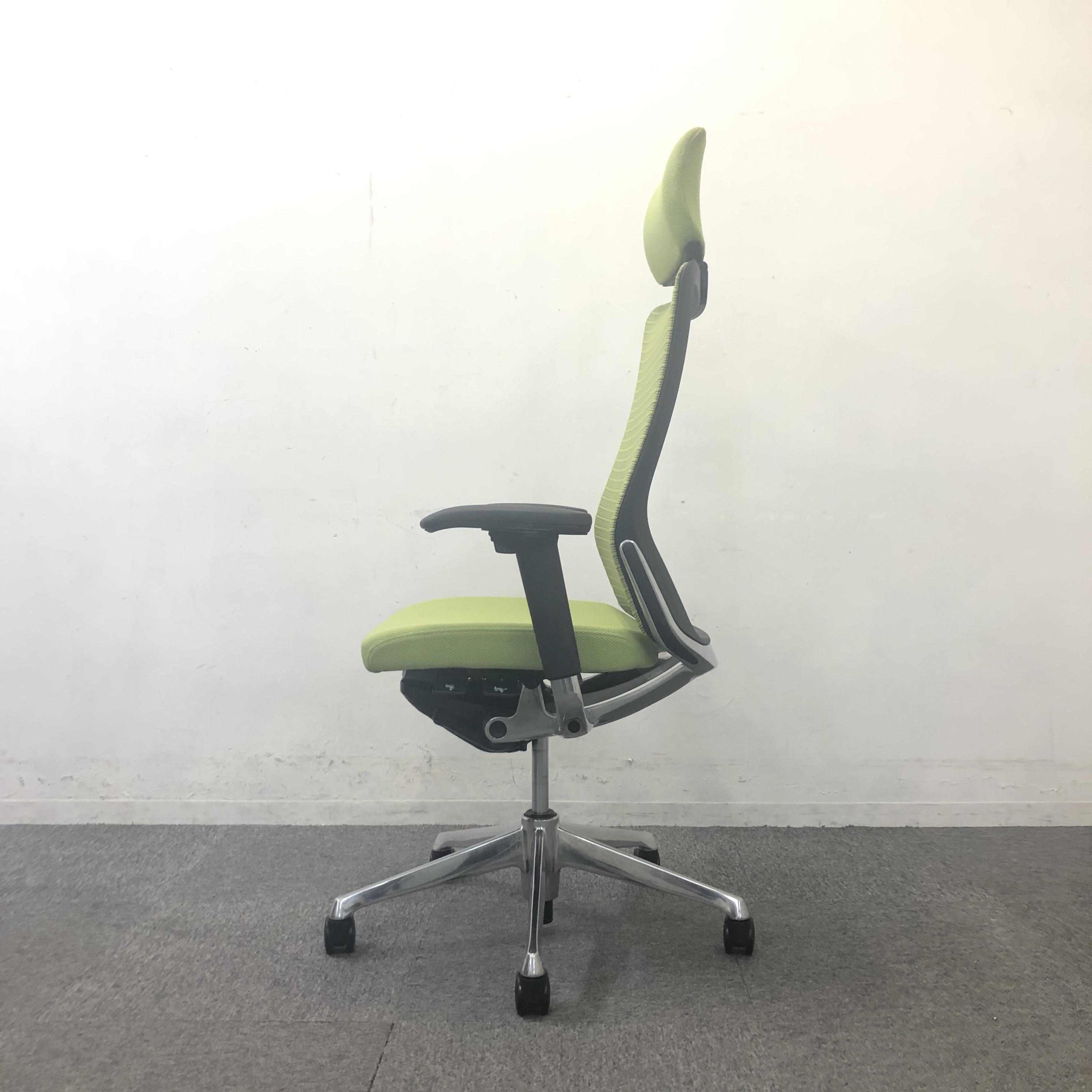 【3脚レア入荷!!】レアなヘッドレスト付!オカムラ コーラル メッシュ ヘッドレスト 可動肘 ライムグリーン- 大阪・堺店