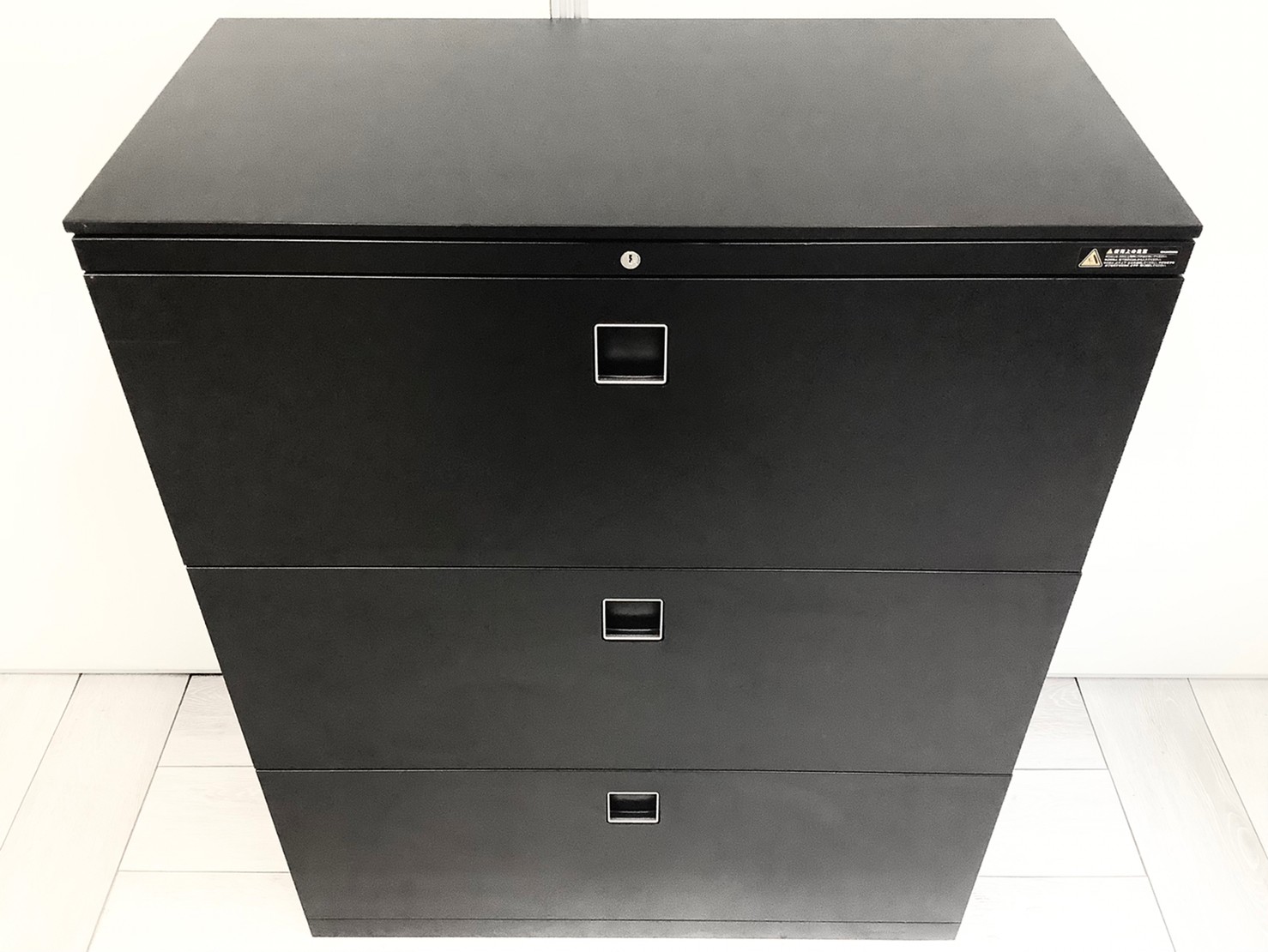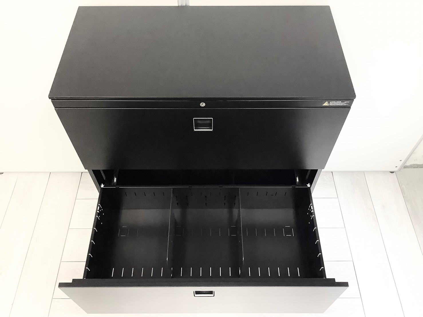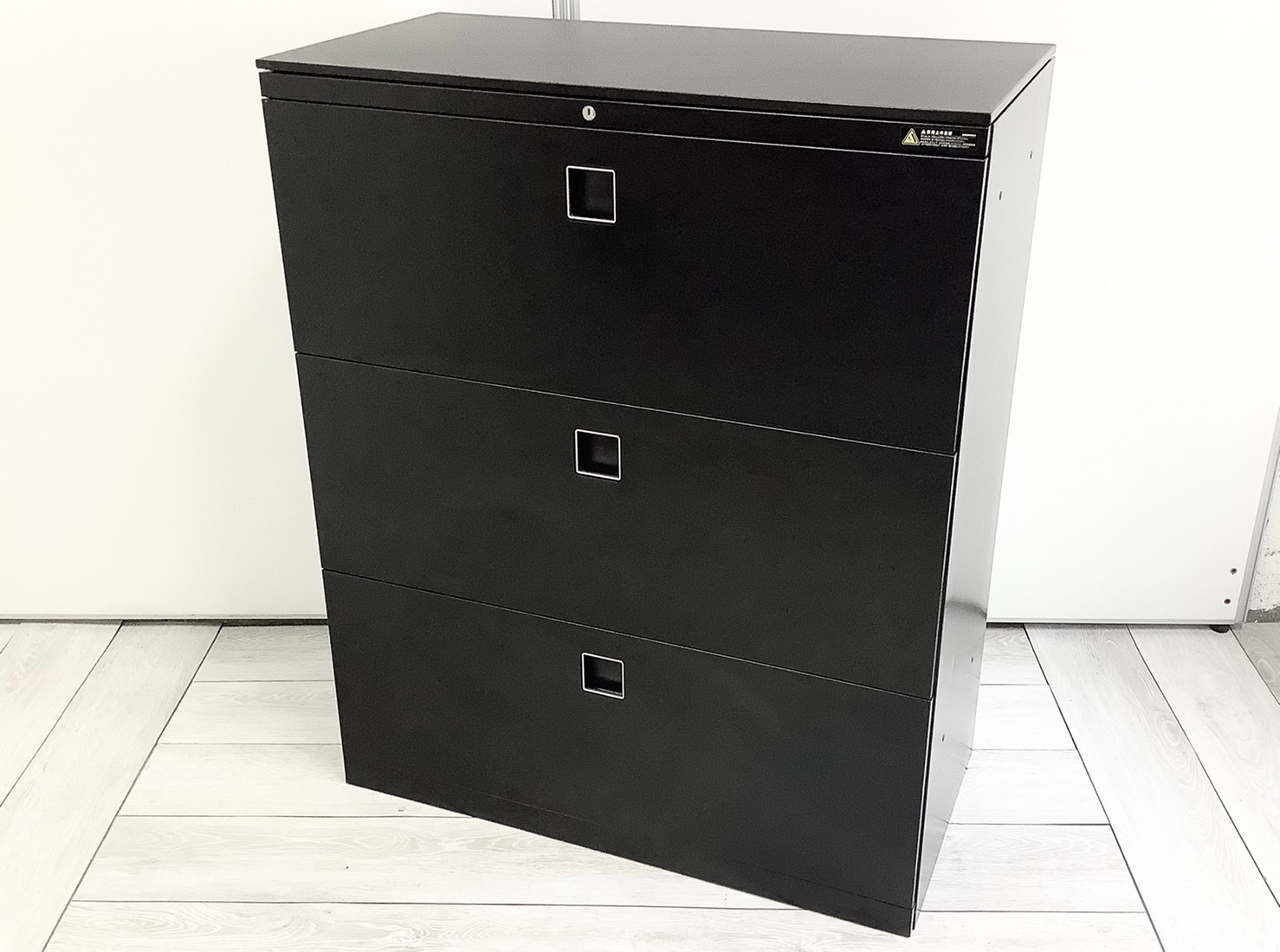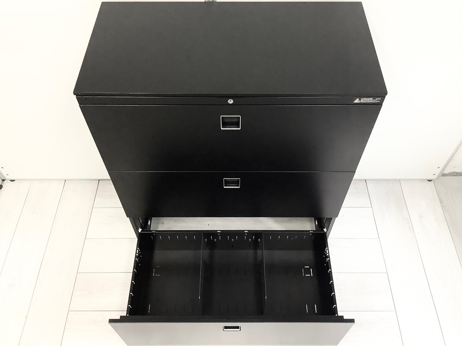 【超レアなブラック色!】オカムラ製/レクトラインシリーズ珍しいブラックカラー/ブラウン天板付き/3段ラテラル【BKNA】