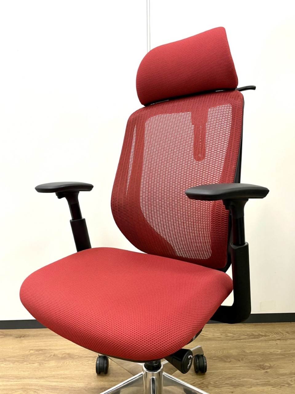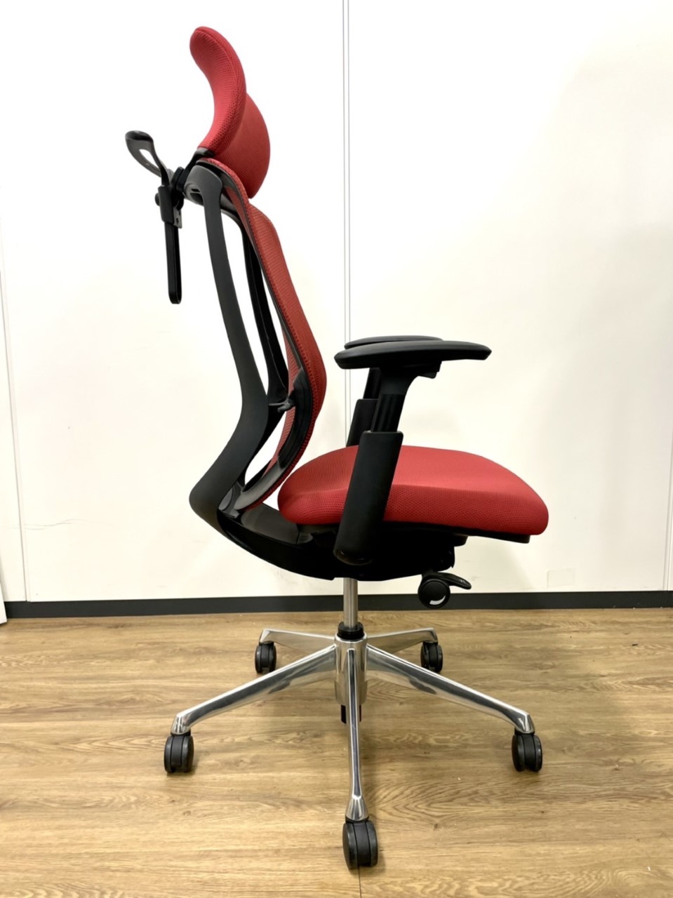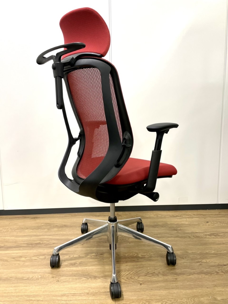 【人気のシルフィーチェア】オカムラ製 新品ヘッドレスト付 レッド 可動肘 人気商品の為お買いお求めの方はお早めに!!【残り2脚】※コートハンガーは付属しておりません。サーキュラーバリューCO2削減量の算出について