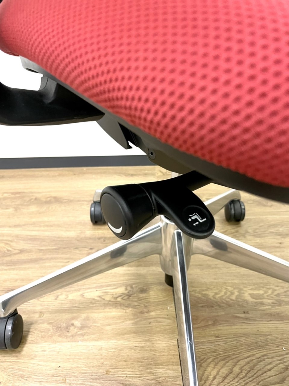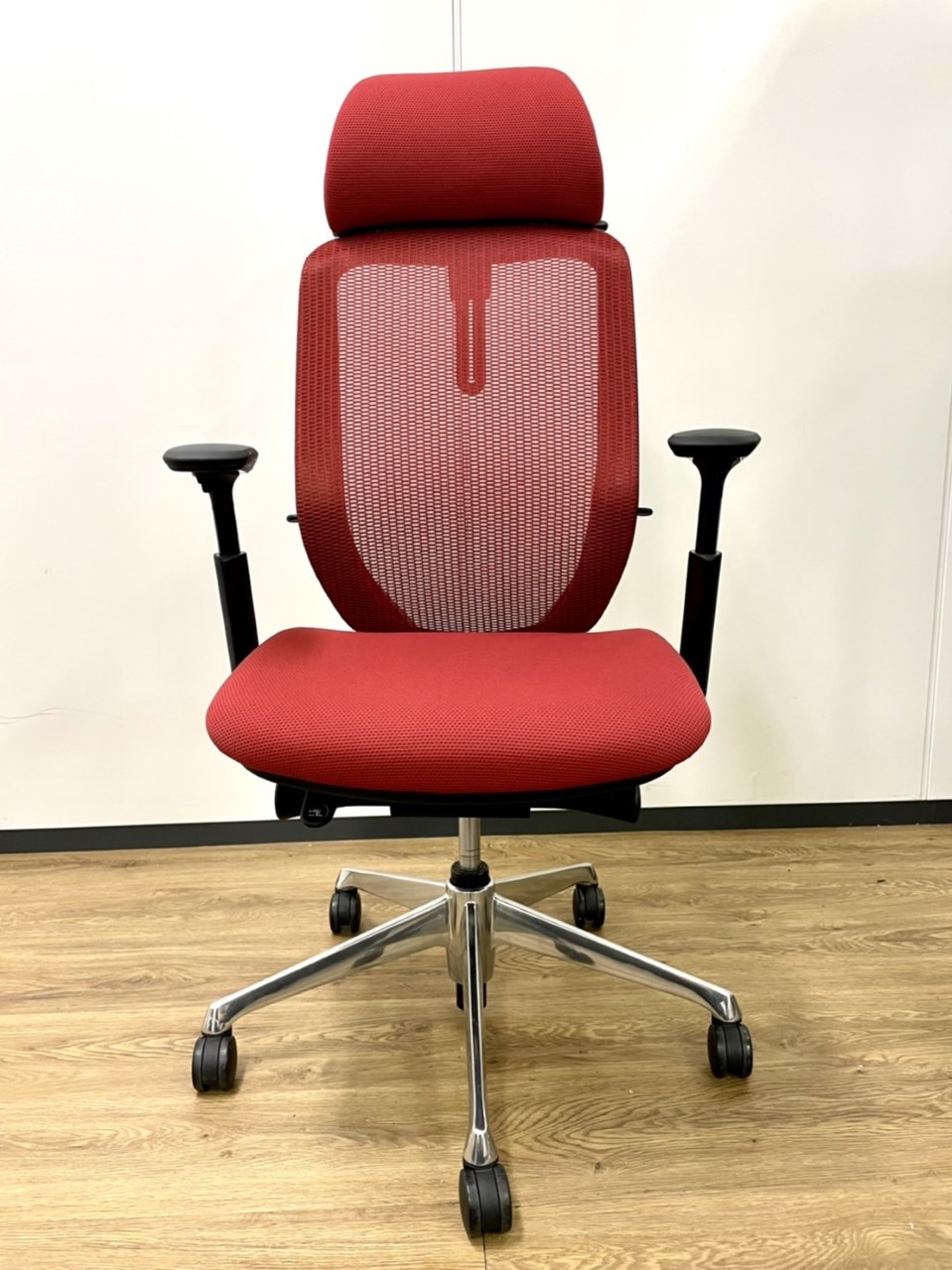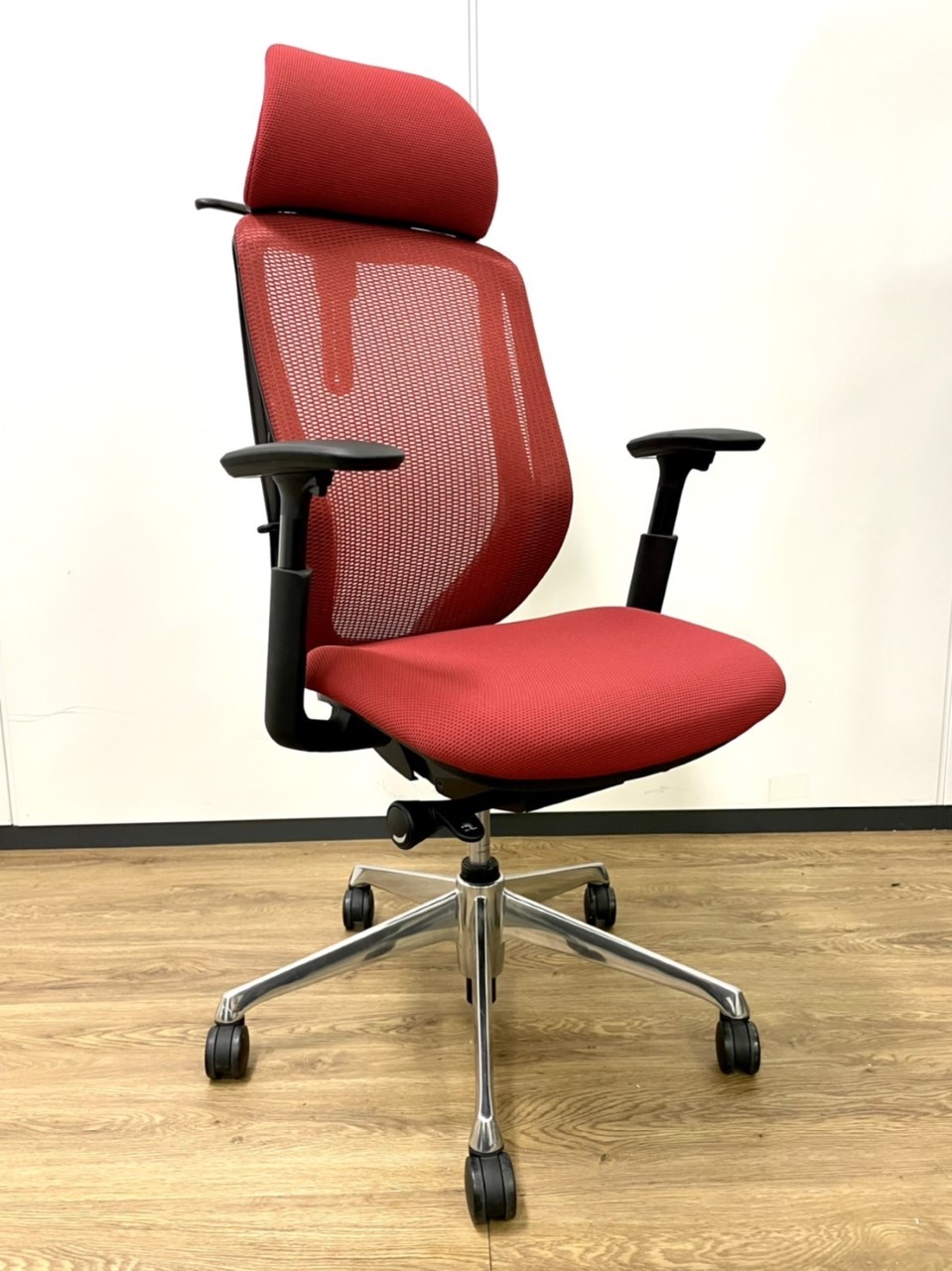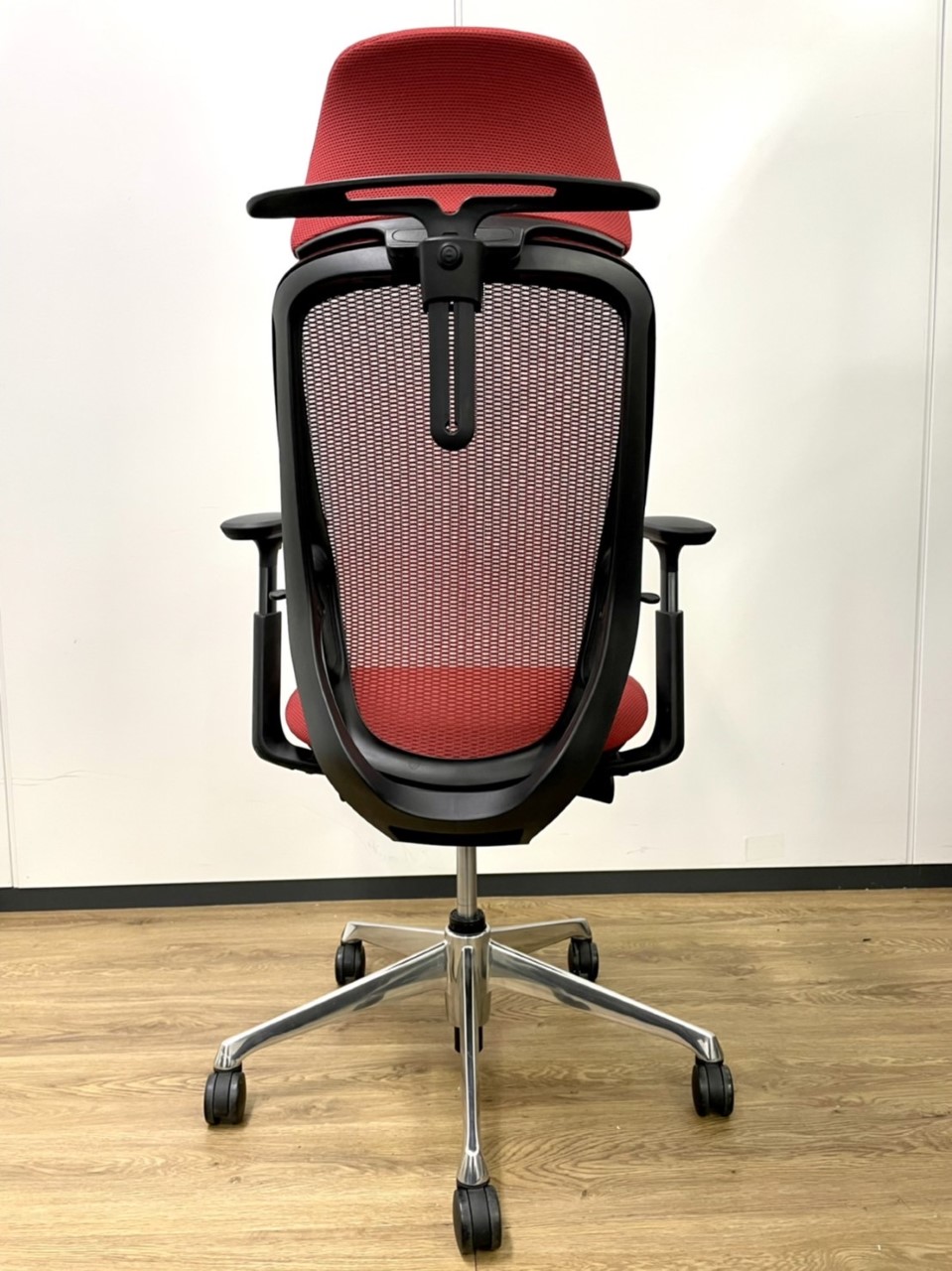 【人気のシルフィーチェア】オカムラ製 新品ヘッドレスト付 レッド 可動肘 人気商品の為お買いお求めの方はお早めに!!【残り2脚】※コートハンガーは付属しておりません。サーキュラーバリューCO2削減量の算出について