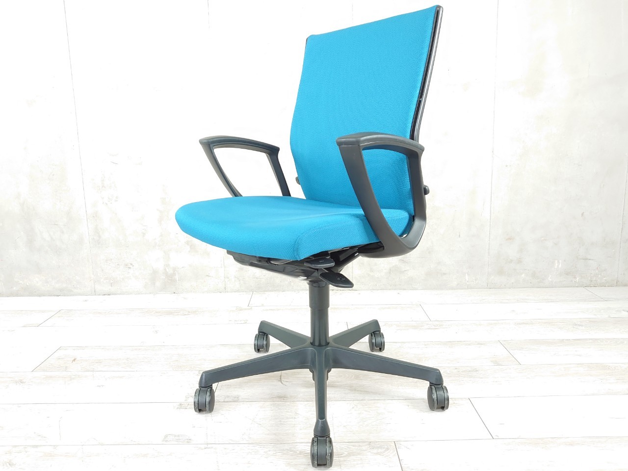 【クリーニング済みのため即納可!】◆オカムラ/エスクード ハイバック ブルー 《オフィスバスターズ福岡博多店は、福岡を拠点として、日本全国へ中古オフィス用品・オフィス家具を提供しております》