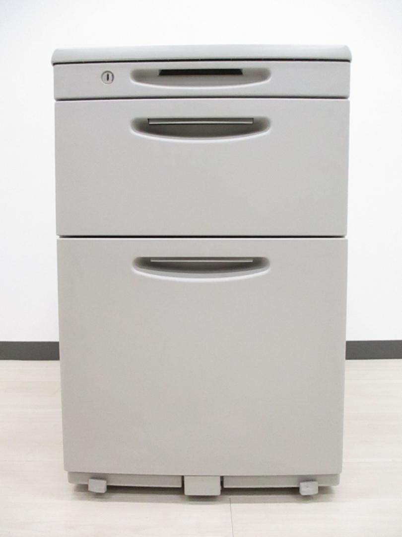 【大人気オカムラ製3段デスクワゴン!天板の把手とキャスターで移動がらくらく!デスク下に置いて収納力アップ!】■オカムラ(okamura)製 SDシリーズ 3段ワゴン デスクインワゴン H610㎜ ■ニューグレー ■シリンダー錠