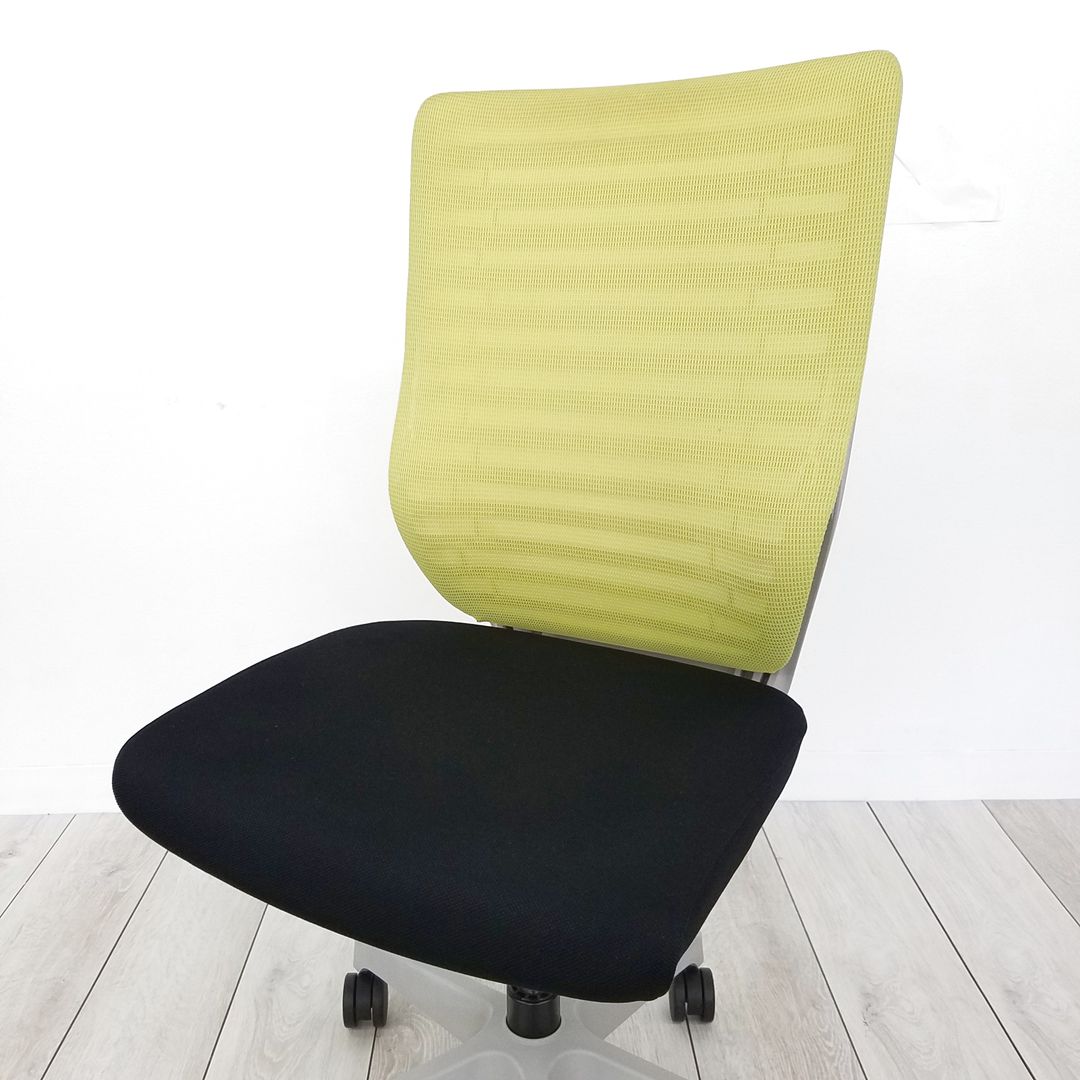 入替セール品につきお値下げ!【カフェ調オフィスにおすすめなグリーンカラーのクッションバックチェア!】イトーキ エピオス 肘無しチェア モスグリーン ブラックフレーム