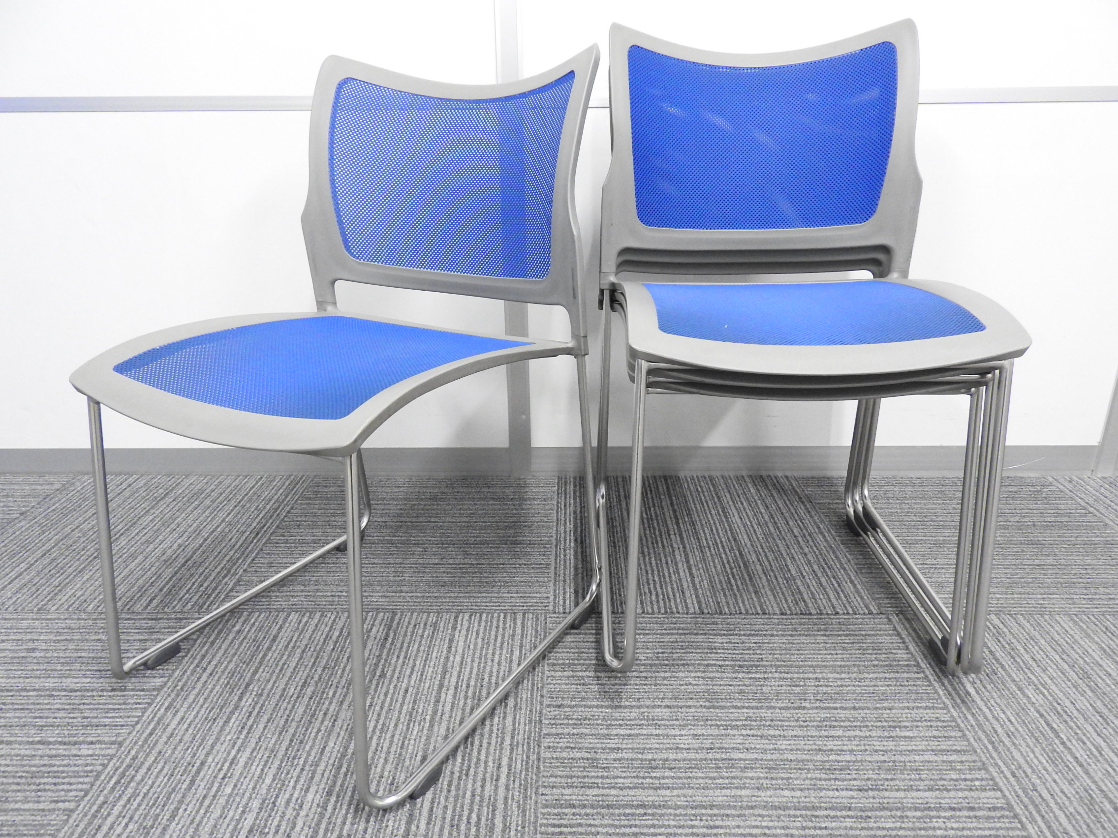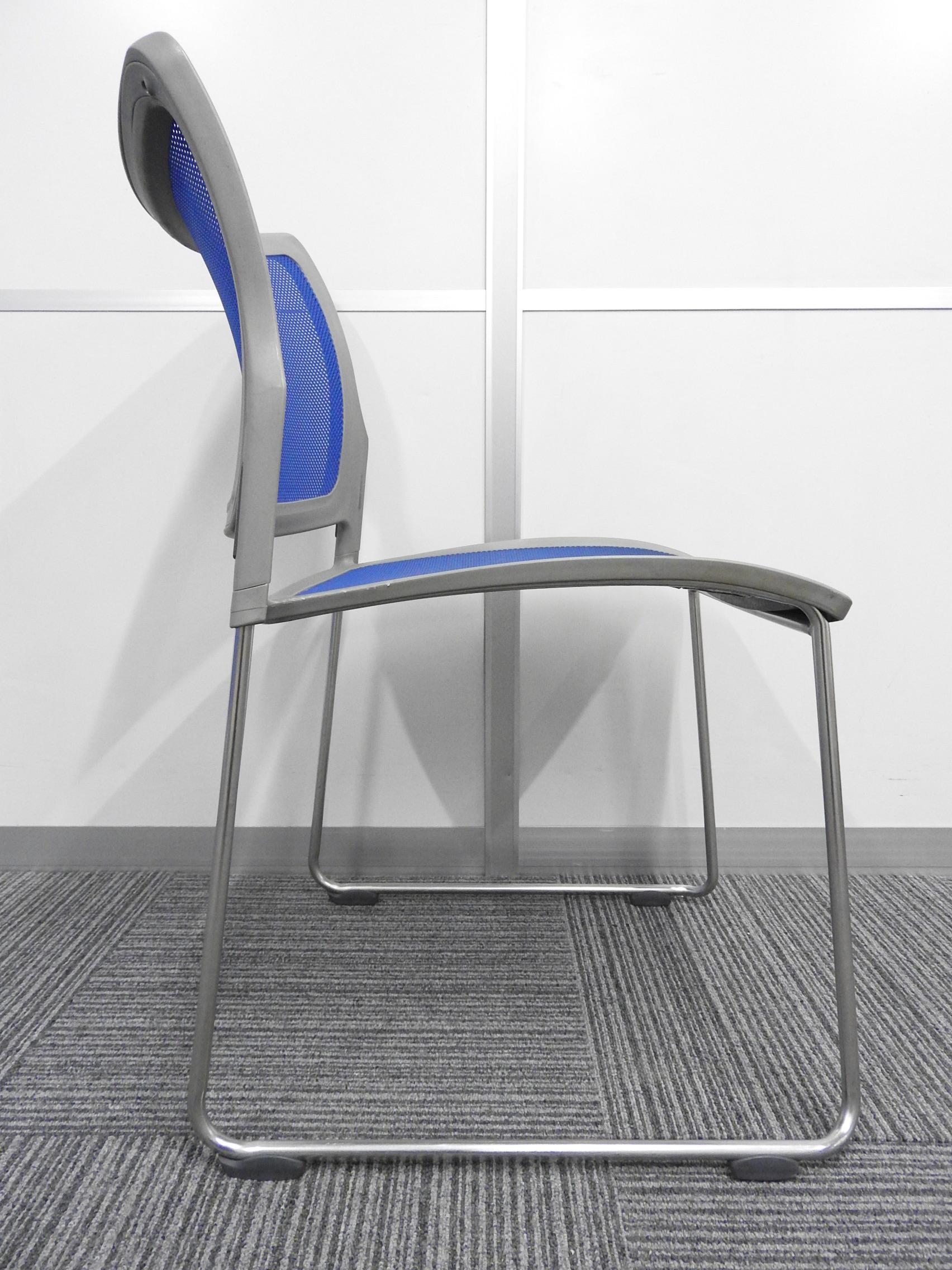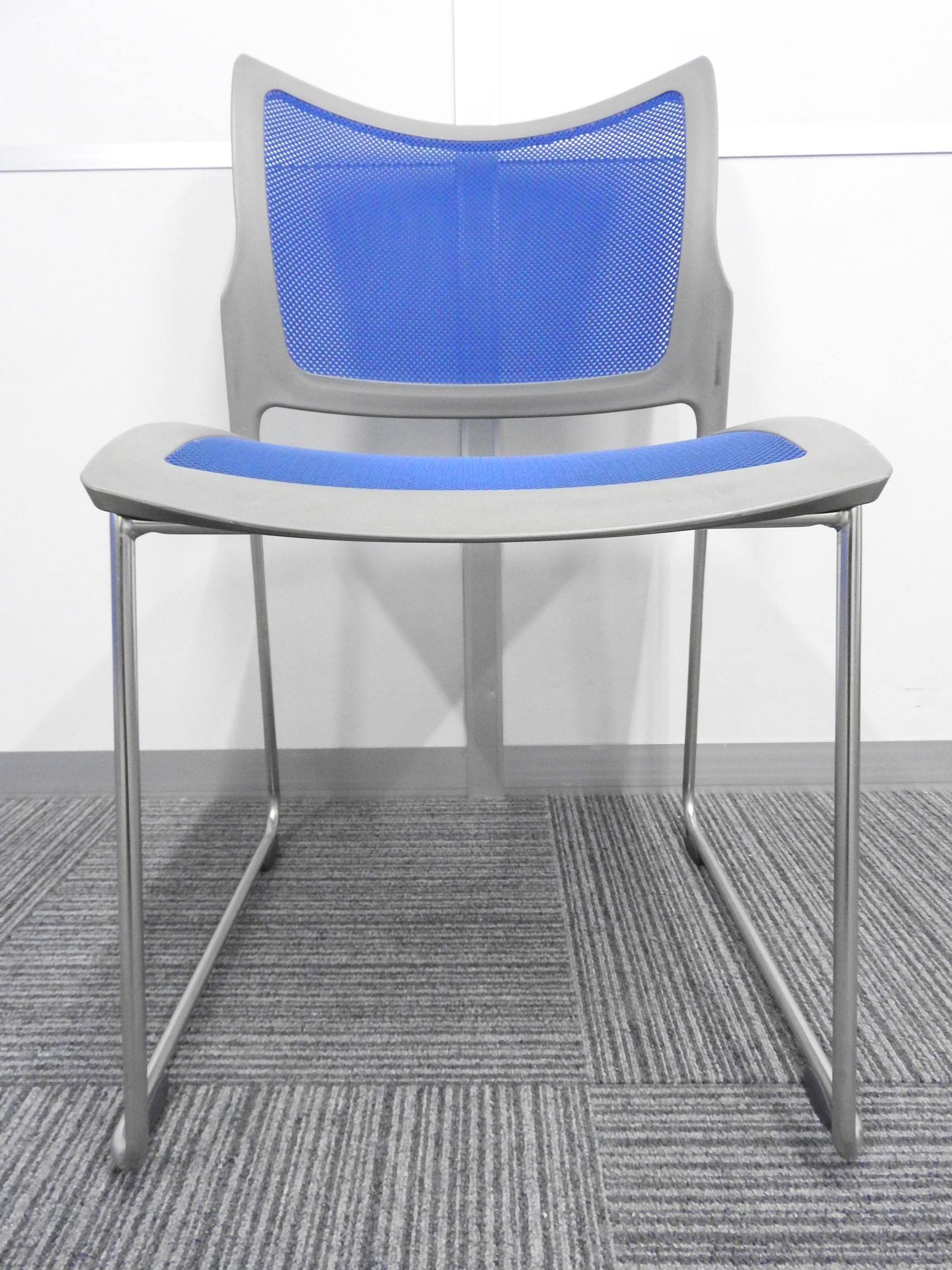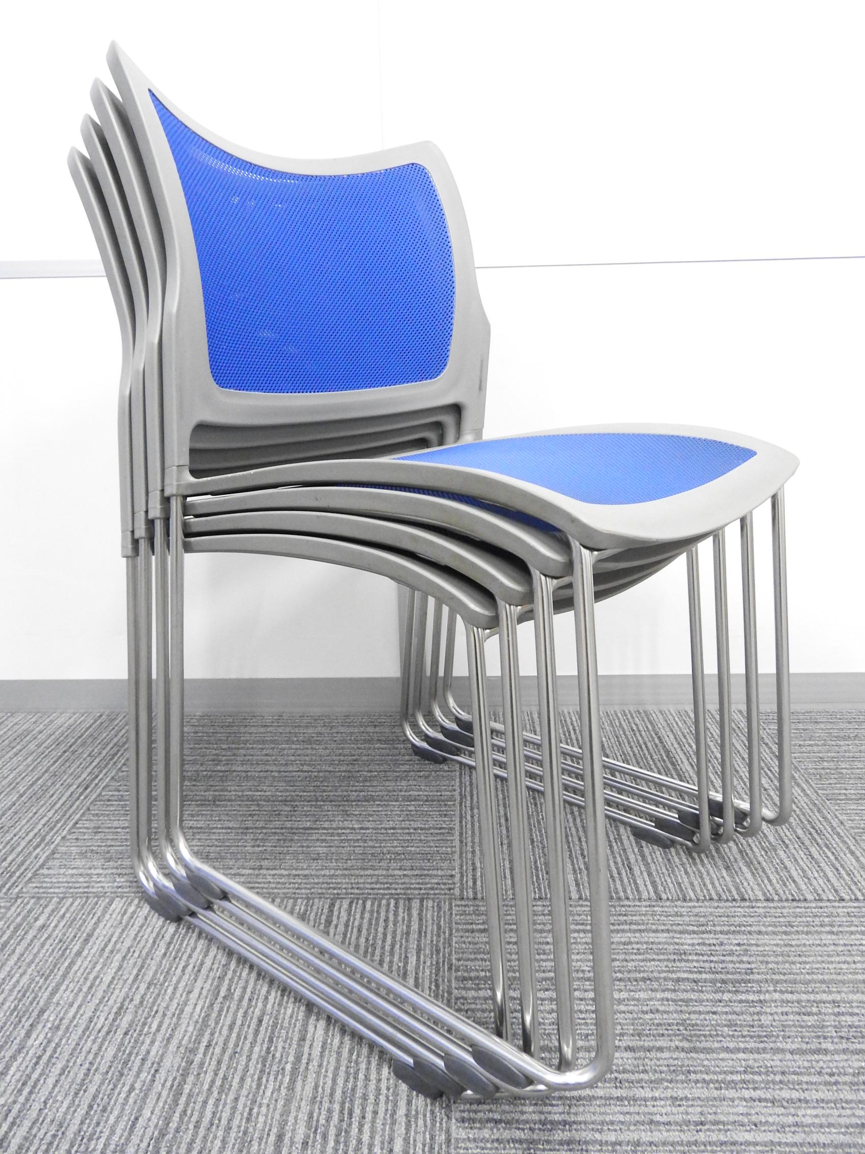 【KS】【心地よくフィットするメッシュタイプ!】■オカムラ製 スタッキングチェア ブルー ■軽量設計で持ち運びラクラク!- 茨城南店
