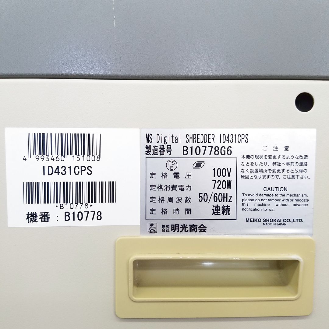 【1台入荷】セキュリティー対策抜群!!シュレッダーのパイオニア!明光商会製!中古 シュレッダー オフィス OA 個人情報 在宅ワーク セキュリティ MS-ID431CPS- 豊中・尼崎店