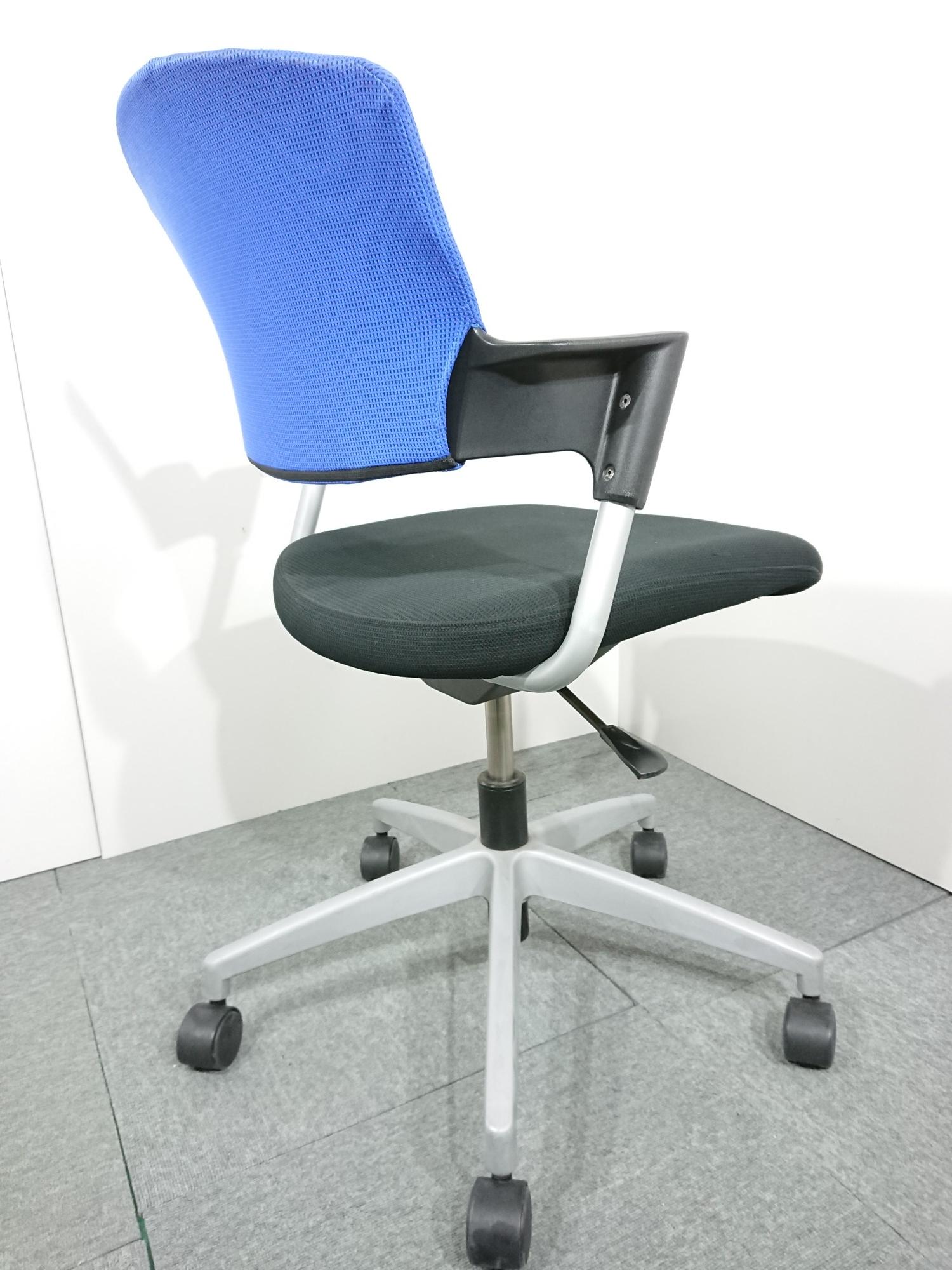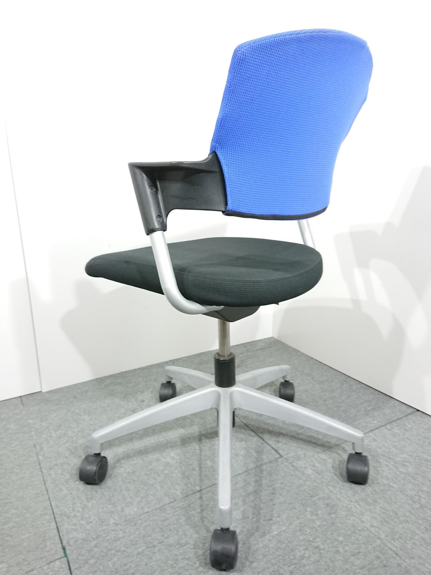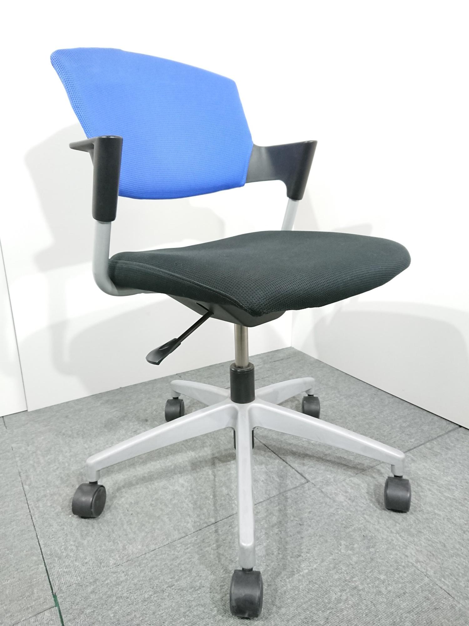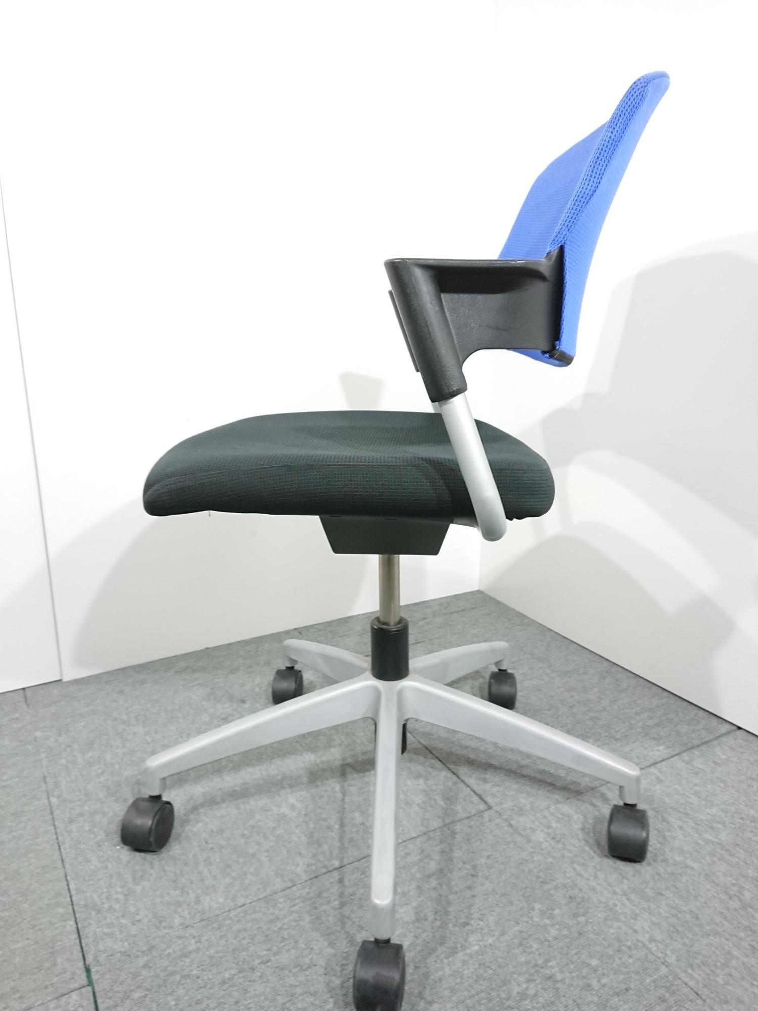 【シンプルスマートなスタッキングチェア!分厚いクッションで長時間でも快適な座り心地!】■コクヨ(KOKUYO)製 プロッティ (Protty) 肘付 ミーテイングチェア スタッキングチェア ■固定肘 ■ブルー×ブラック ■背面ヌードタイプ