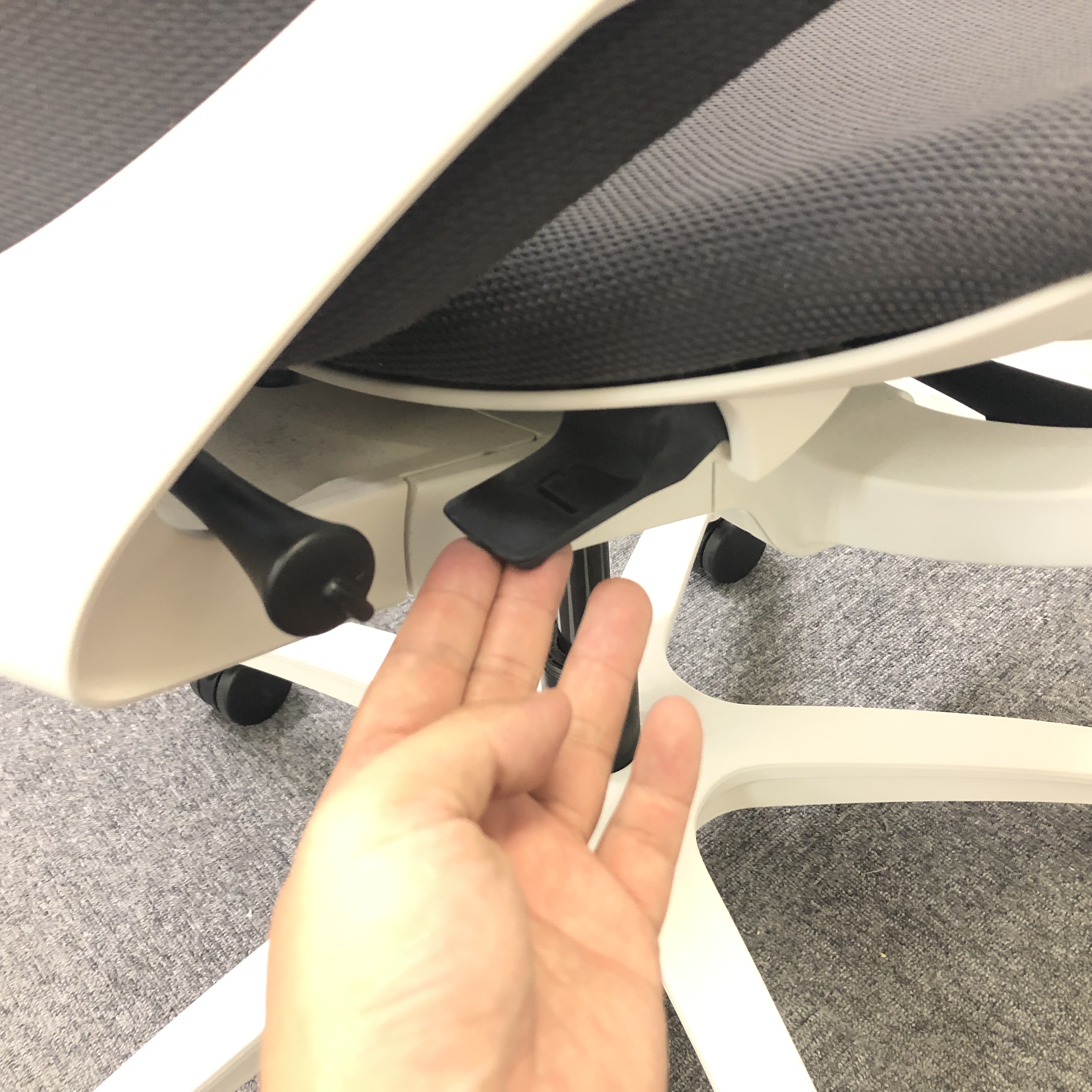 座面下のレバー操作により、体格に合わせたポジショニング設定が座った状態で可能になりました。