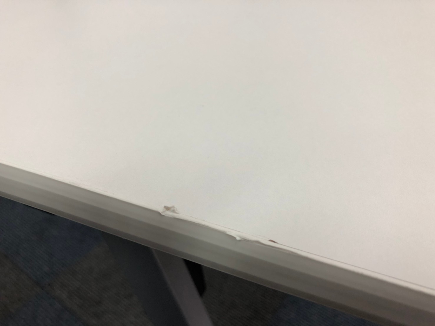 - あり黄ばみ・変色が広い範囲にうっすらある、または濃い黄ばみ・変色が一部ある。(例、天板、幕板、棚板、サイド部分、脚部等にある。)