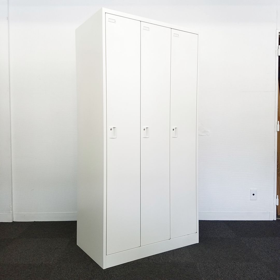【1台入荷】ロングセラー商品のオカムラFZロッカー入荷!人気のホワイトカラーです! 中古 ロッカー 更衣室 3人用 オフィス 事務所 シリンダー錠- 豊中・尼崎店