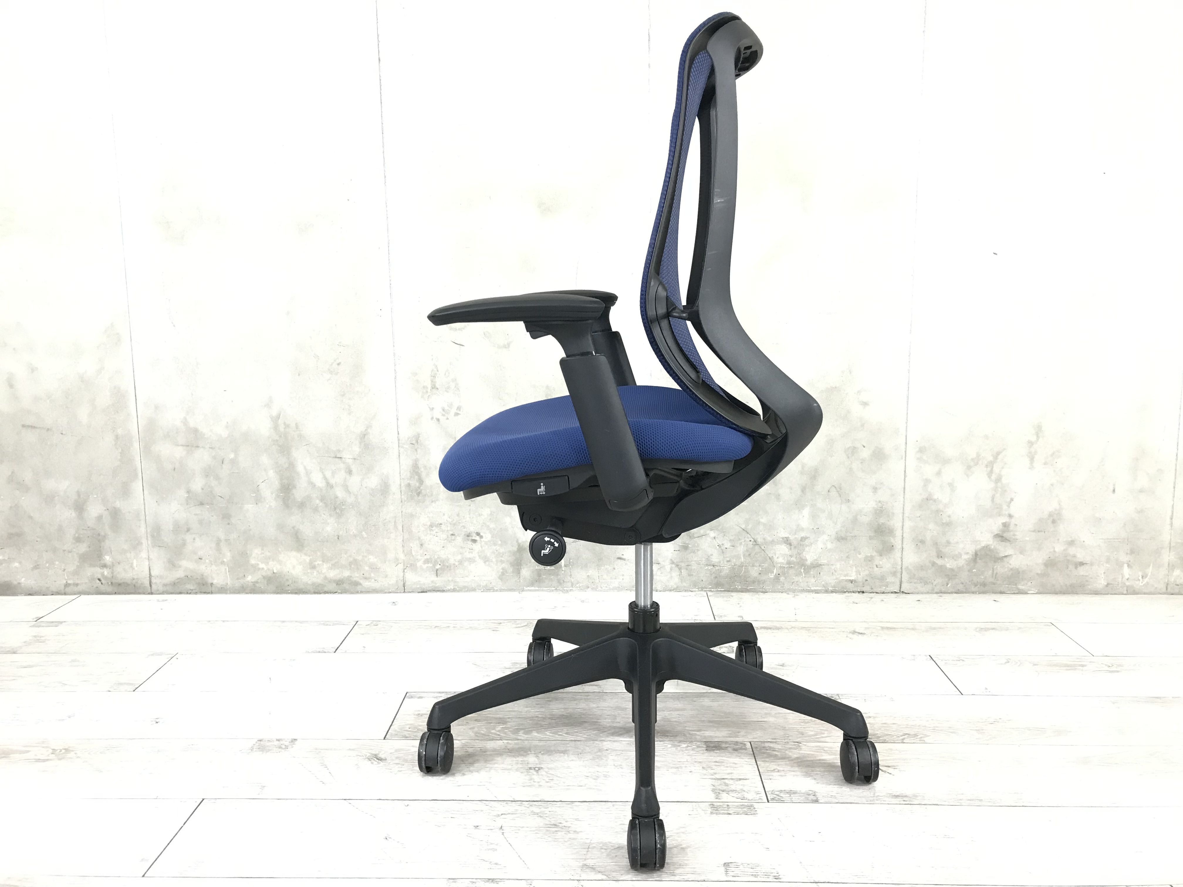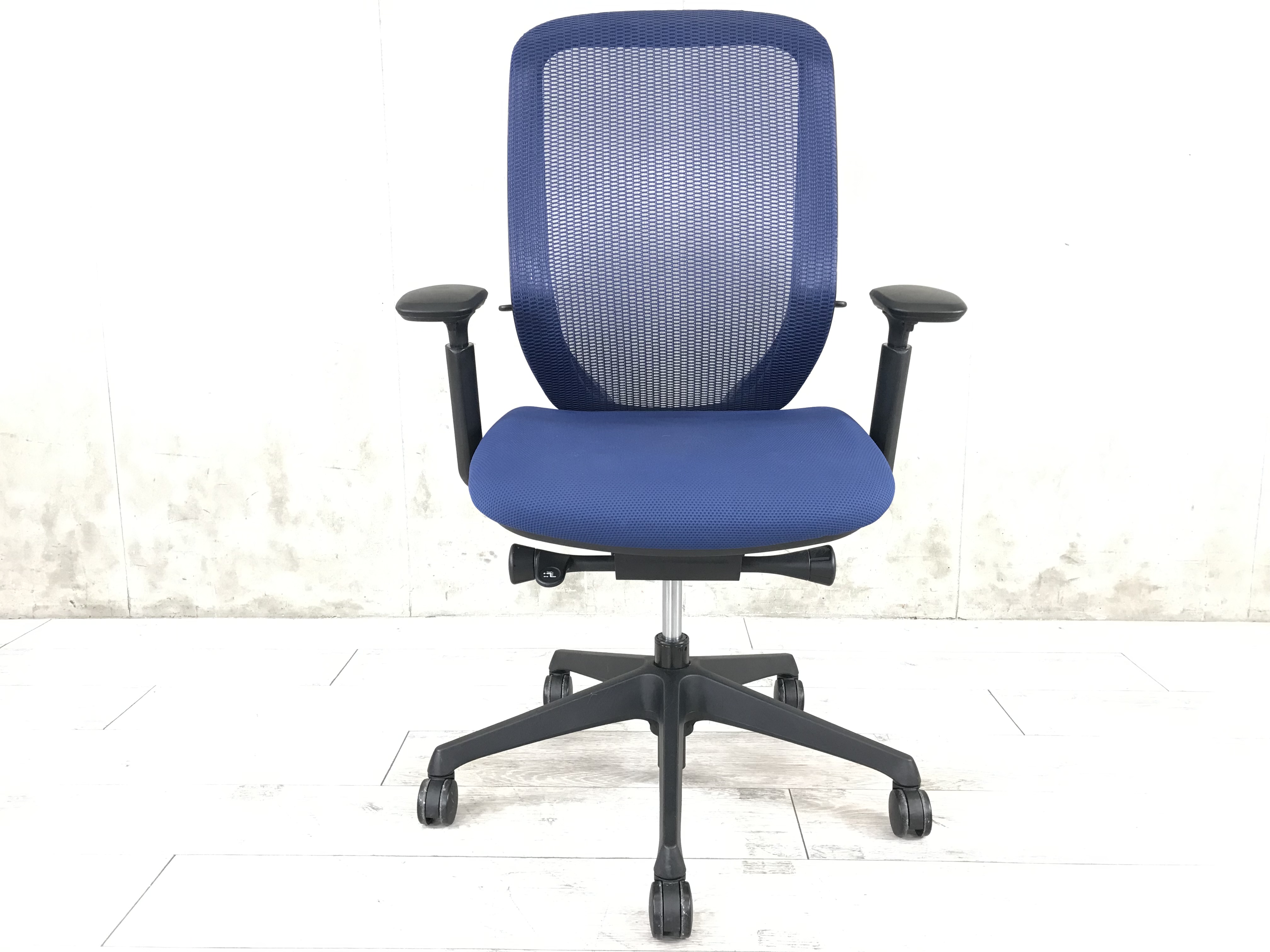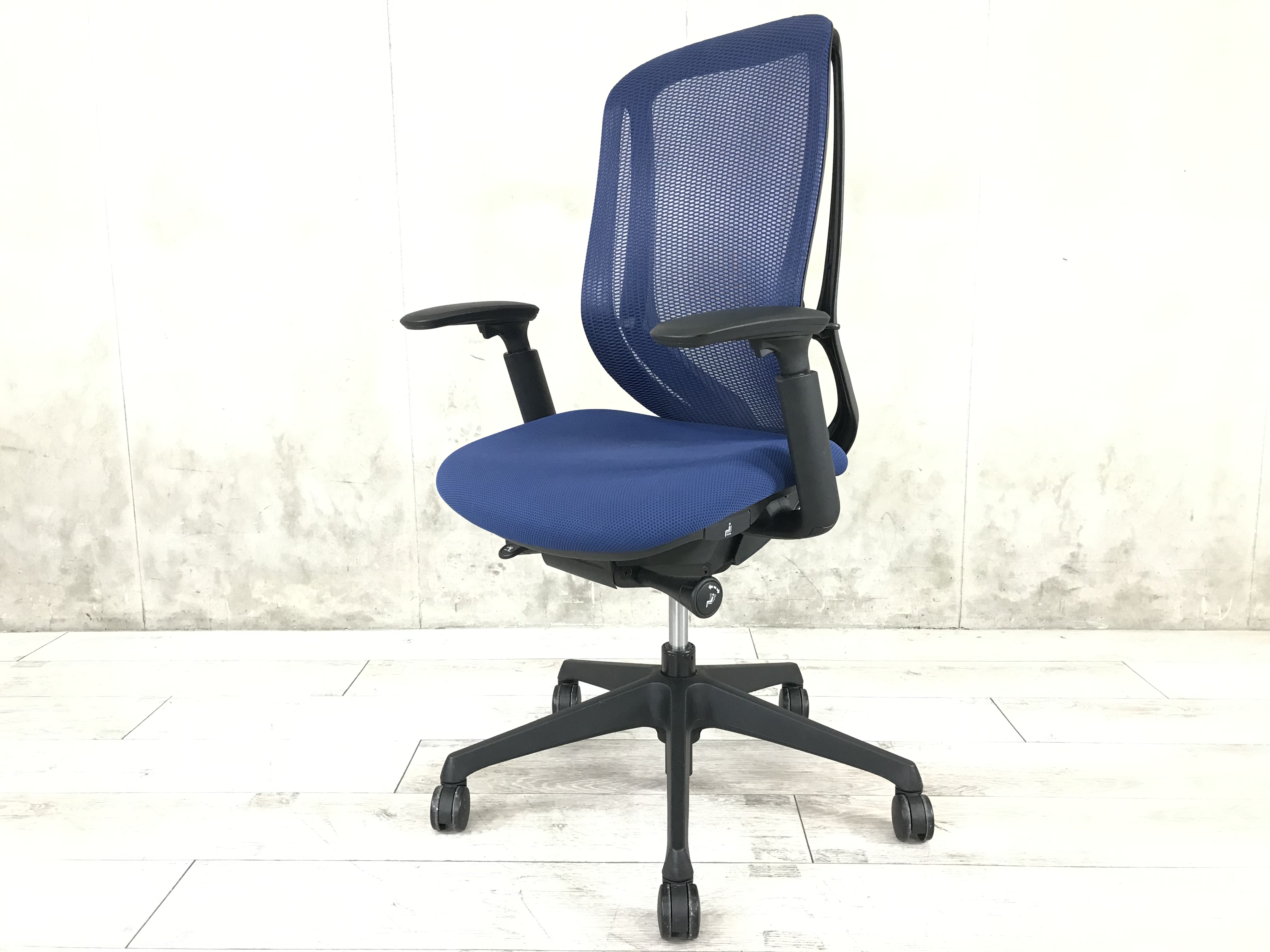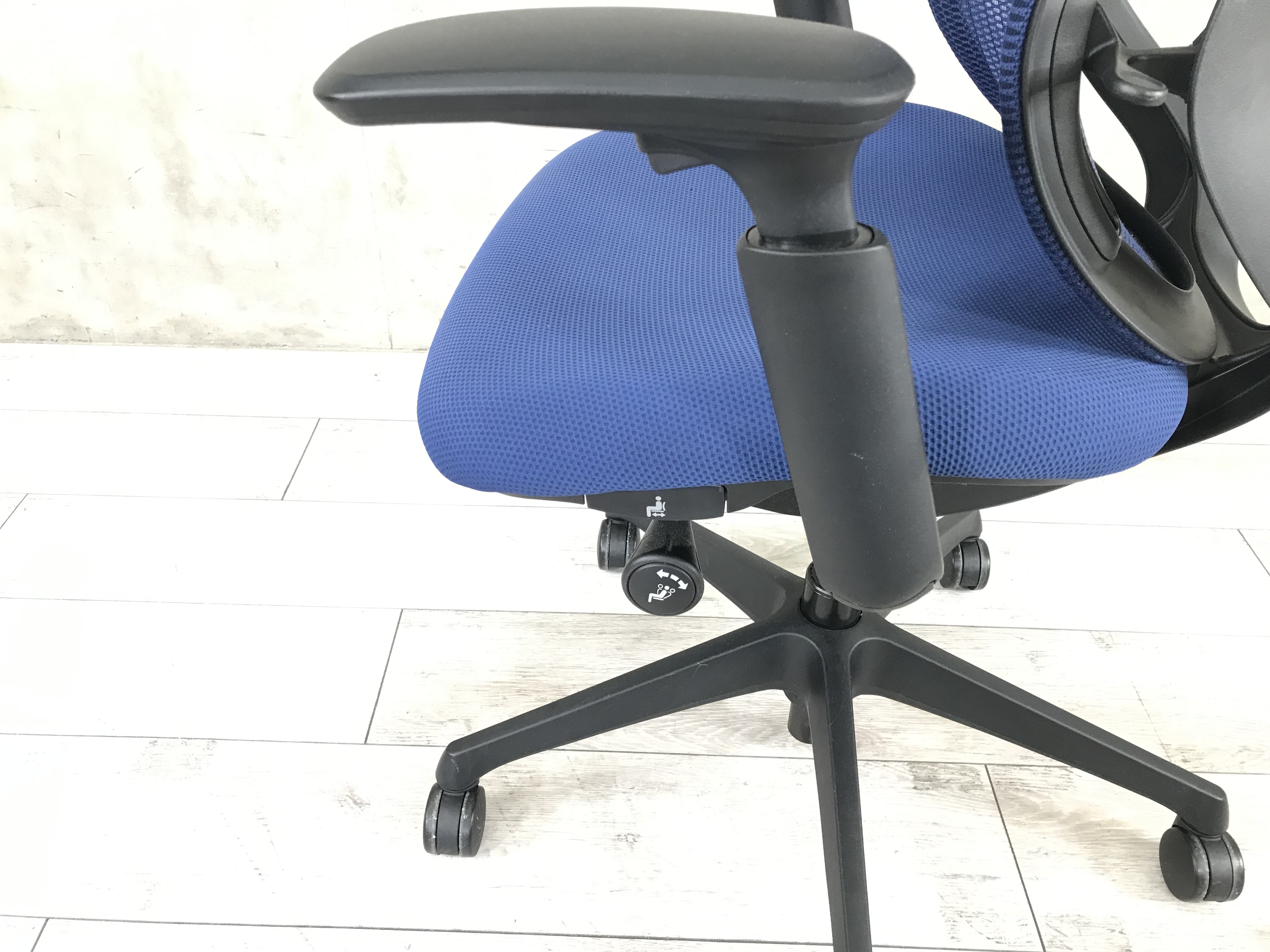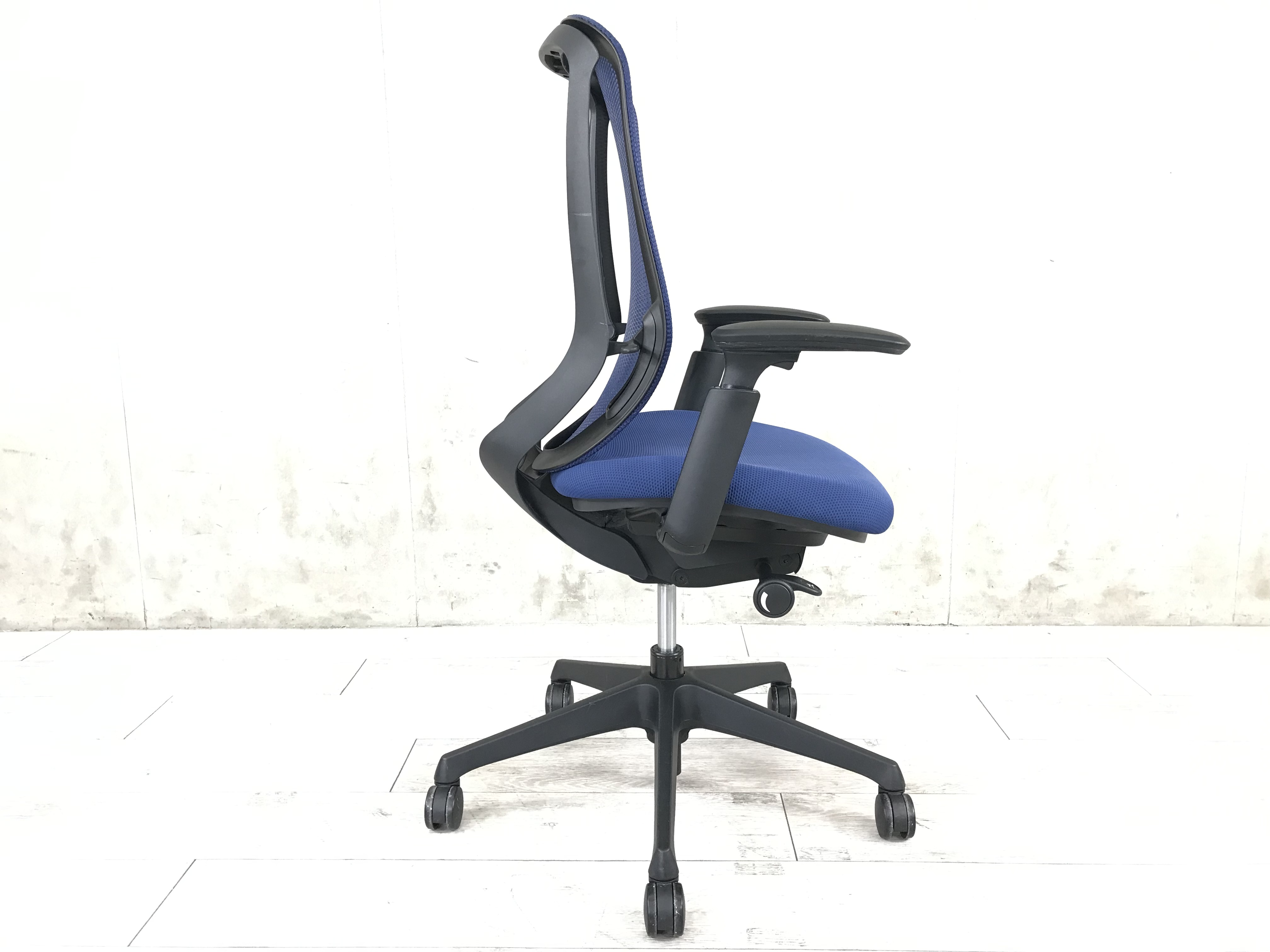 【新品ヘッドレスト交換済み】オカムラ/シルフィー/ブルー/可動肘