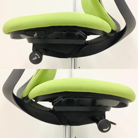 - 座面右下のダイヤル操作で、リクライニングの強弱調整が行えます。これまでのダイヤル式よりも、少ない回転数で、最弱?最強の調整が可能です。