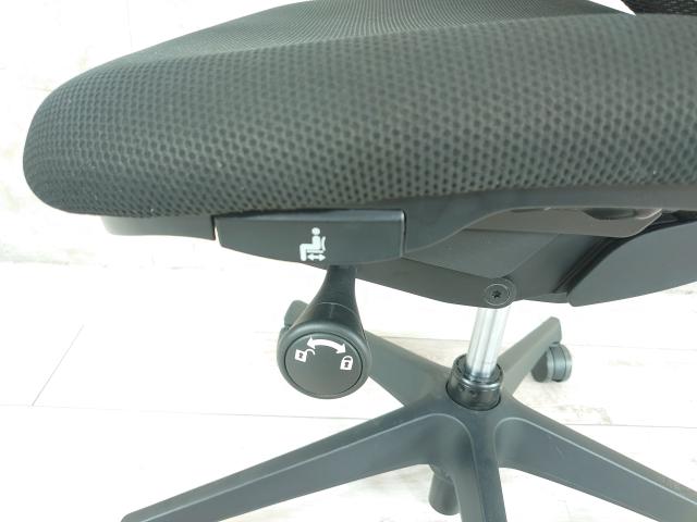 - 座面右下のダイヤル操作で、リクライニングの強弱調整が行えます。これまでのダイヤル式よりも、少ない回転数で、最弱?最強の調整が可能です。