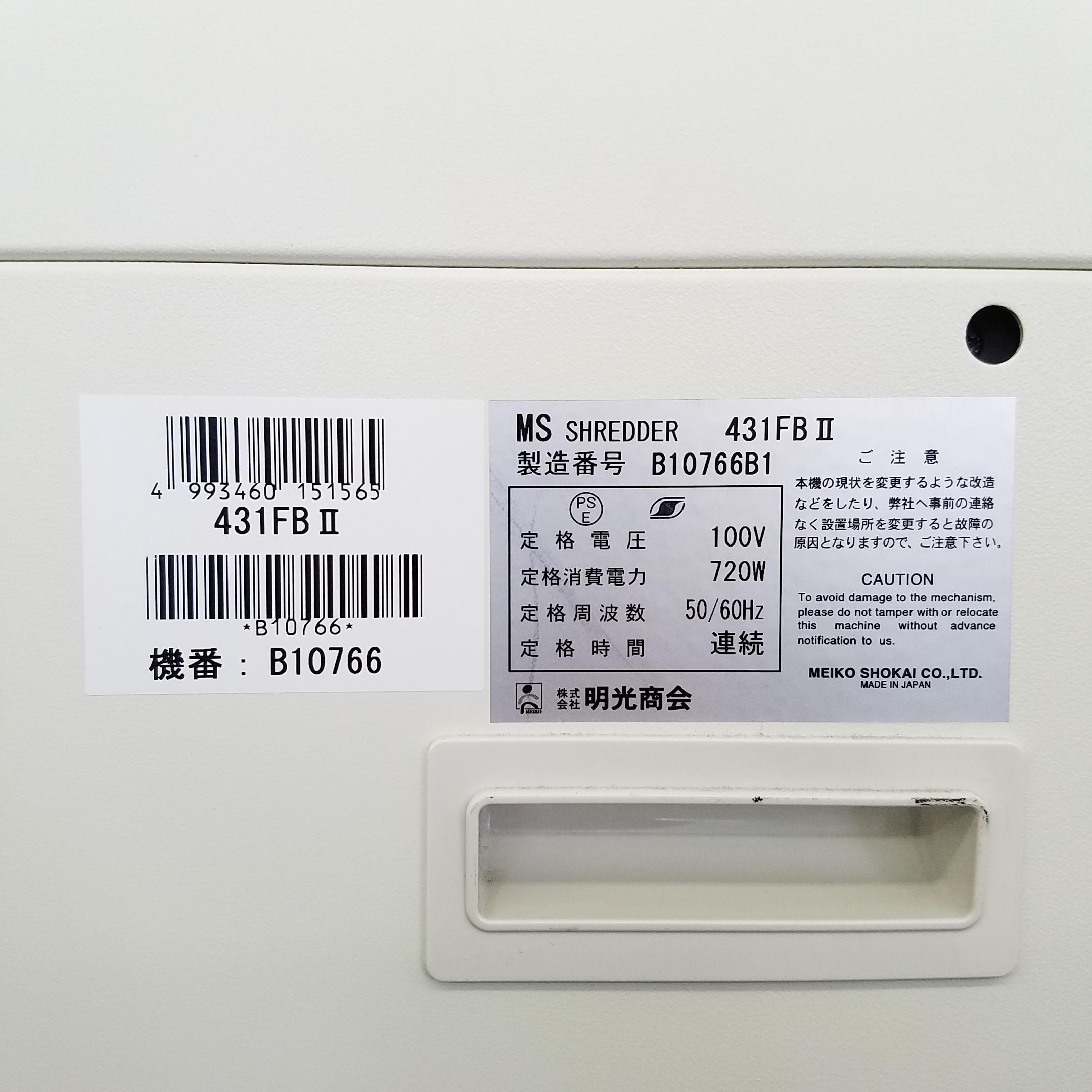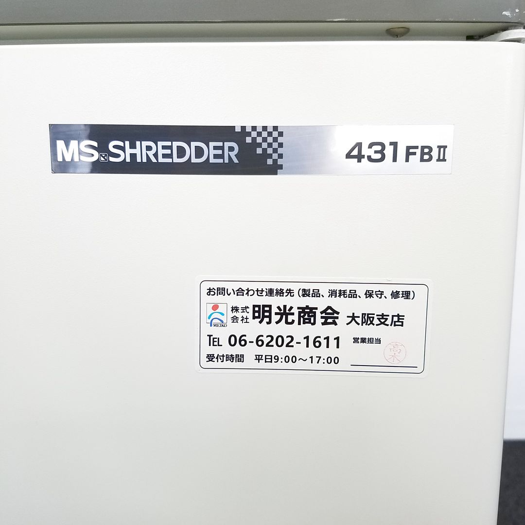 【2台入荷】【書類整理に便利】国内シュレッダーのパイオニア!明光商会!!※新品時最大裁断枚数55枚!!中古 シュレッダー 個人情報 オフィス家具 MS-431FBⅡ- 豊中・尼崎店