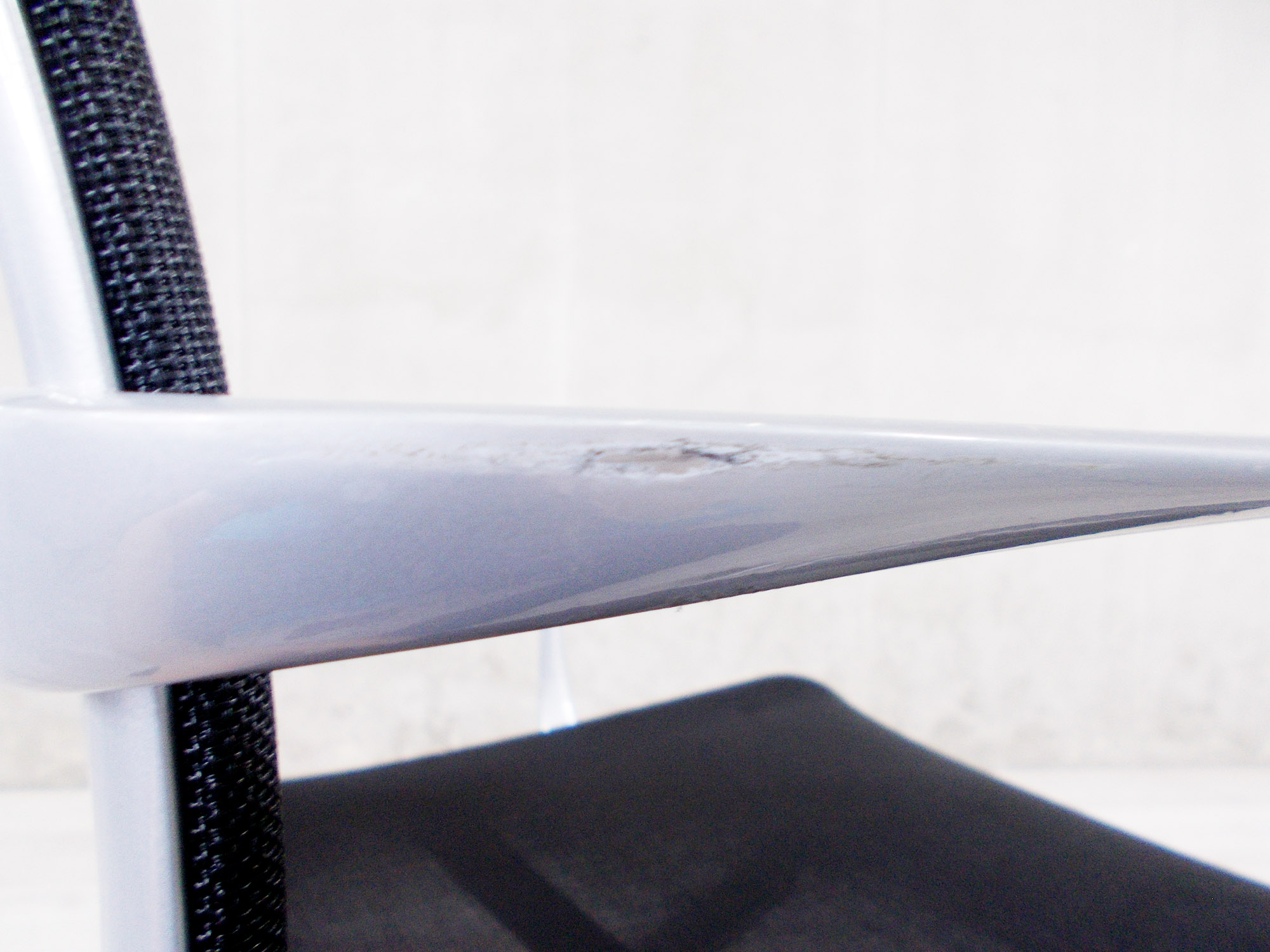 - 目立つ箇所あり傷・破れ・ほつれ・へたり・しわが多数または深い傷・破れ・ほつれ・へたり・しわが一部ある。※座面・背もたれ、シェル、脚部等にある。