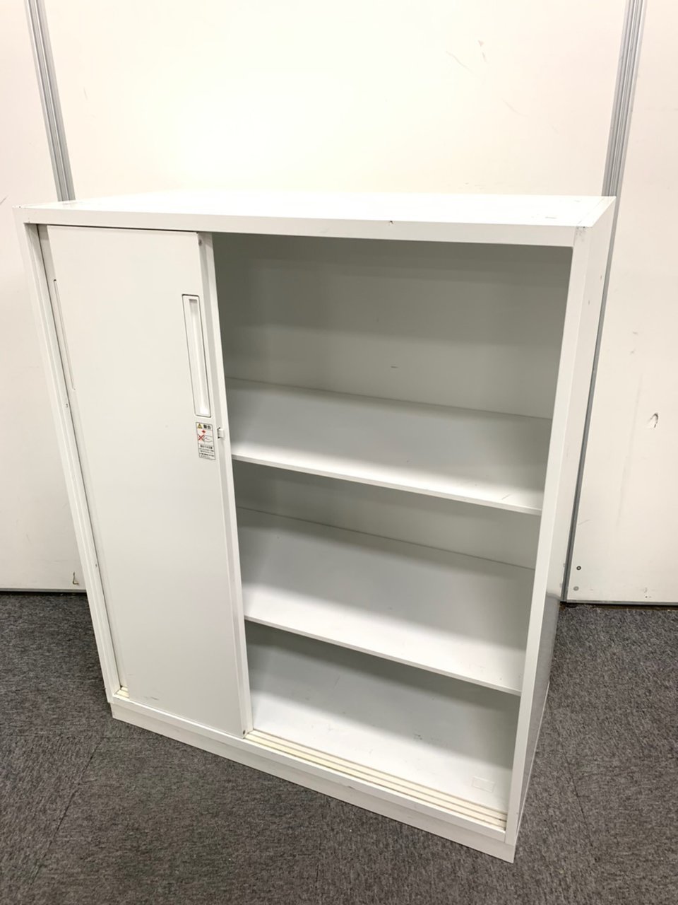 【在庫入替セール】2枚引き戸書庫 コクヨ エディア 鍵付き(シリンダー錠) 天板付き 清潔感のあるホワイト ※レール・ベースに日焼けあり【愛知・名古屋・豊田・静岡・浜松】