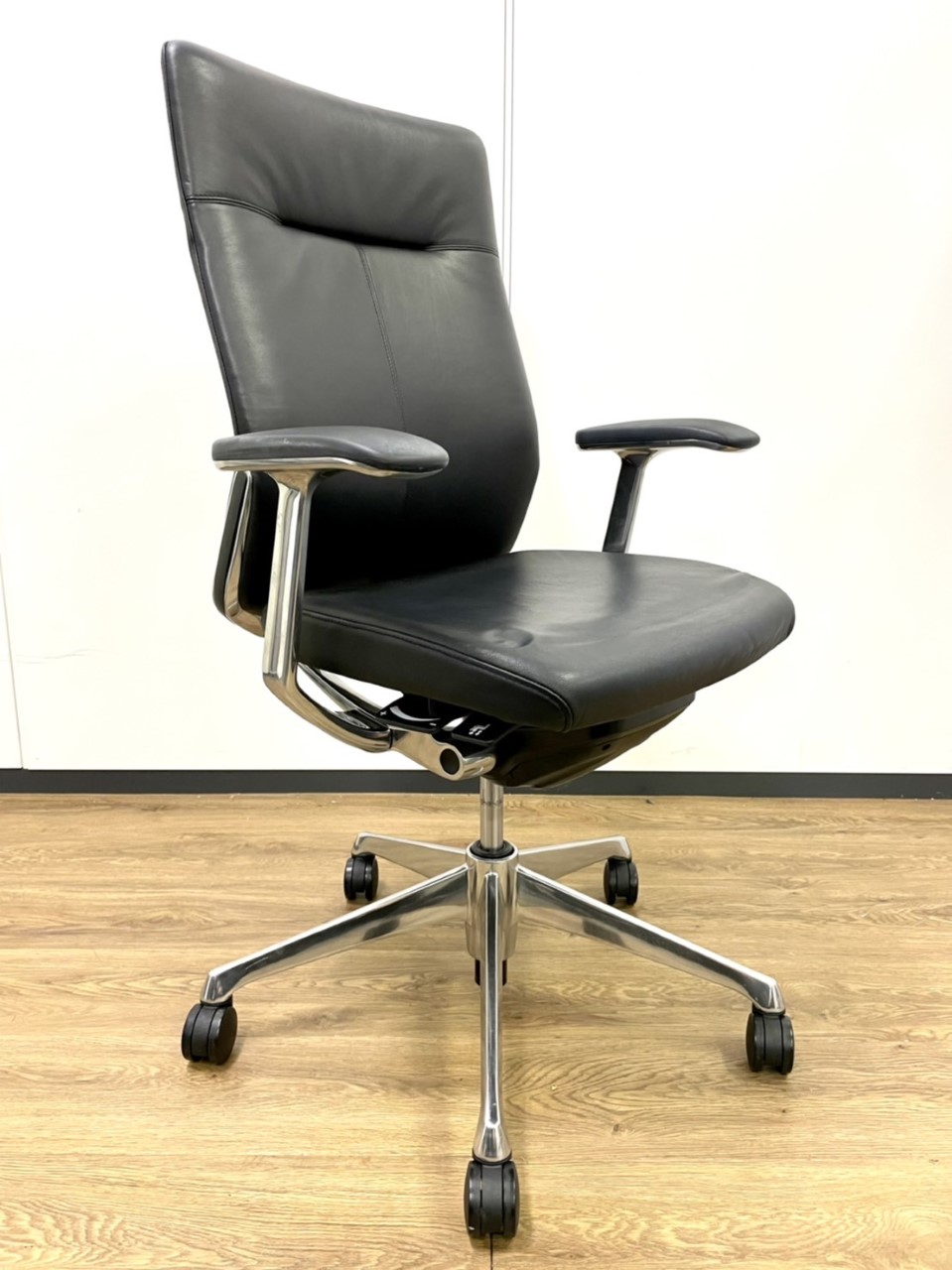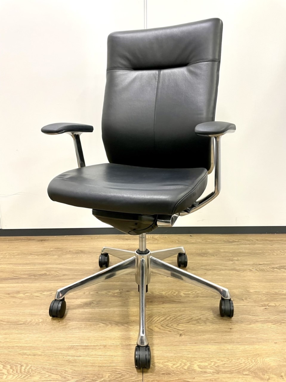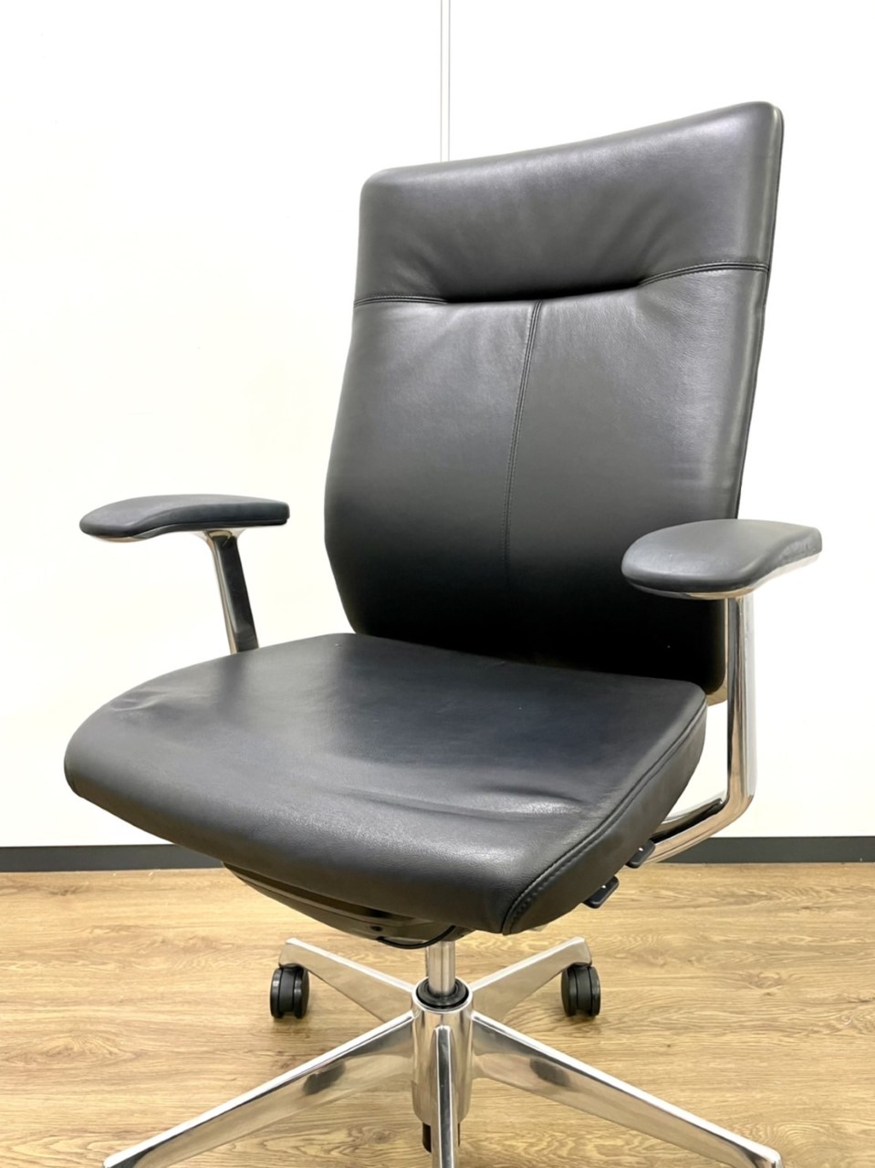 【革張りレア商品!】1脚限定!!■オカムラ/コーラル/ブラック/革張り- 品川・三田店