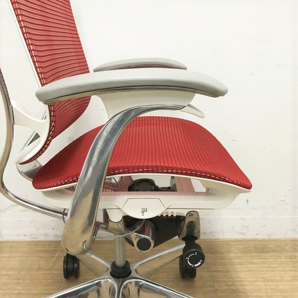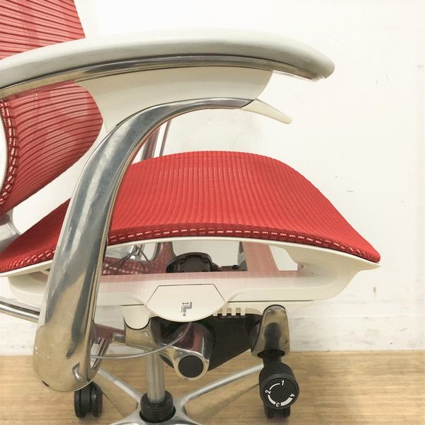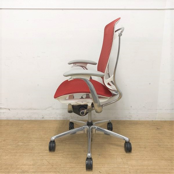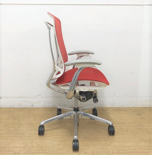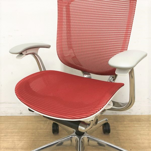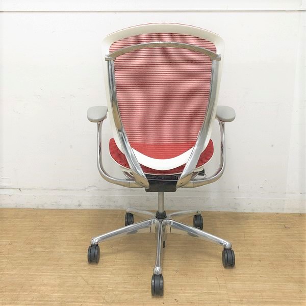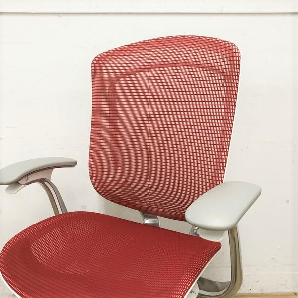 【2018年製】オカムラ コンテッサセコンダ かっこいいデザインアーム搭載 背・座メッシュ 映えるレッドカラー- 名古屋千種店