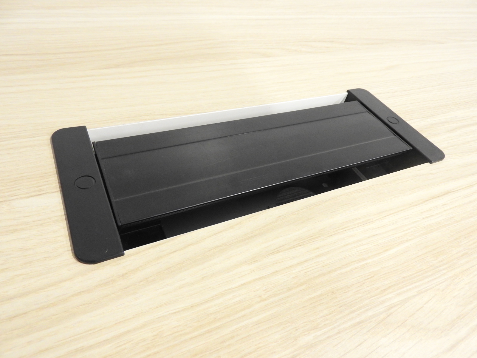 天板中央には2箇所配線孔があり、ケーブル類をスッキリとまとめる事が可能です。