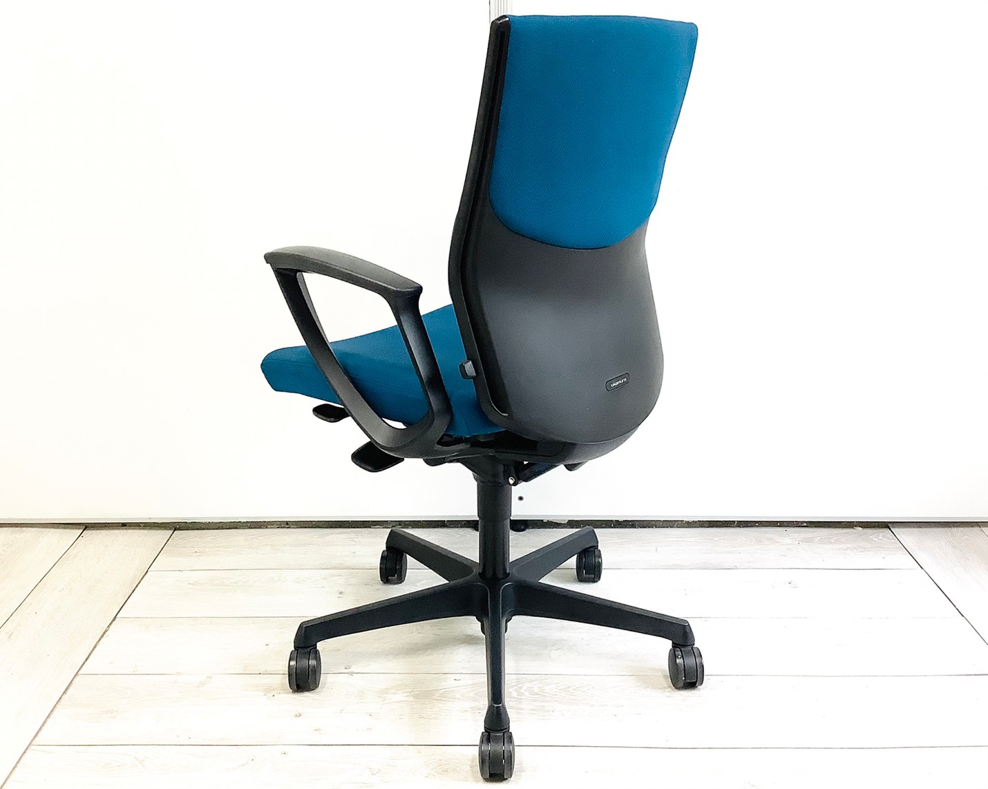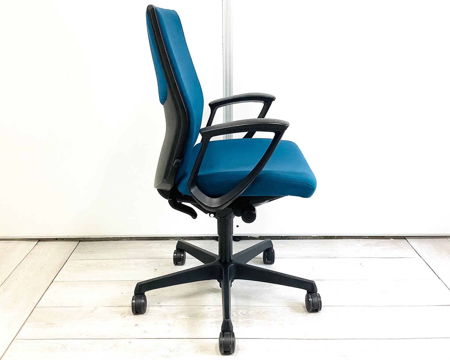 【KS】【デスクワークを快適にサポート!】■オカムラ製 エスクードチェア デザインアーム付 ハイバックタイプ ターコイズブルー ブラックシェル.- 茨城南店
