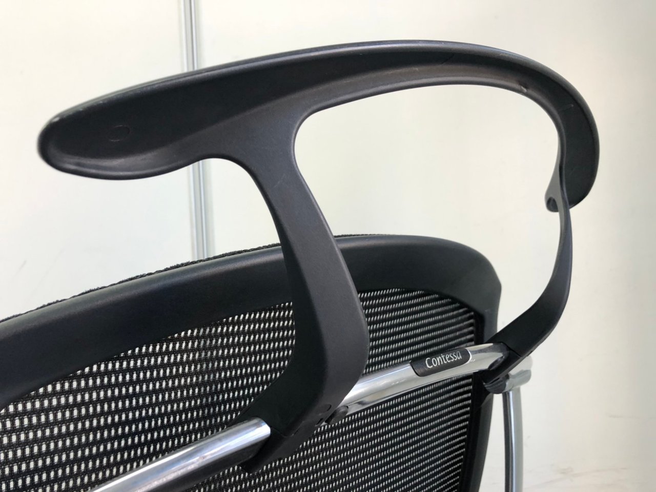 【世界で認められた革新的タスクチェア!人間工学に基づいた快適な座り心地を実現!】■オカムラ(okamura)製 コンテッサ(Contessa)チェア ハイバック 肘付き 背面メッシュ ■可動肘・ランバーサポート付 ■ブラック ※肘スレ有