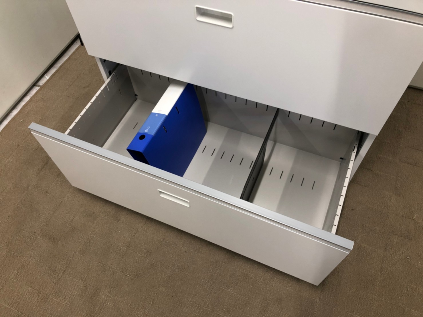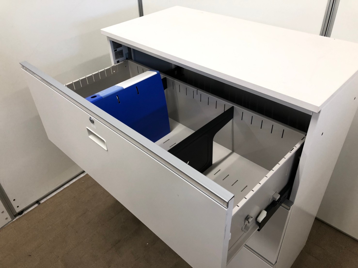 【珍しい2段ラテラルタイプ!】耐久性・機能性を兼ね備えたキャビネット!スペースにジャストフィットする引き出し型収納 ■イトーキ/シンライン/ホワイト シリンダー錠