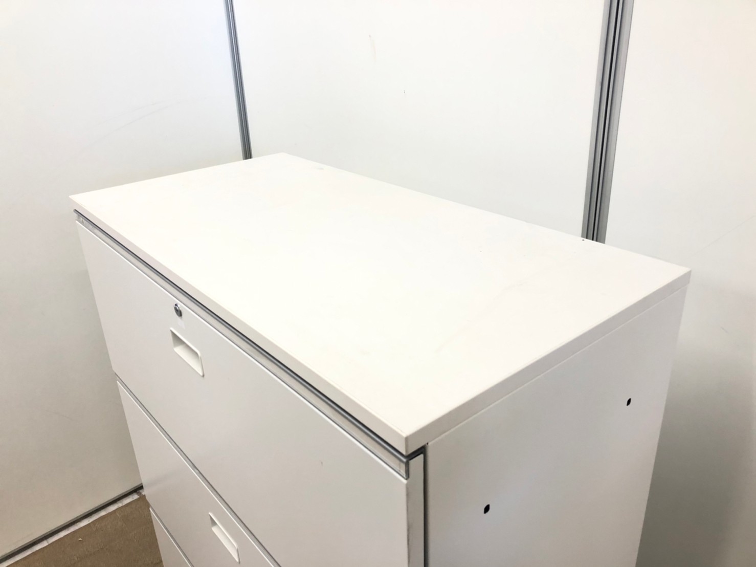 【A4ファイルも沢山収納可能!ホワイトカラーの人気シリーズ3段ラテラル書庫!】/オススメ(おすすめ) /人気商品【弊社使用欄:A01013834】3段ラテラル書庫/ローキャビネット/天板付き/ホワイト/シリンダー錠/ITOKI/THIN LINE■イトーキ/シンライン※取っ手部分日焼あり