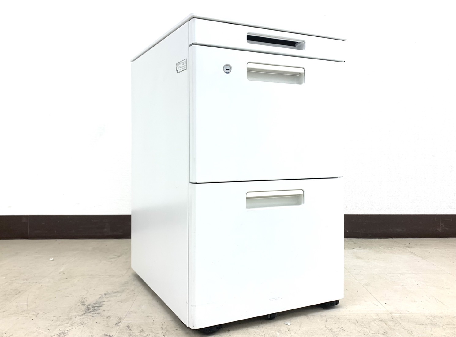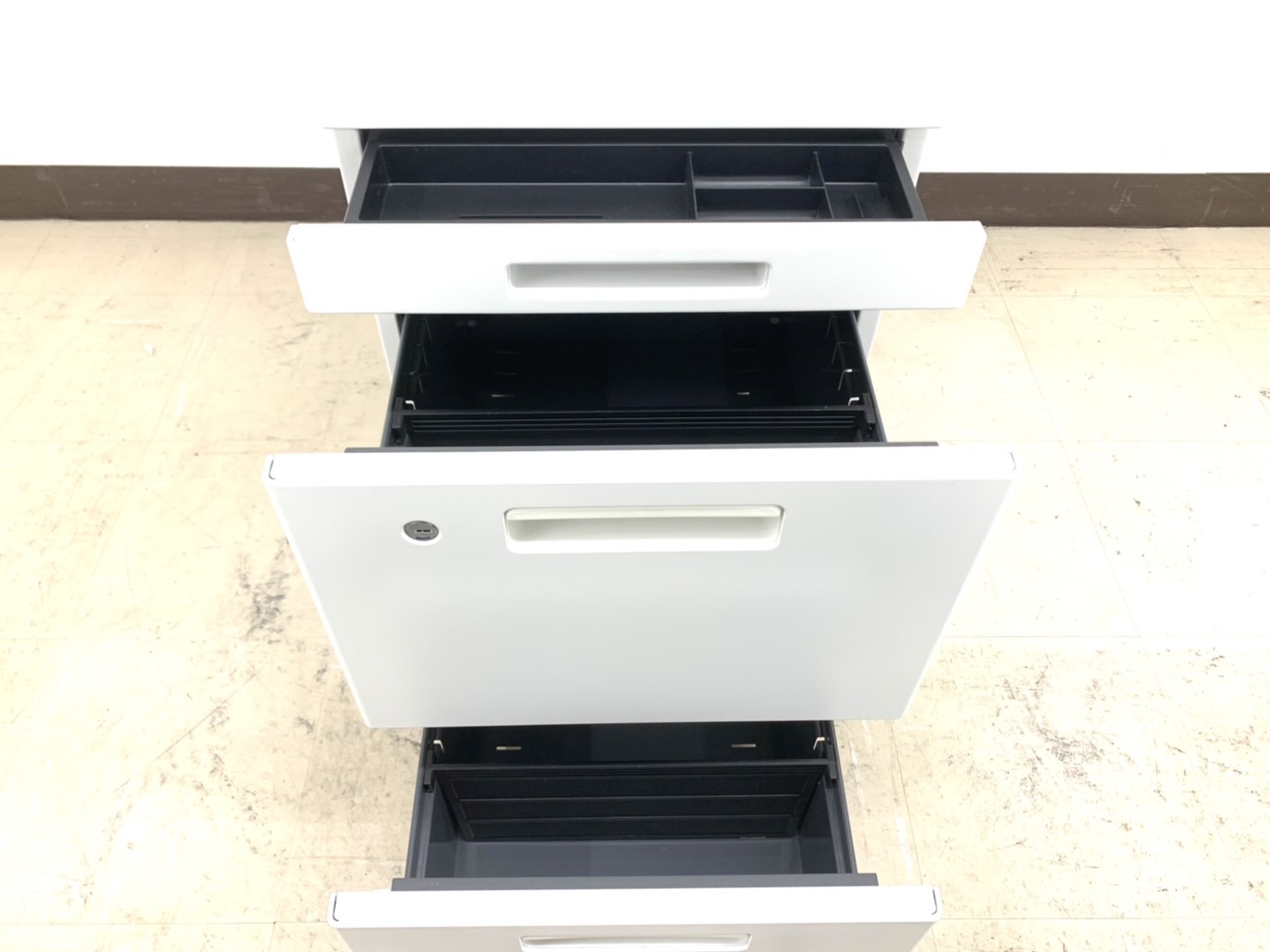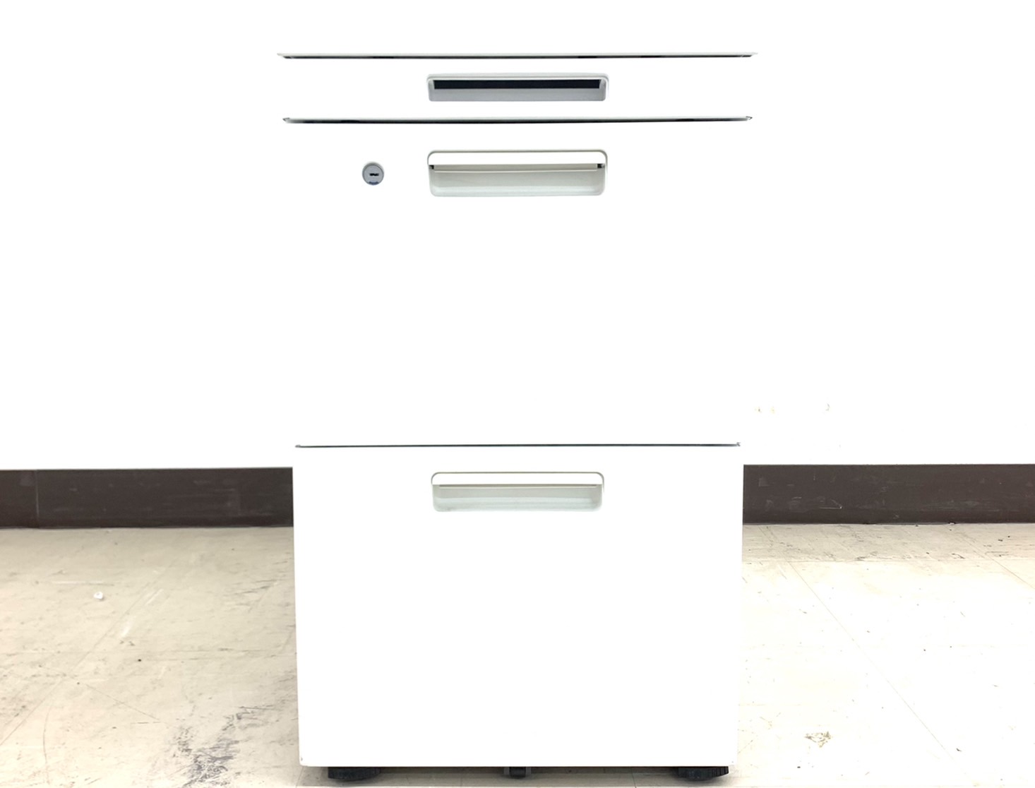 【フリーアドレスデスク用として!手荷物入れにも便利!】■コクヨ製 GTワゴン 3段ワゴン フリーアドレス用ワゴン H650mm ■ホワイト ■シリンダー錠 オフィスバスターズ神戸・三宮店