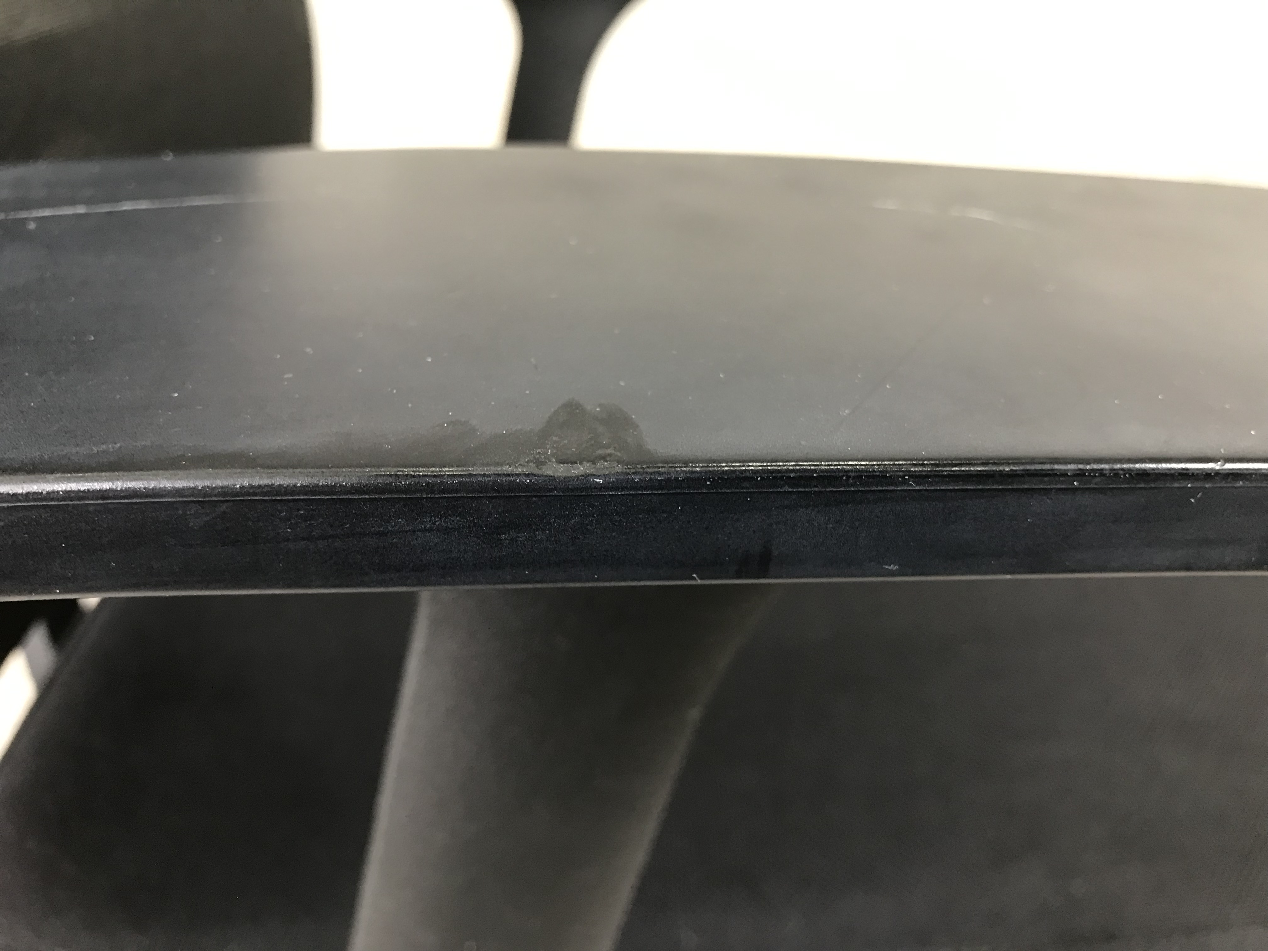 - かなり強い濃い黄ばみ・変色が商品全体にある。(例、座面・背もたれ、脚部等にある。)